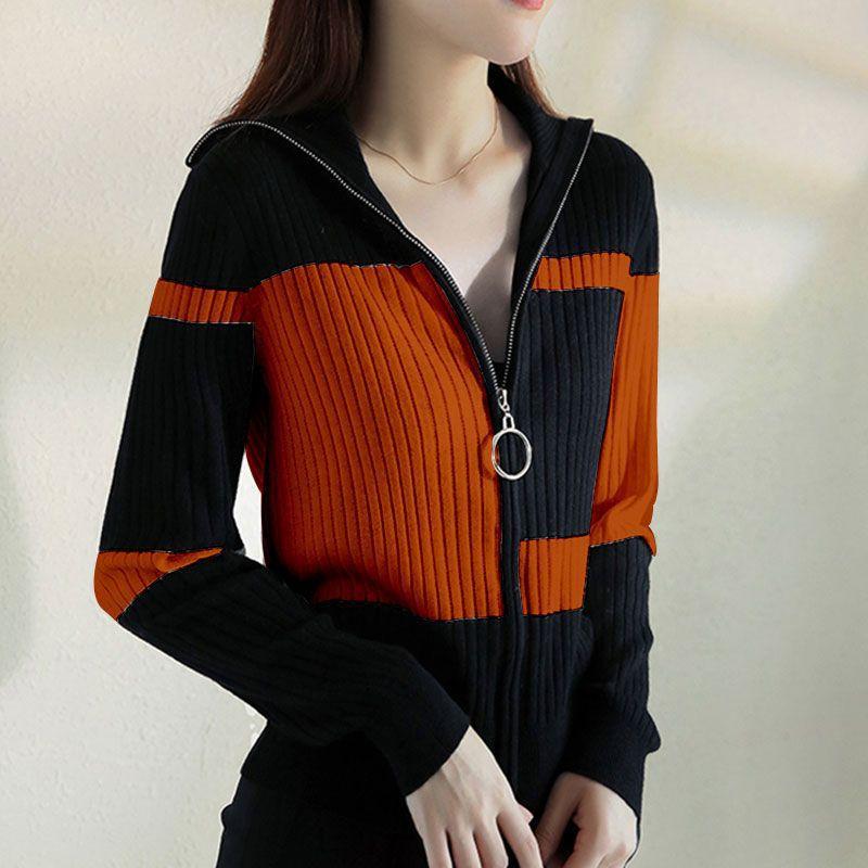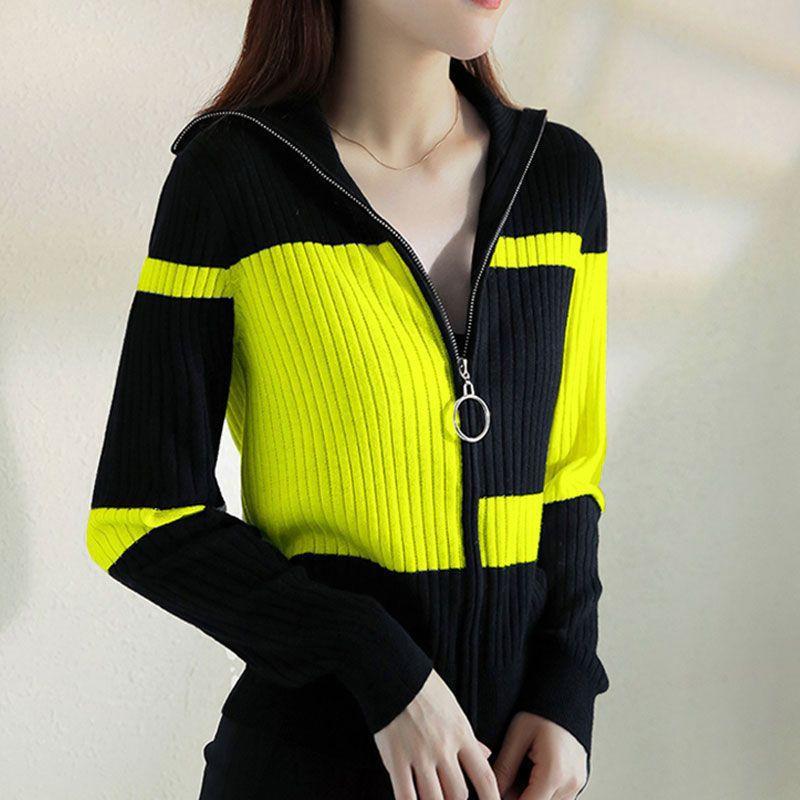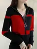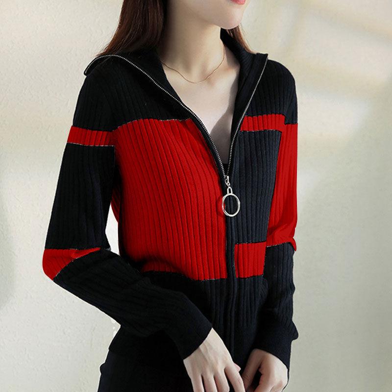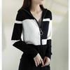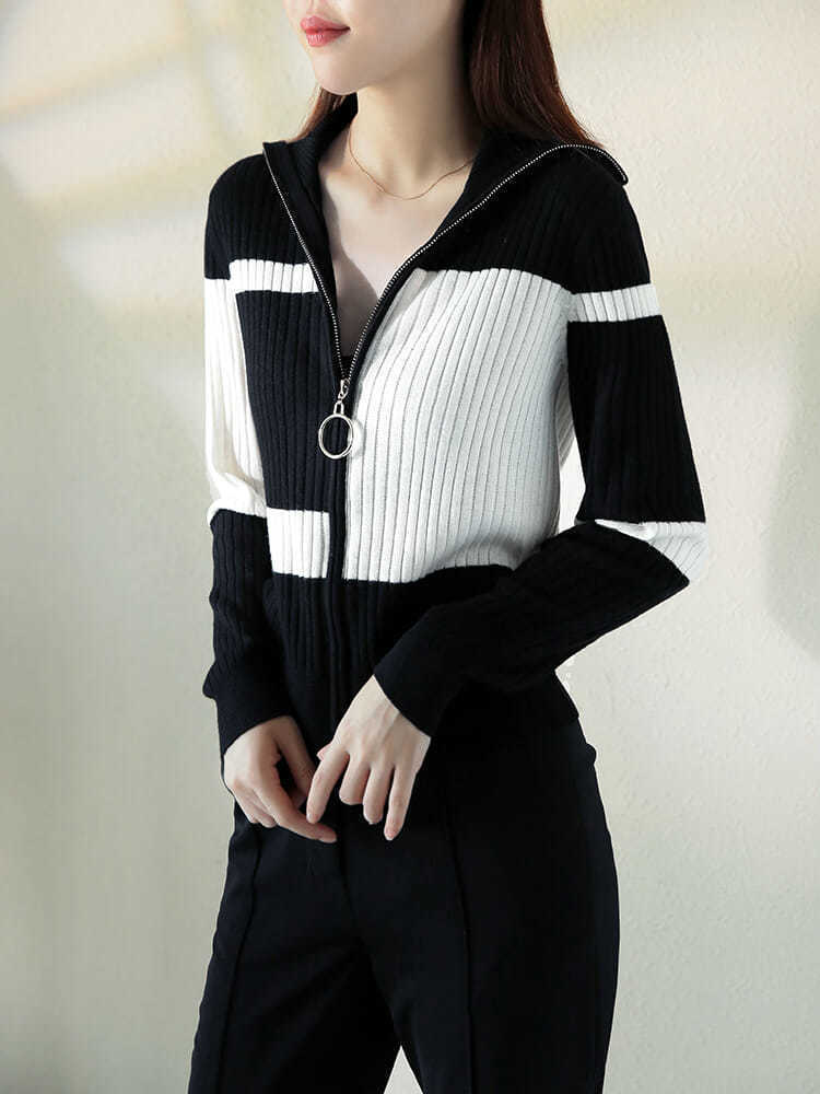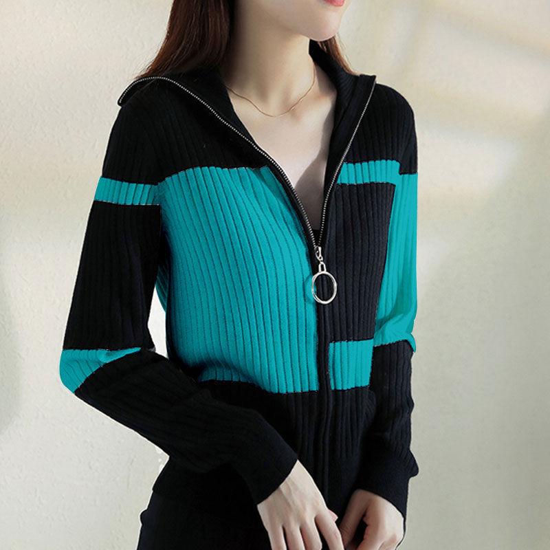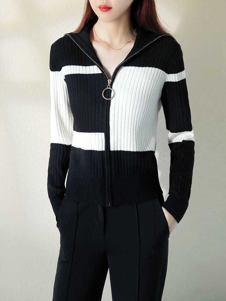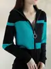 Abrigo de punto 2024 primavera y otoño nuevo forrado de vellón engrosado moda simple color de contraste todo-combinable cárdigan con cremallera