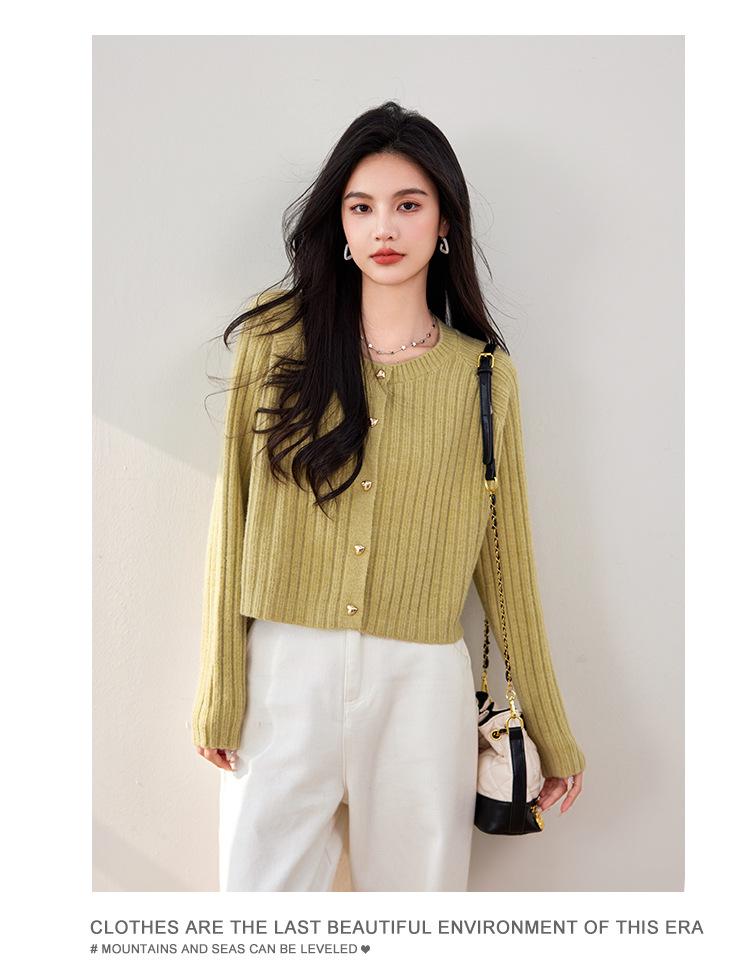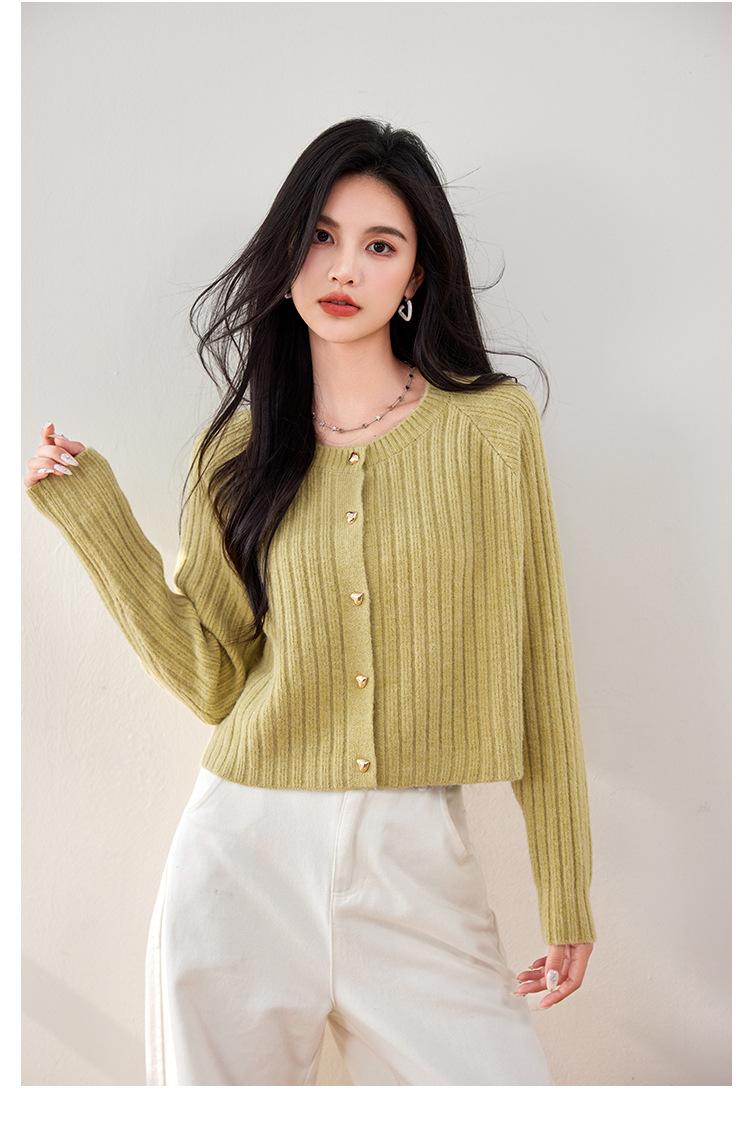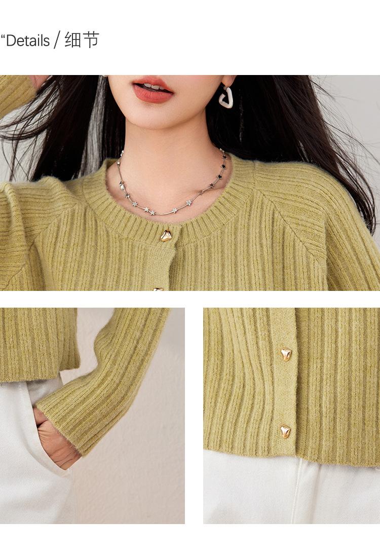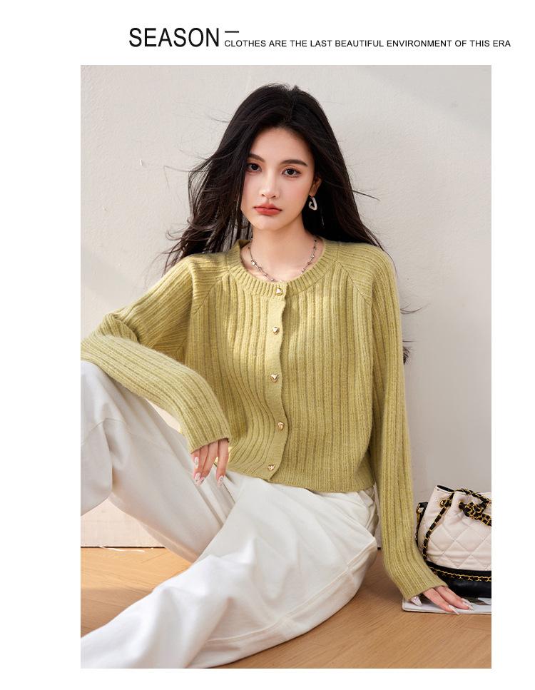 Otoño 2024 Nuevo Suéter Grueso de Color Sólido con Cuello Redondo Coreano Chaqueta Cárdigan de Punto Retro Francés Top para Mujer