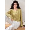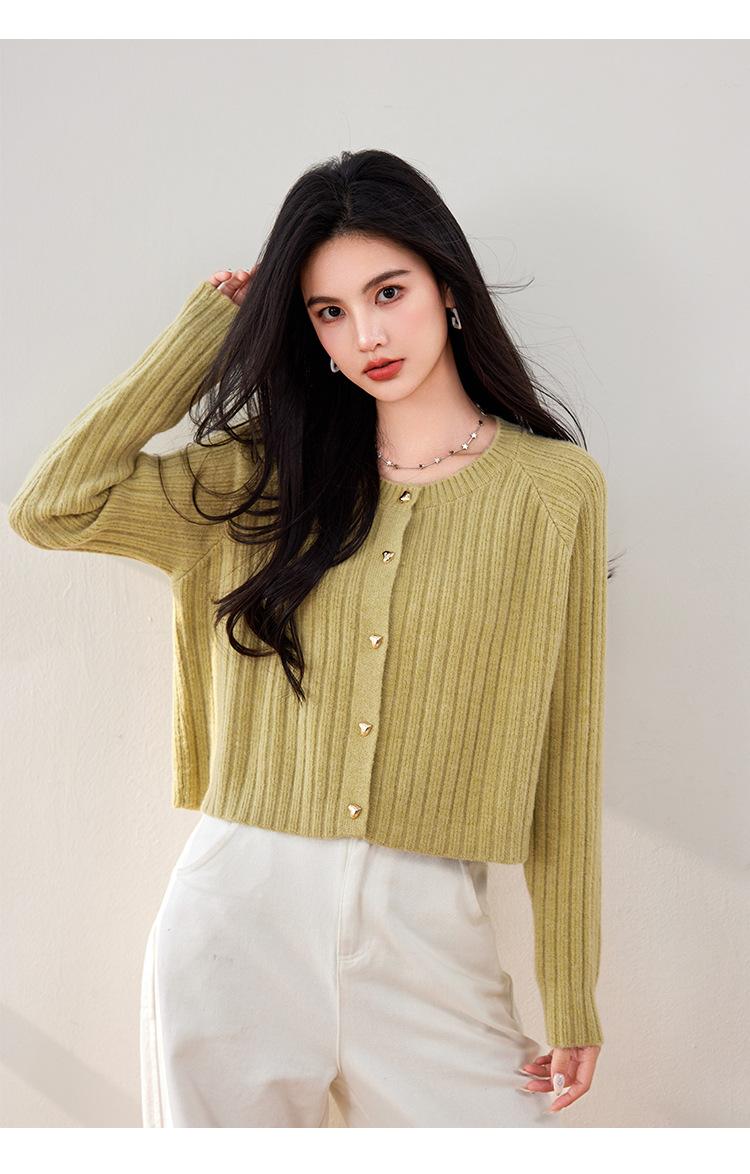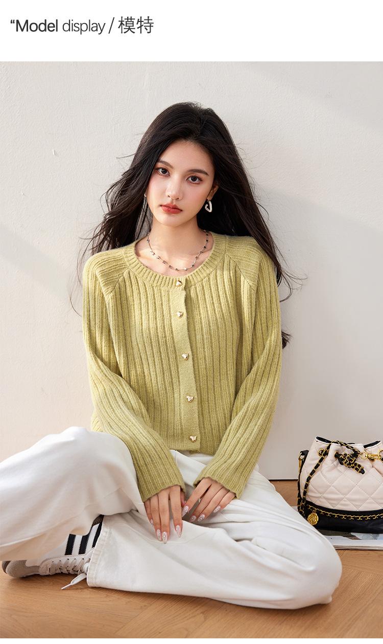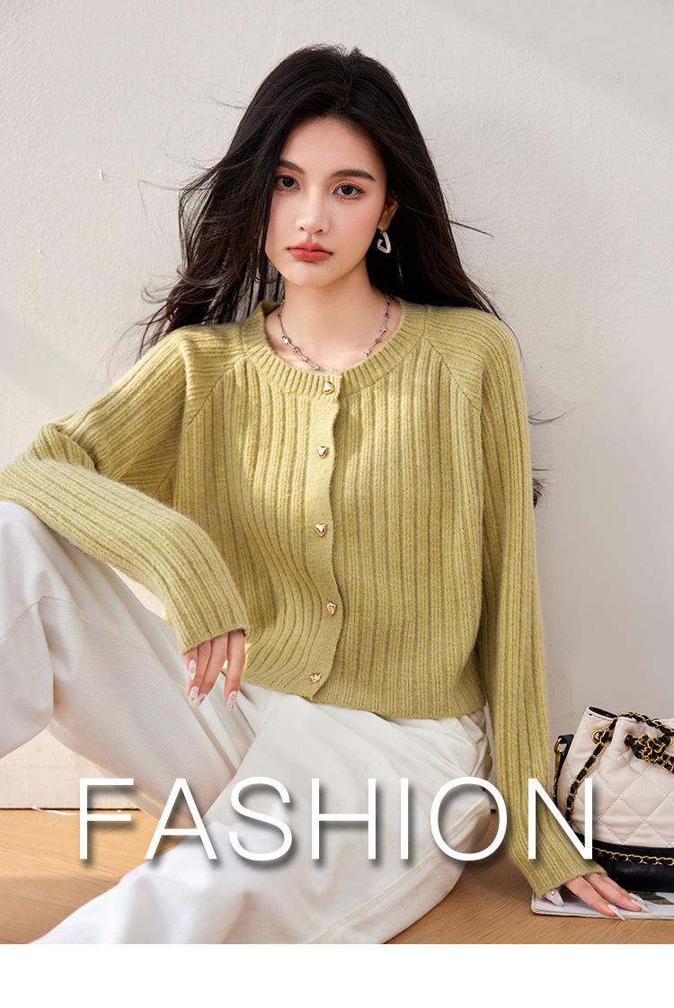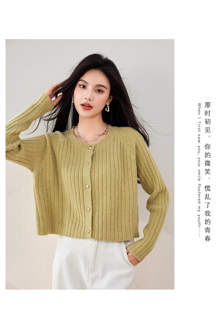 Otoño 2024 Nuevo Suéter Grueso de Color Sólido con Cuello Redondo Coreano Chaqueta Cárdigan de Punto Retro Francés Top para Mujer