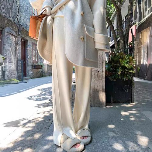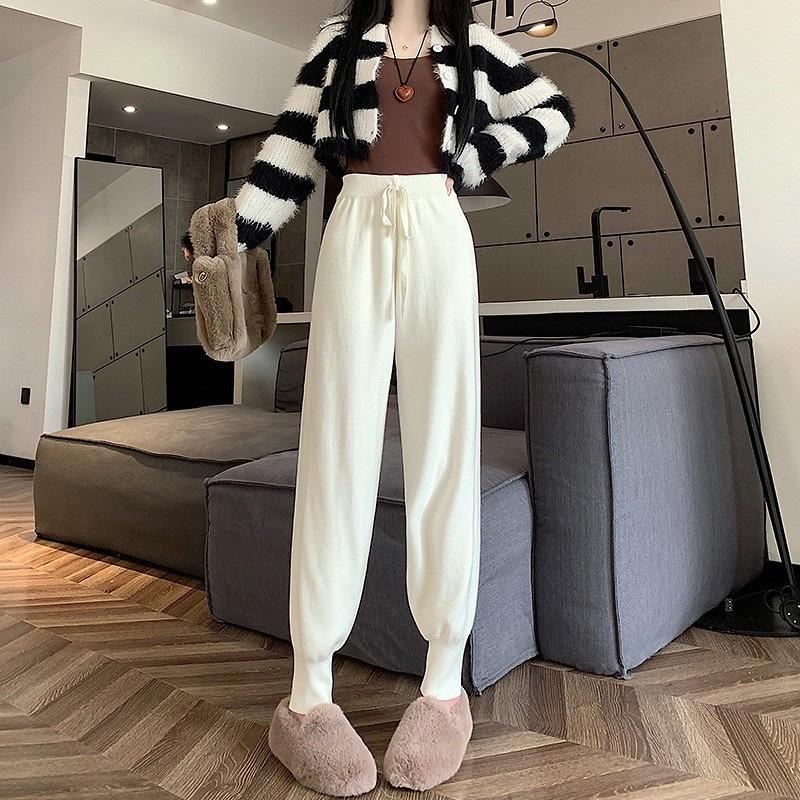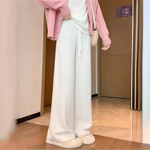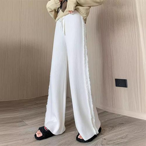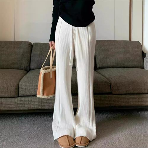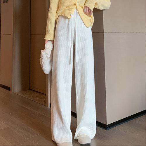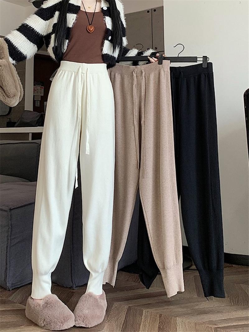 Pantalones Casuales Holgados para Personas Pequeñas, Tejido con Cordones 2024 Nuevo Color Puro Estilo Perezoso Pantalones Suaves y Cerosos