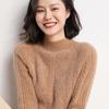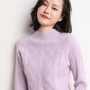 Suéter de Cachemira Otoño e Invierno Nuevo Color Sólido Medio Cuello Alto para Mujer Suéter de Cachemira de Montaña Trenzado Flor Espesado Suelto Suéter Tejido Base