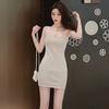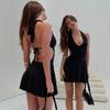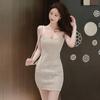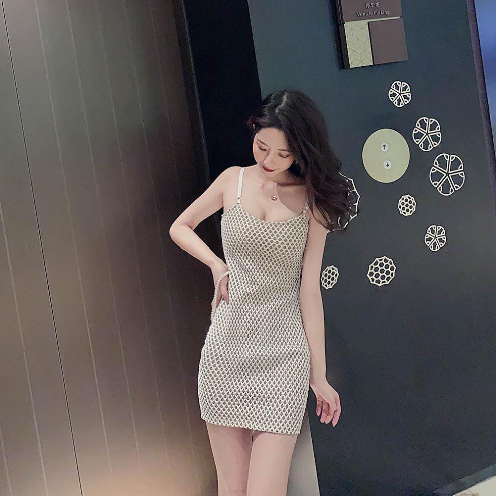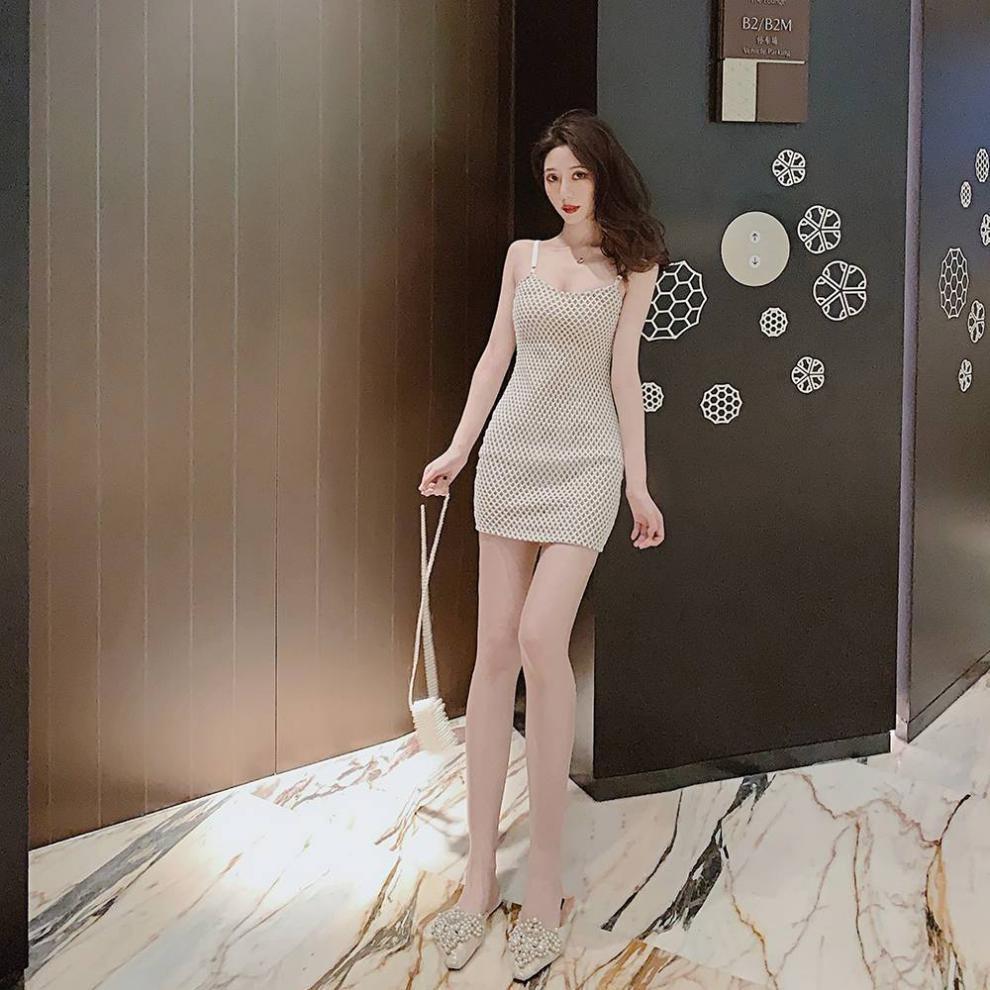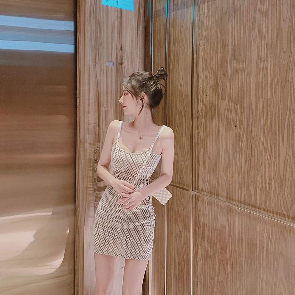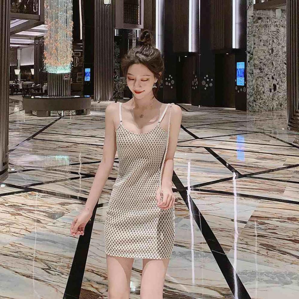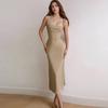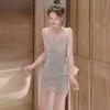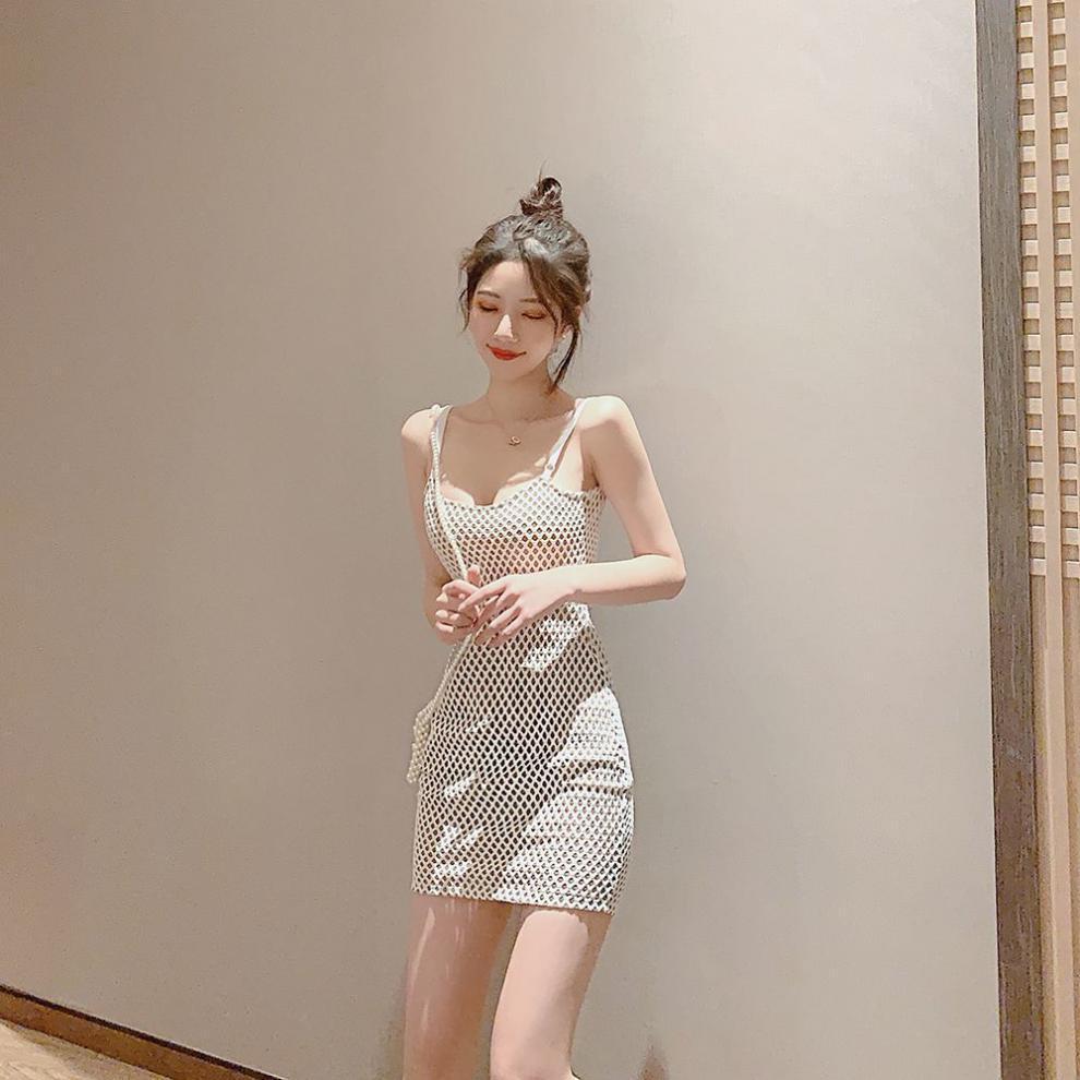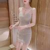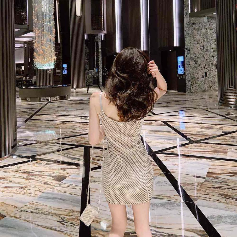 Vestido ajustado con escote pronunciado y espalda descubierta, de malla, sexy, con cortes a juego, ajustado y ceñido a la cadera, para el verano de 2020.