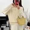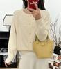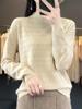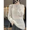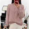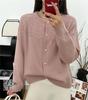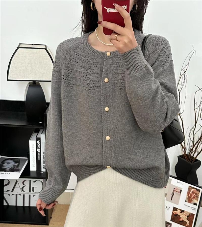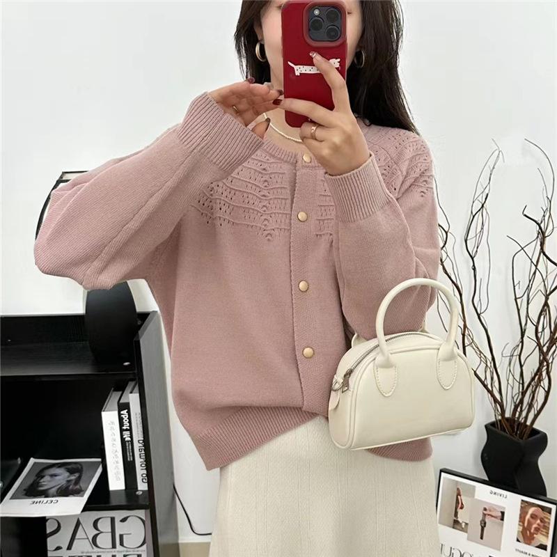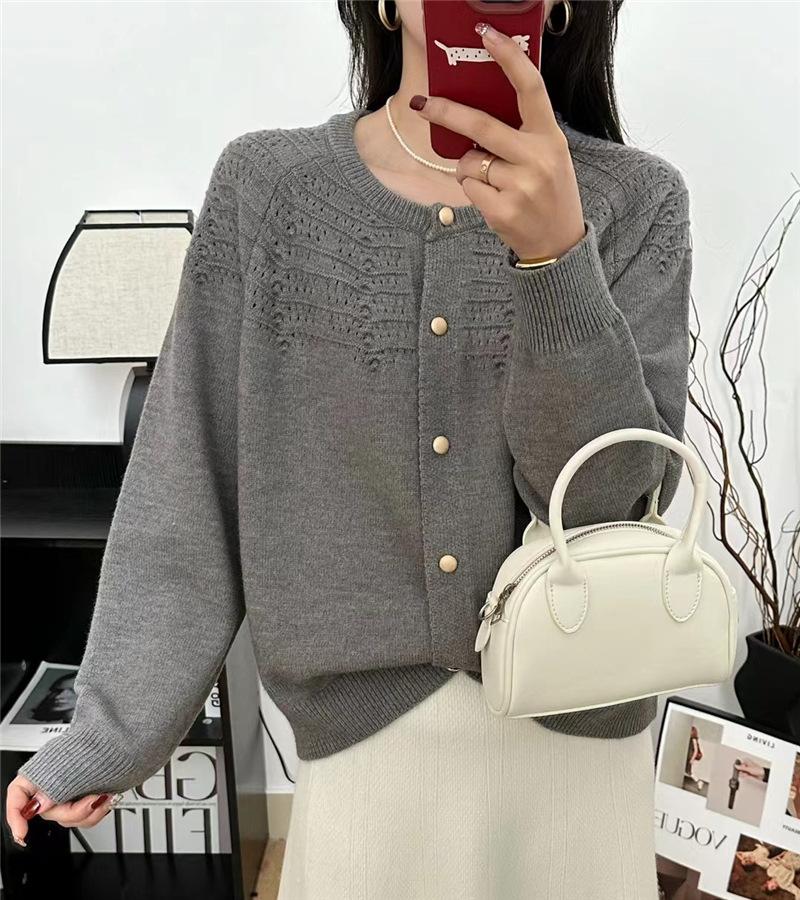 Cárdigan de Punto Calado de Cuello Redondo para Mujer Otoño Nueva Moda Elegante Versátil Sencillo Suelto Chaqueta Suéter Trendy