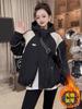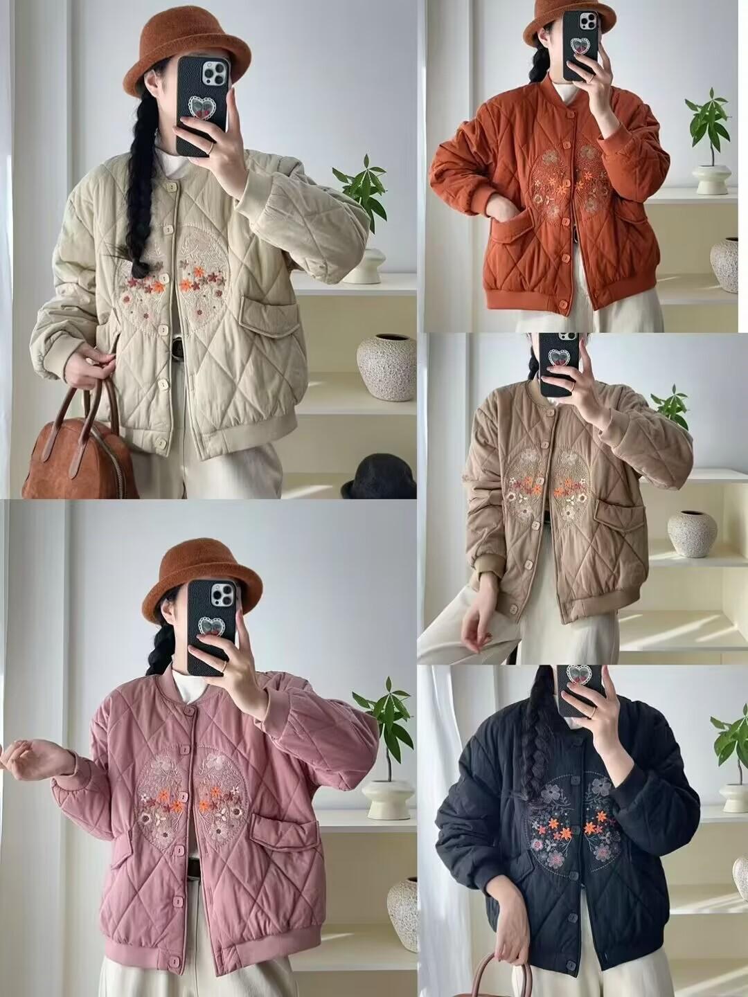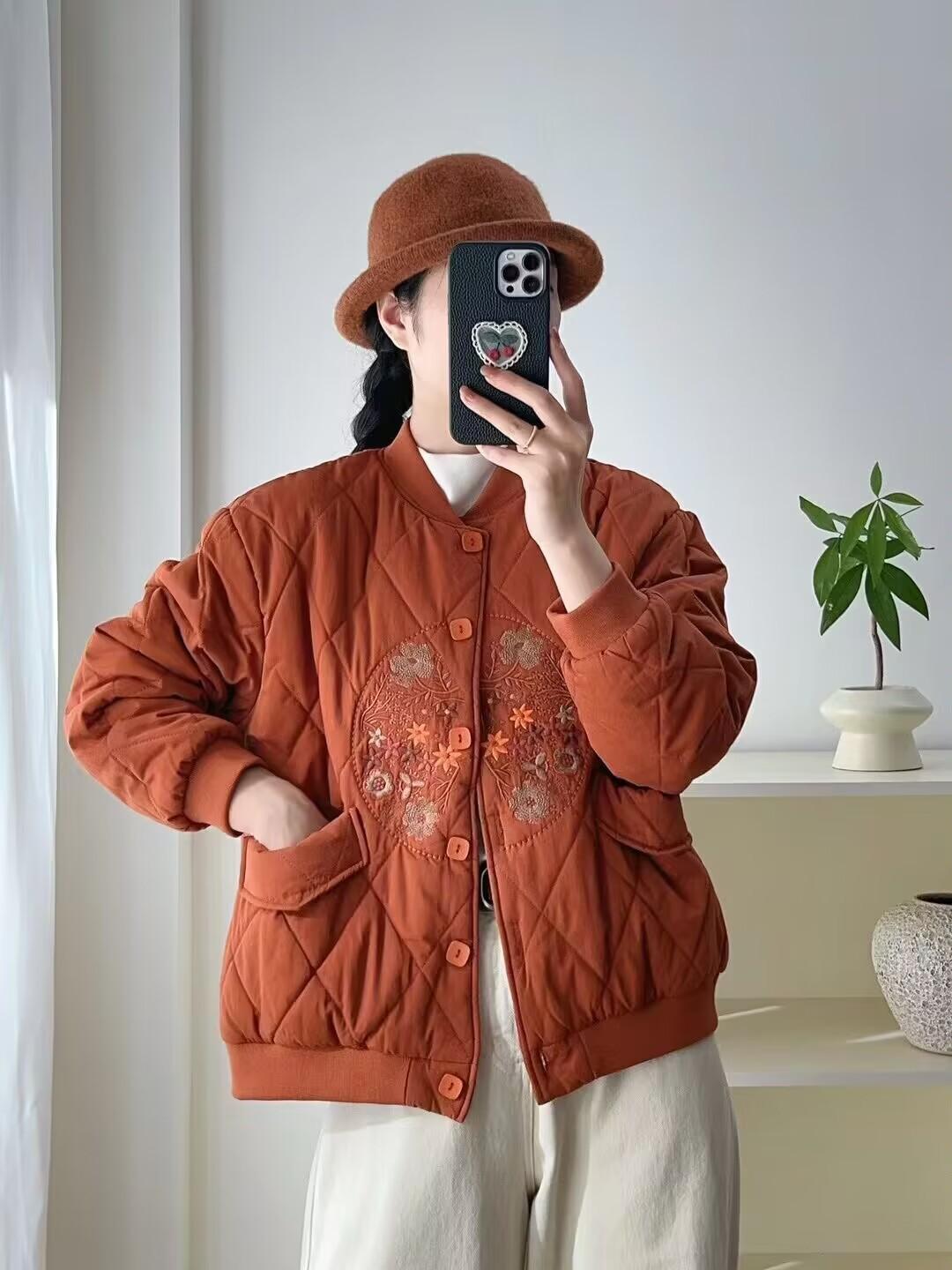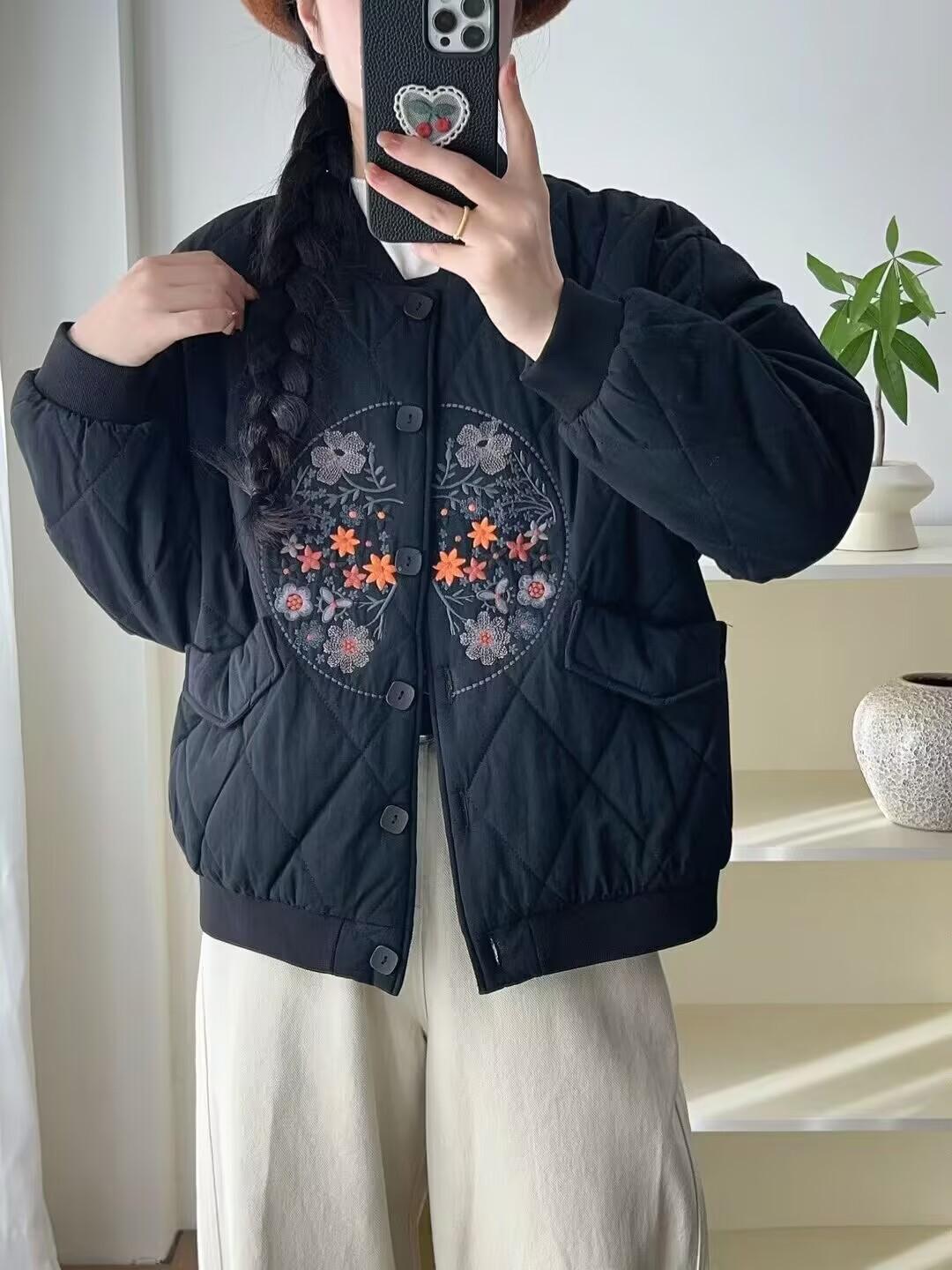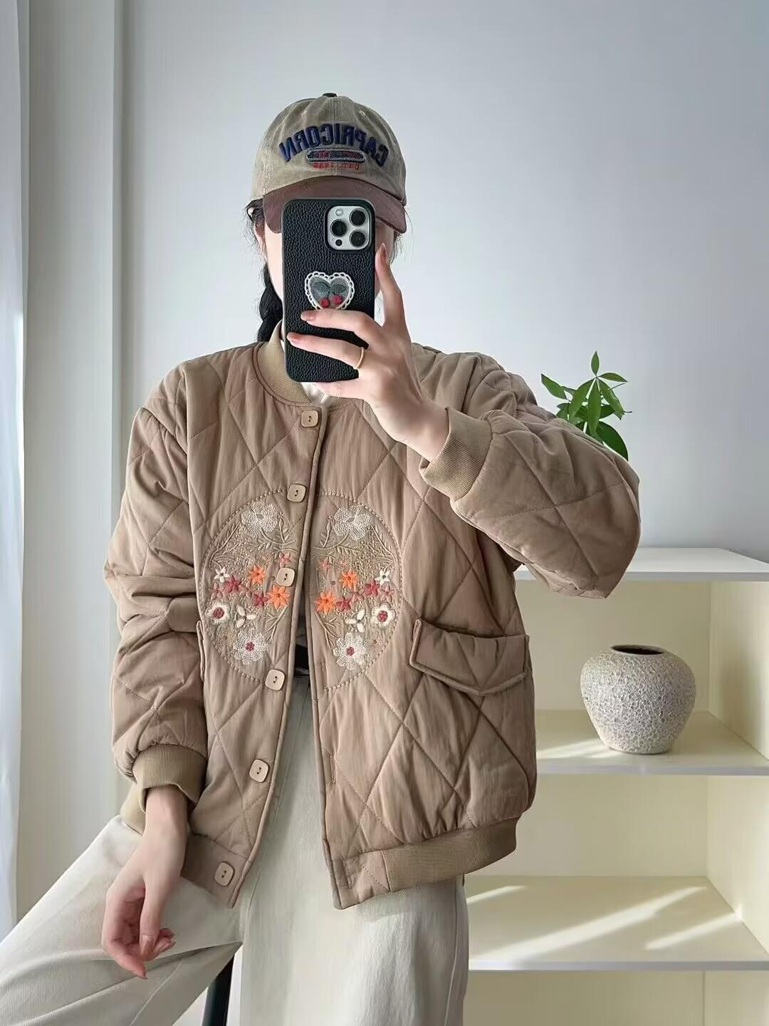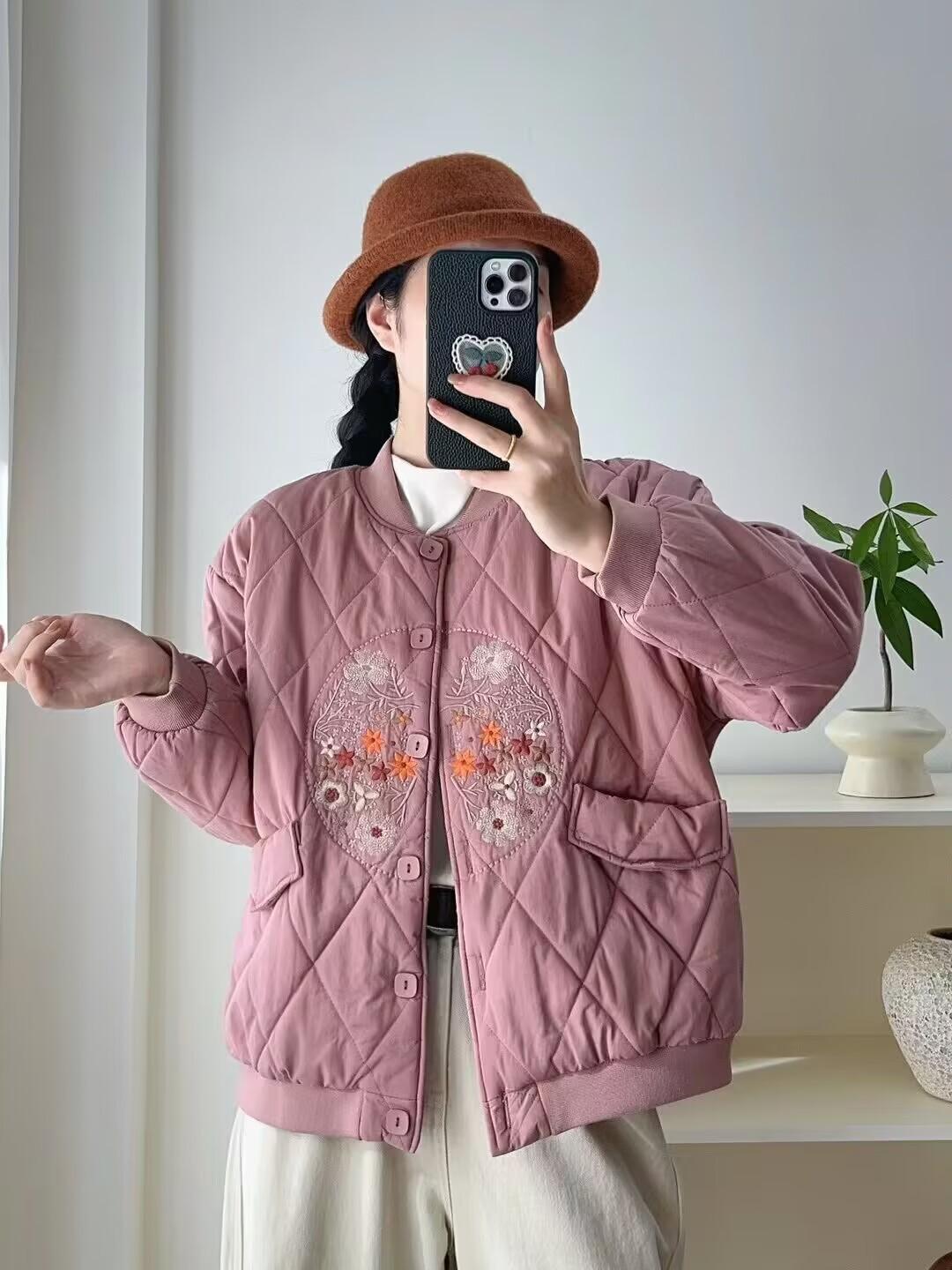 Abrigo acolchado de algodón con bordado a cuadros para mujer, abrigo de béisbol holgado y cálido, estilo coreano, nuevo, invierno 2024