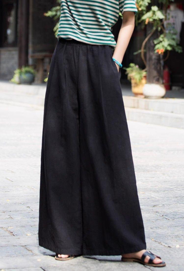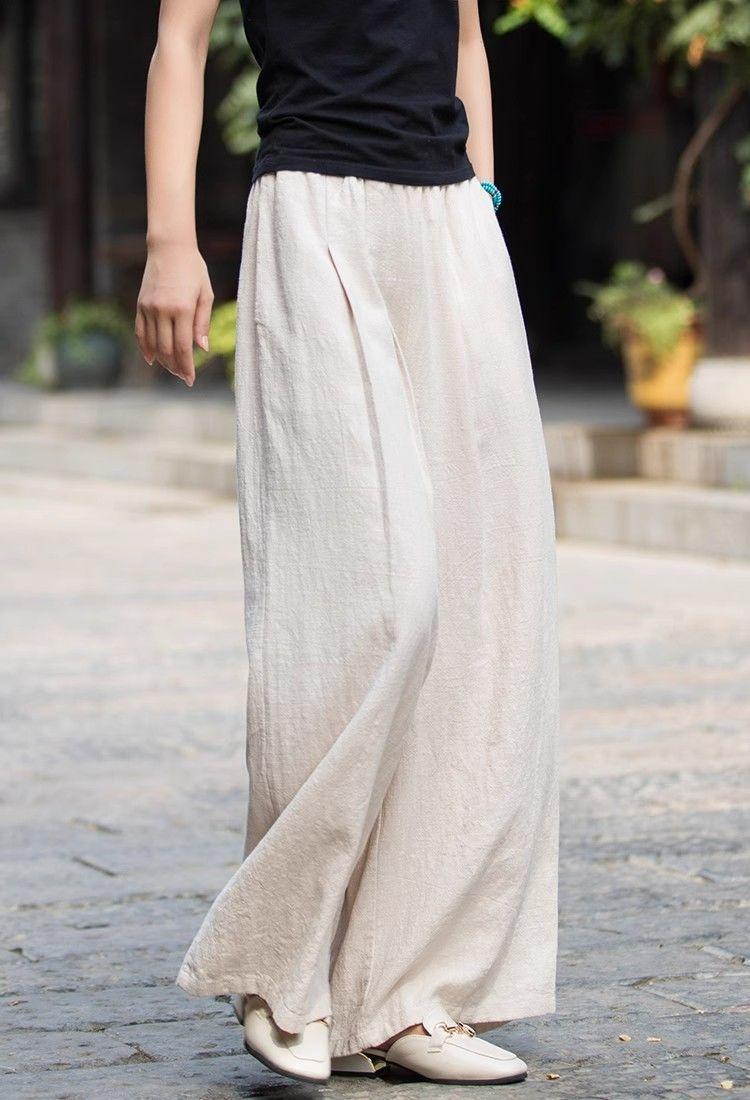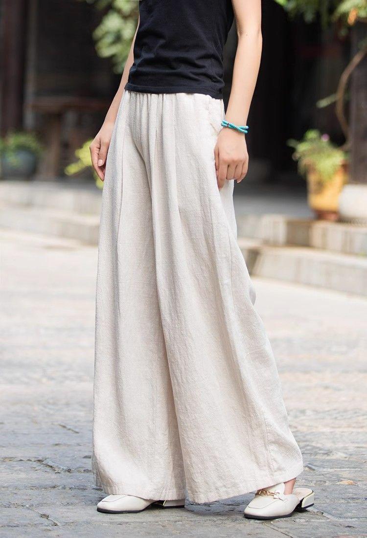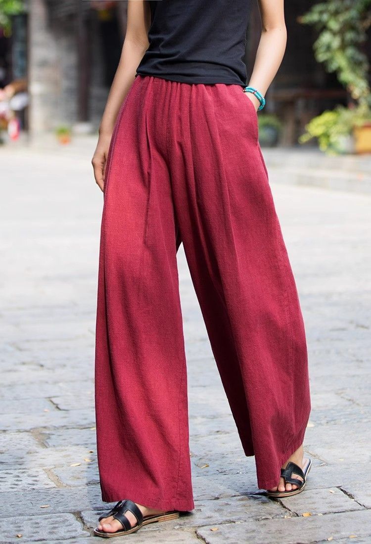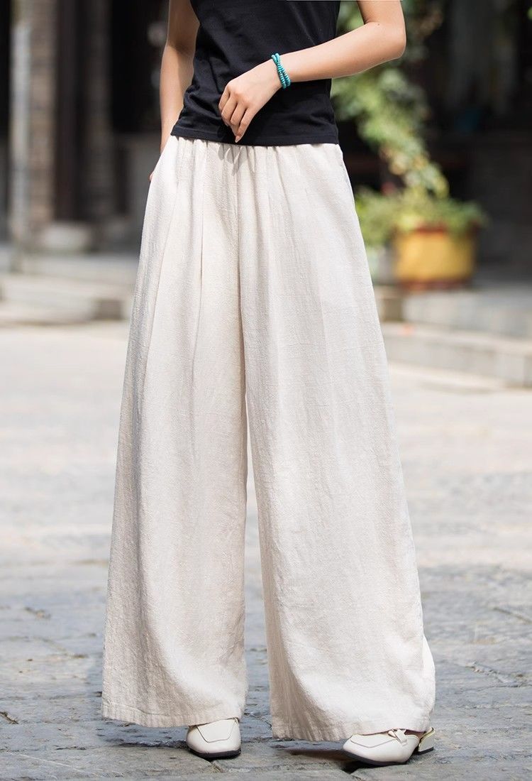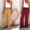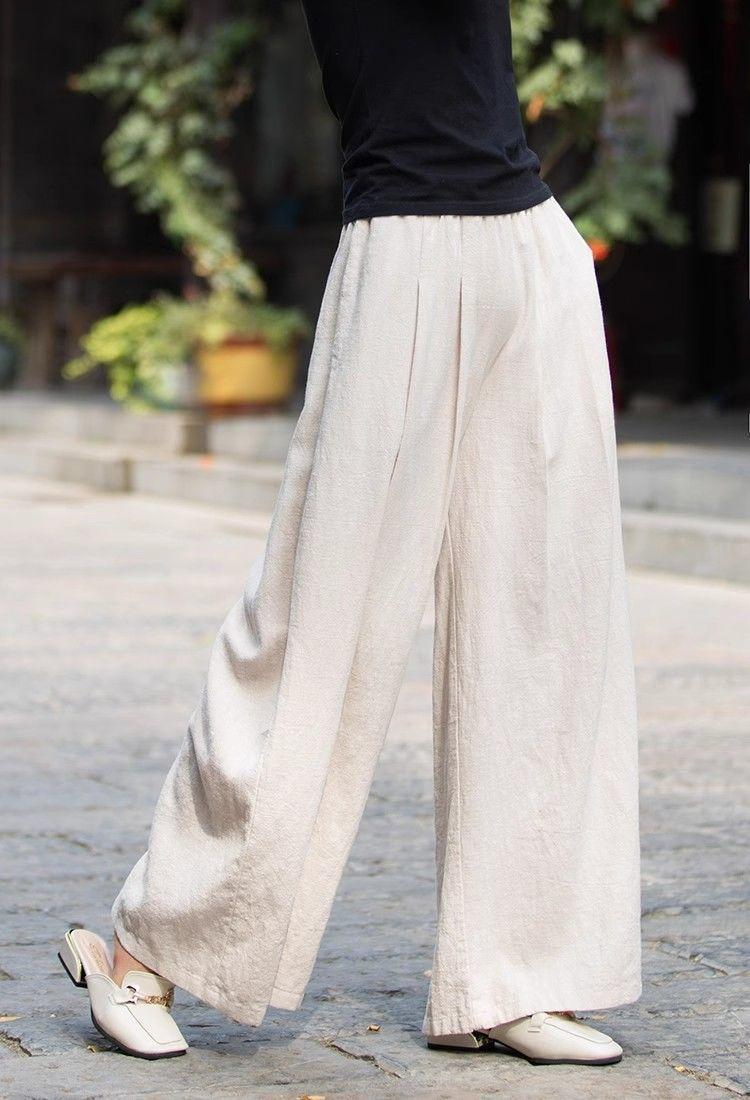 Pantalones de Pierna Ancha de Algodón y Lino Nuevos 2025 para Mujer, Verano Casual de Cintura Alta con Caída Sueltos Pantalones Largos para Mujer