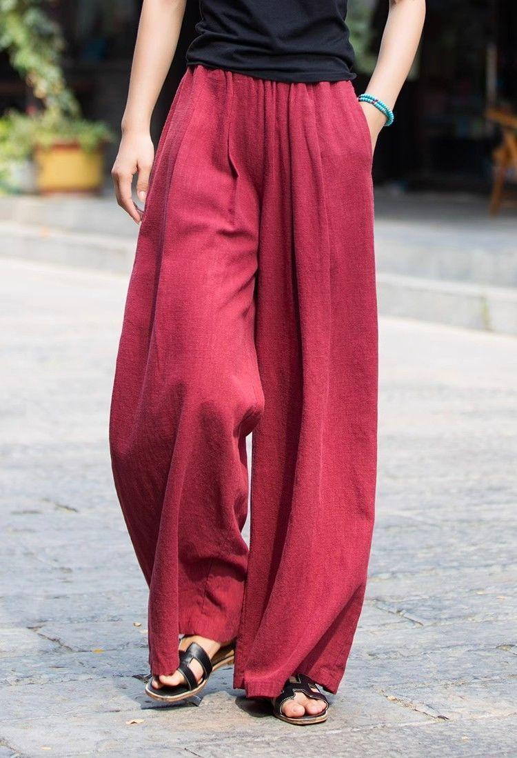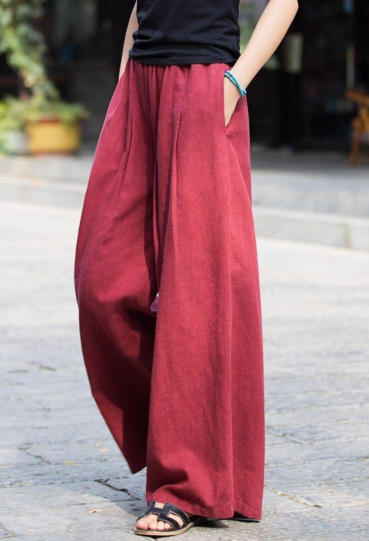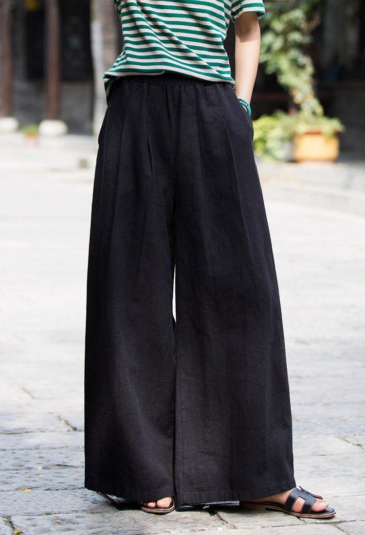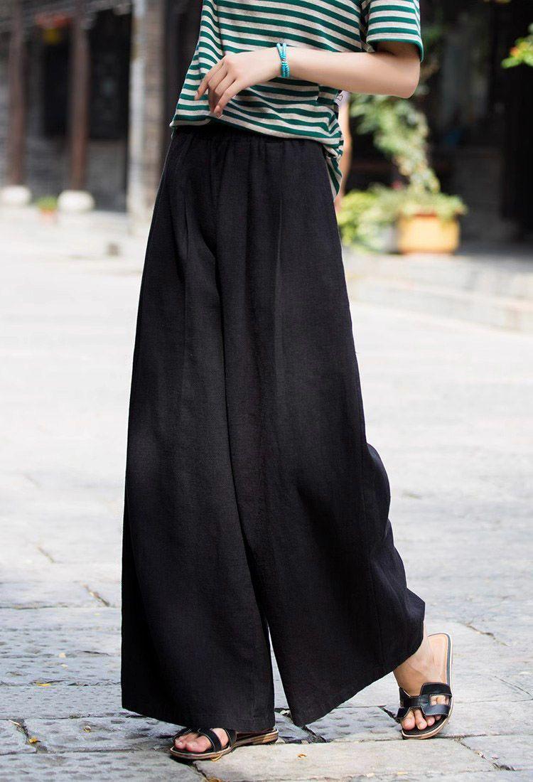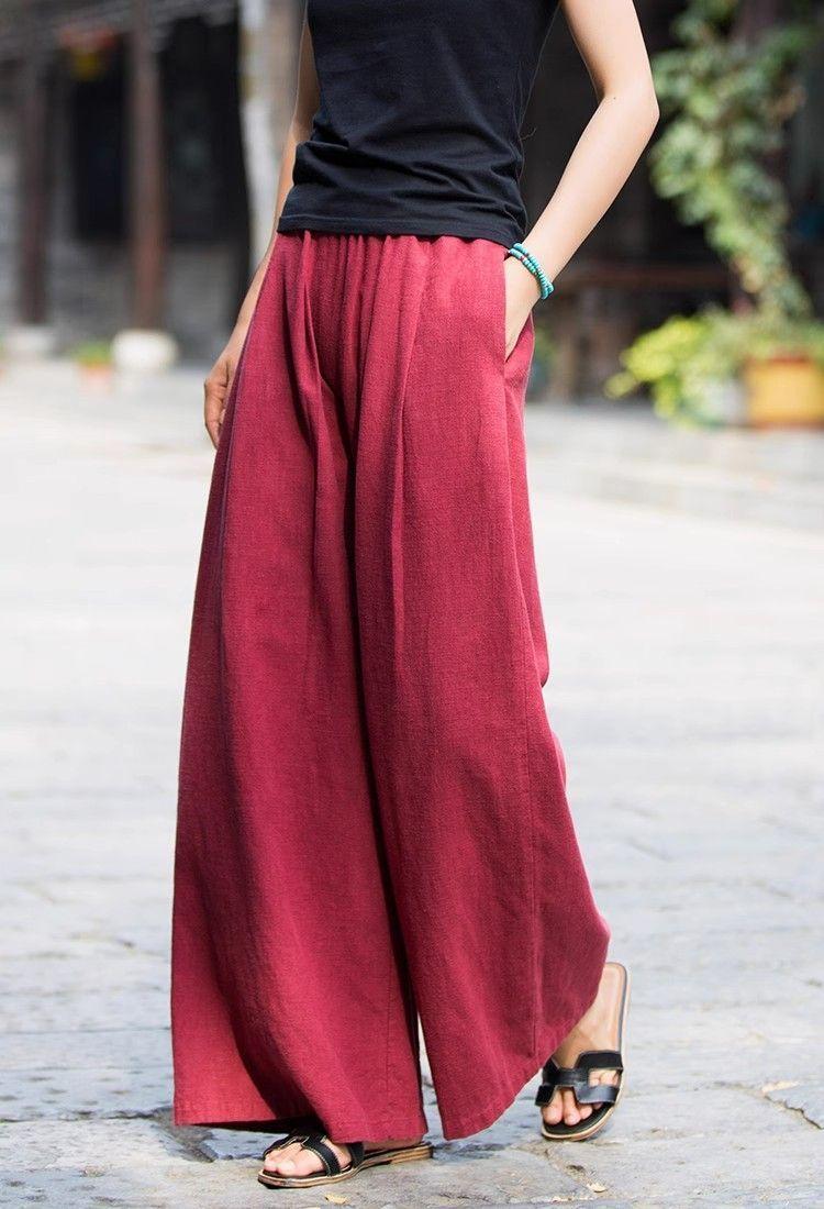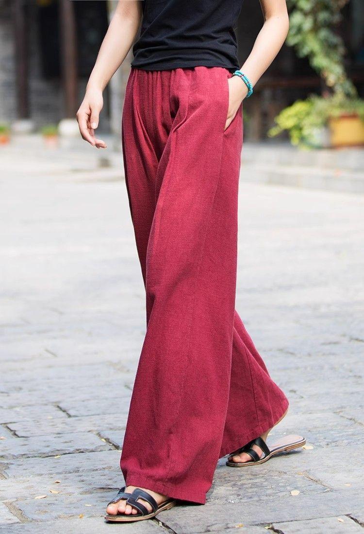Pantalones de Pierna Ancha de Algodón y Lino Nuevos 2025 para Mujer, Verano Casual de Cintura Alta con Caída Sueltos Pantalones Largos para Mujer
