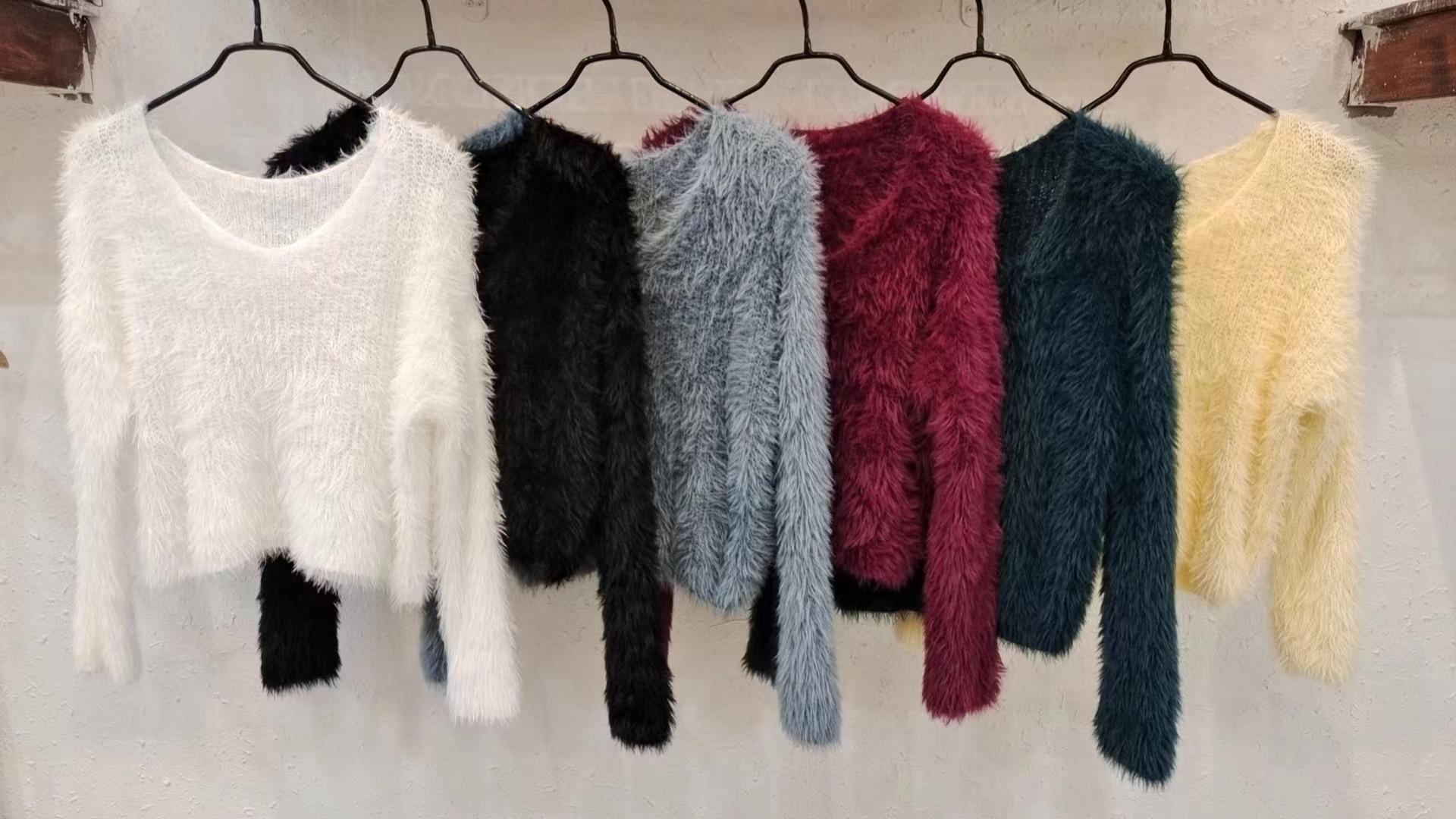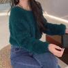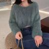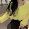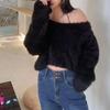 Suéter corto de lana de visón suave y encerado de estilo perezoso para mujer, otoño e invierno, nueva camisa holgada con hombros descubiertos, top de manga larga