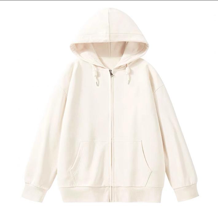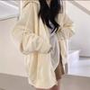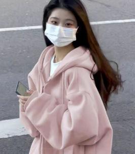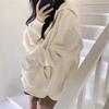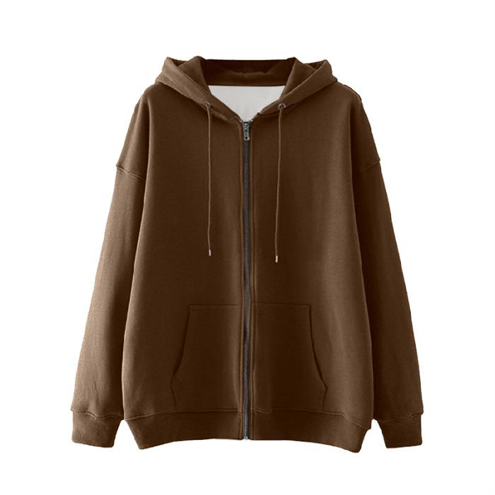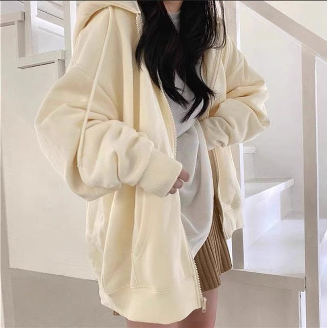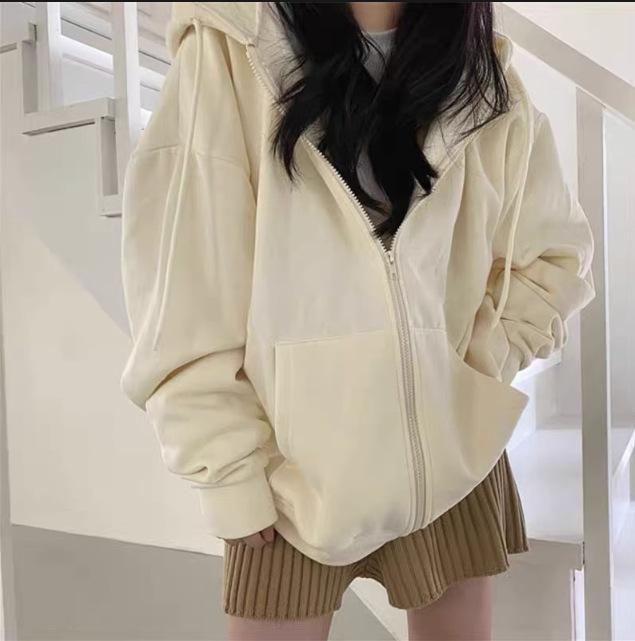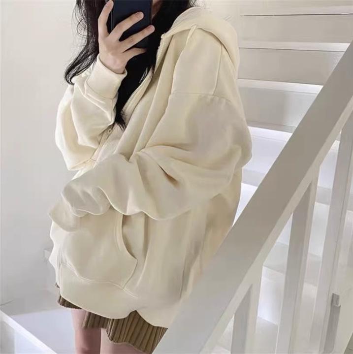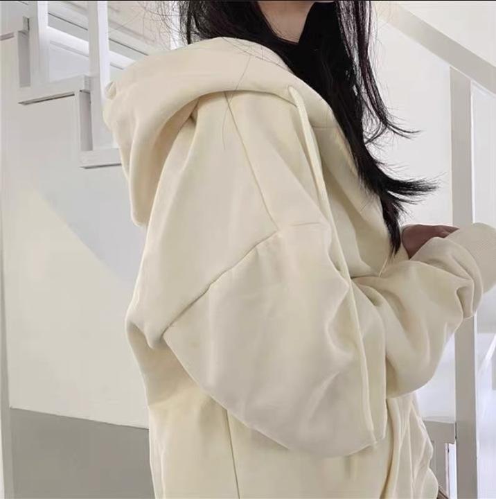 Chaqueta Deportiva con Capucha Estilo Chic de Hong Kong para Mujer Estilo Coreano con Forro Polar Gruesa Primavera Otoño Invierno Talla Grande Cárdigan Holgado Suéter Color Sólido