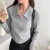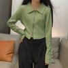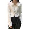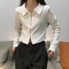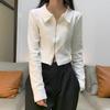 Korean style pure cotton turn-down collar long sleeve cropped t-shirt for women