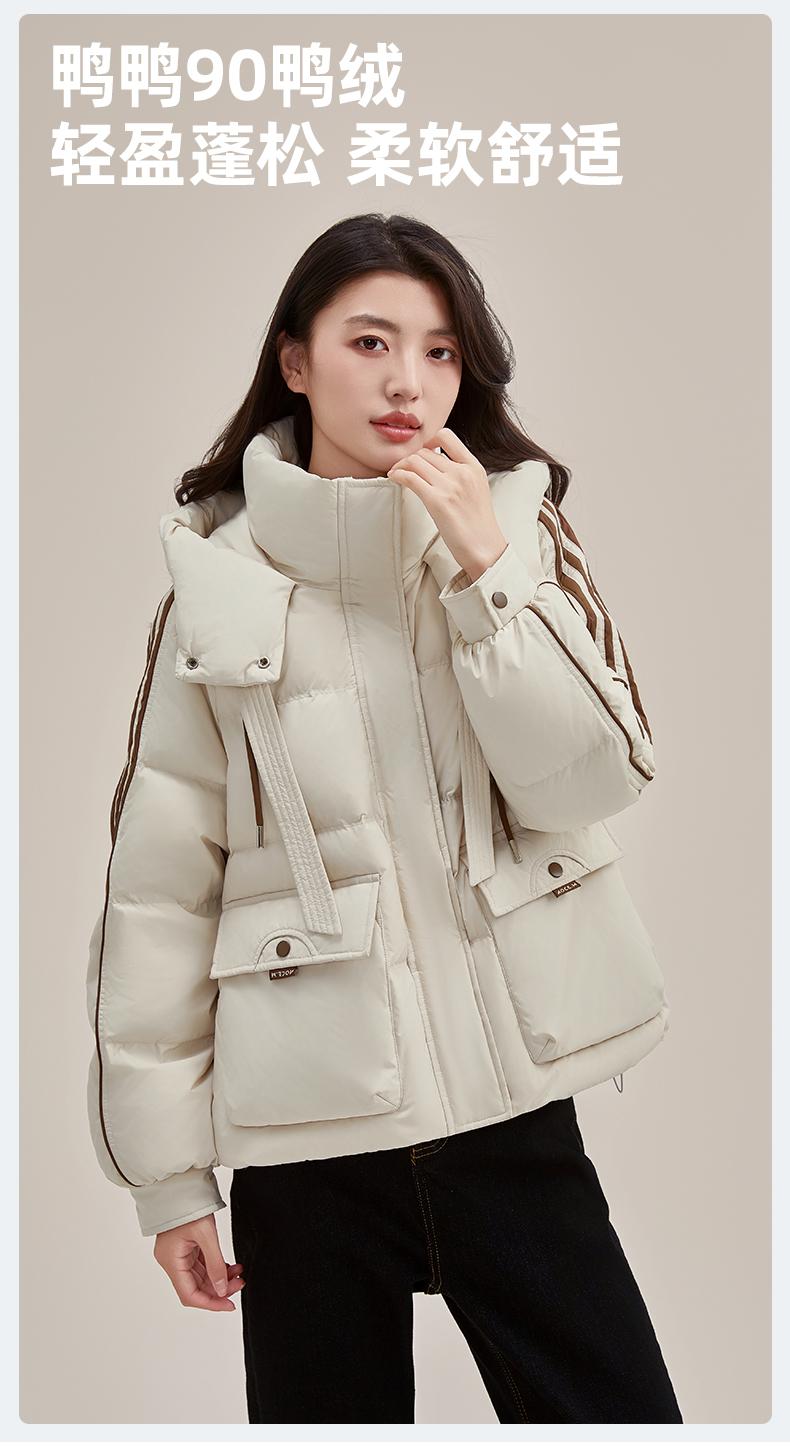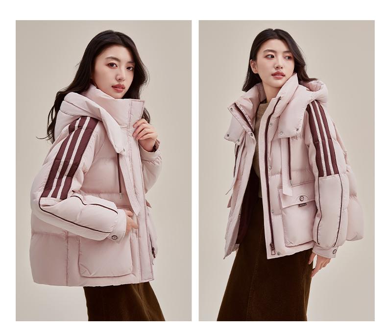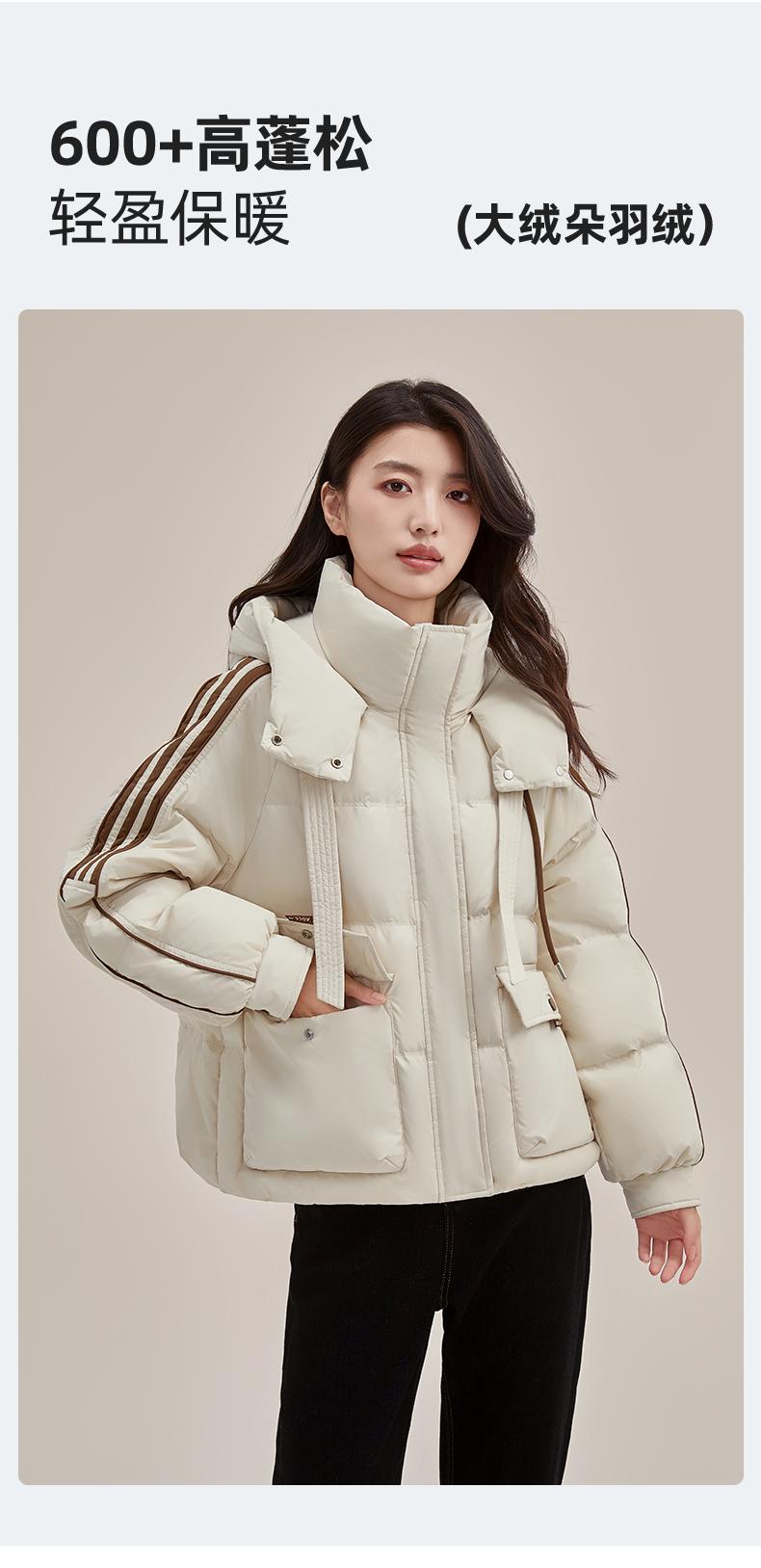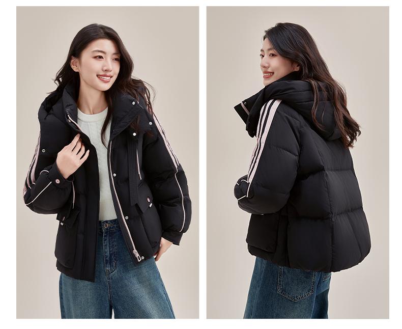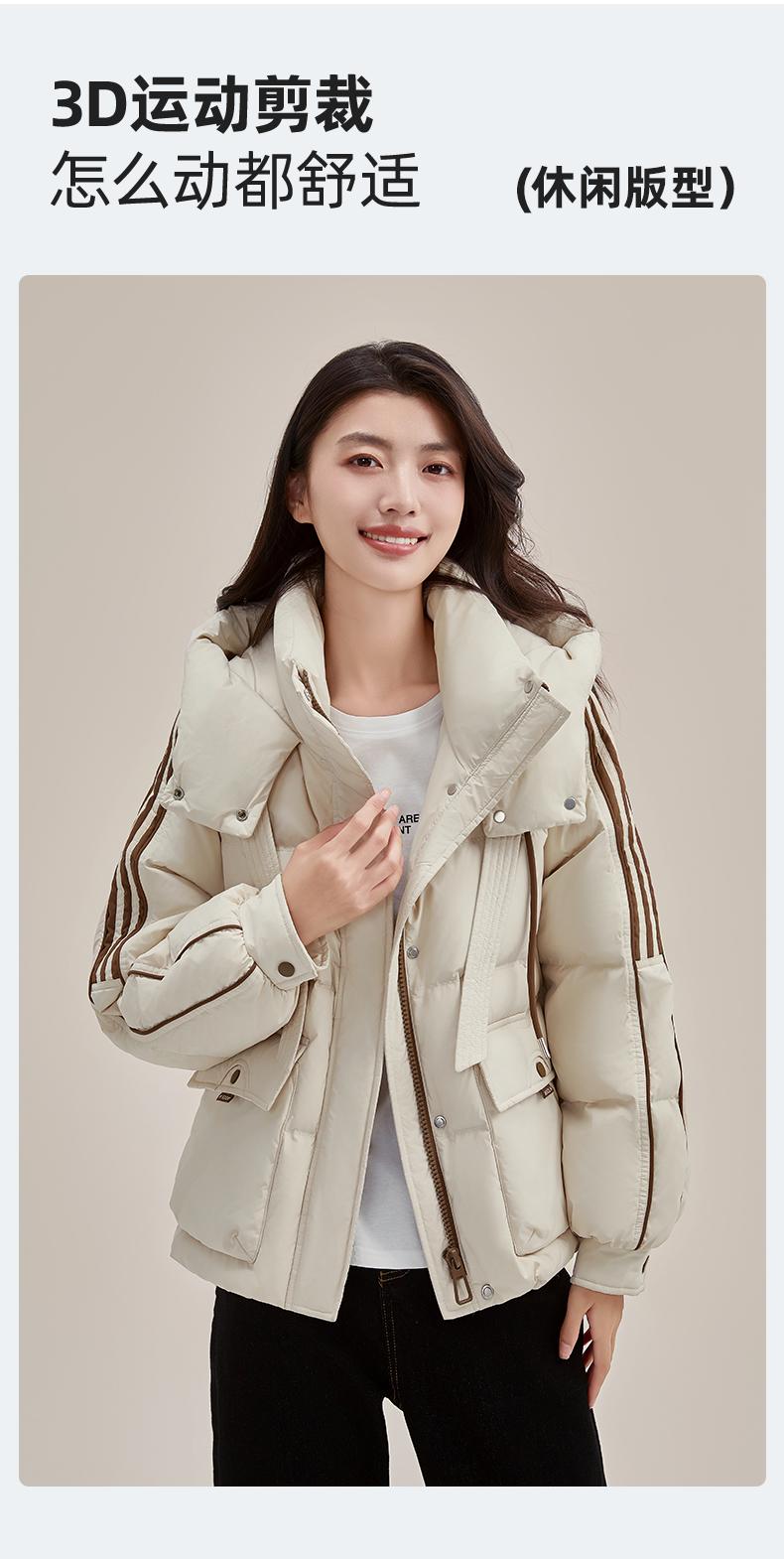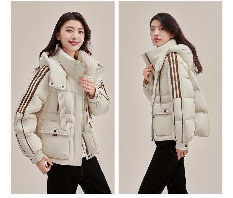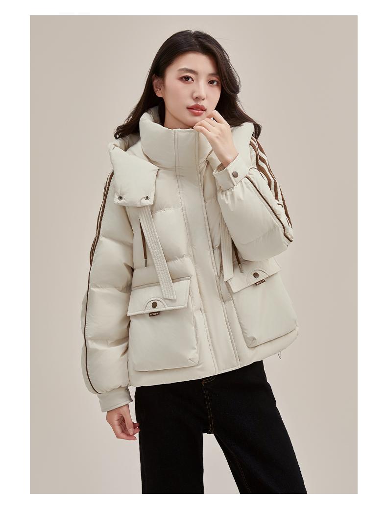 Chamarra de plumón de pato para mujer 2025 Invierno Nuevo Producto Cuello alto con capucha Moda Más fácil de combinar Chamarra casual esponjosa