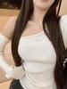 Top de Punto con Hombros Descubiertos Estilo Deseo Puro para Mujer, Nuevo Diseño de Otoño 2025, Corte Slim, Favorecedor, Top Corto para Chicas a la Moda