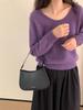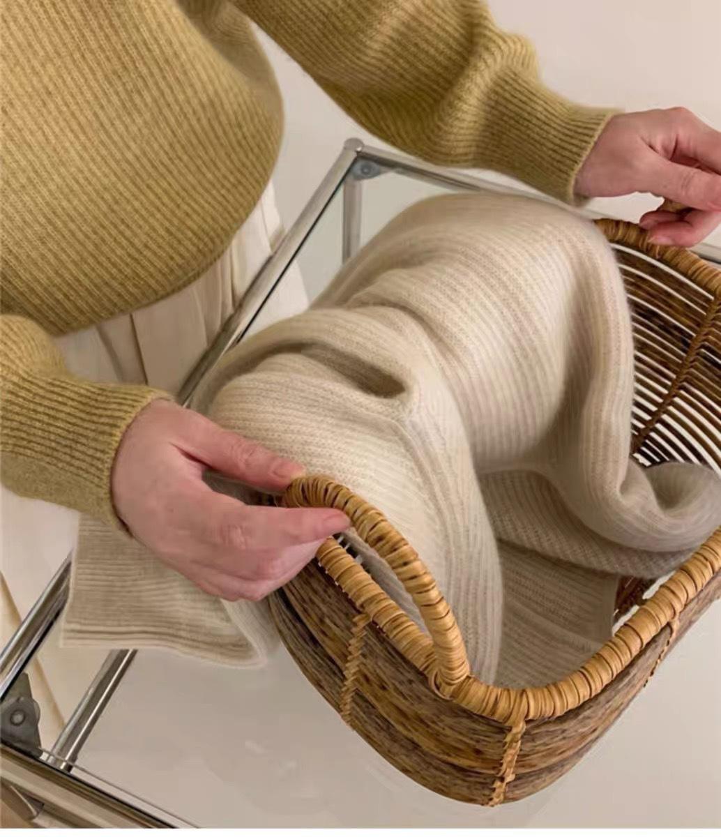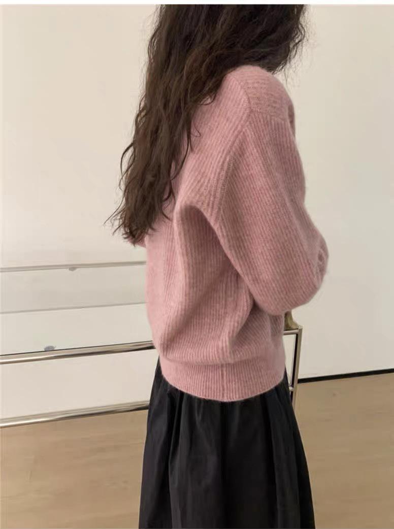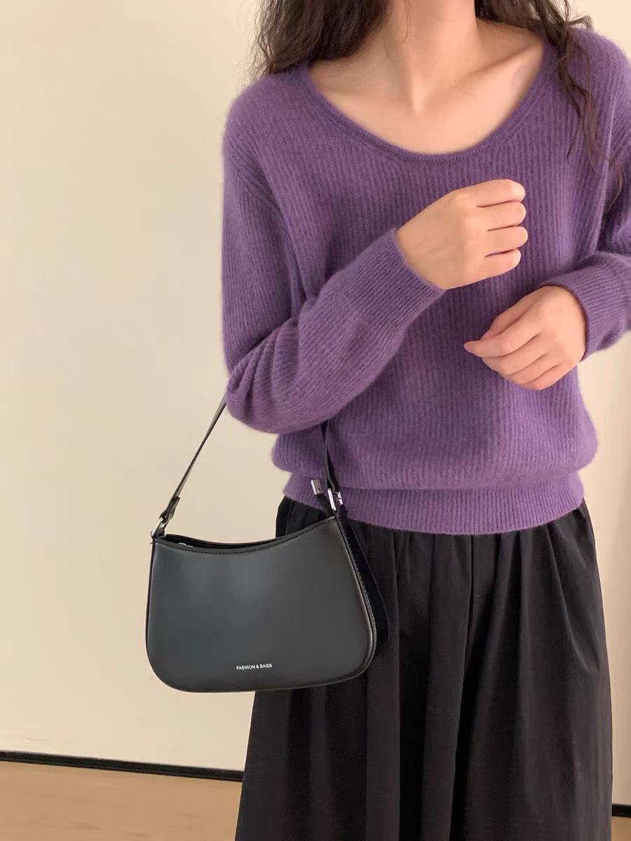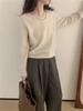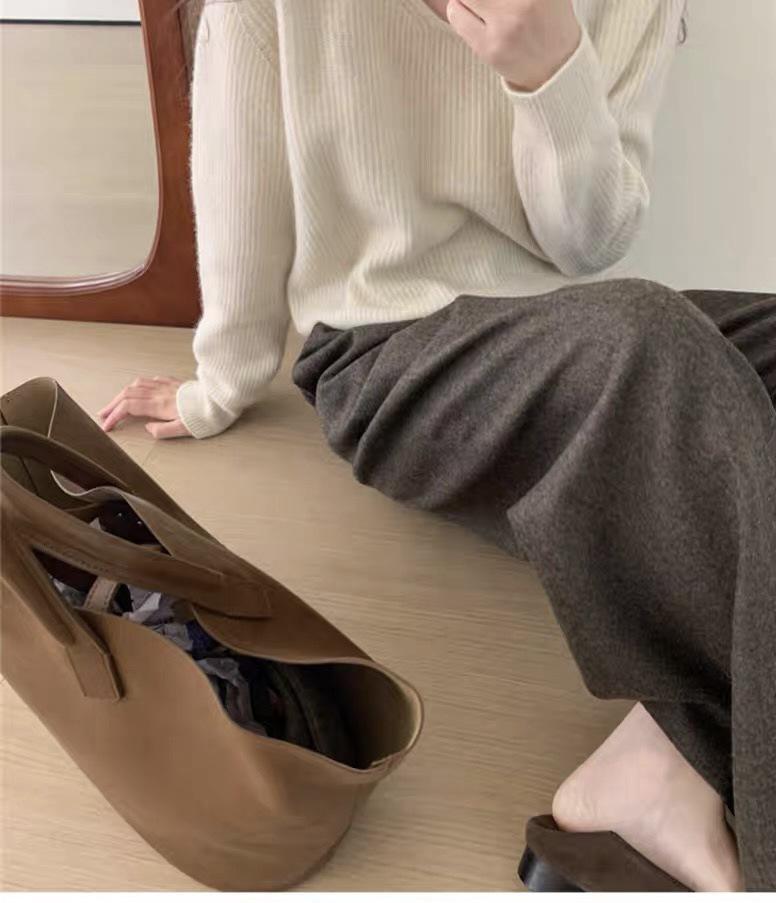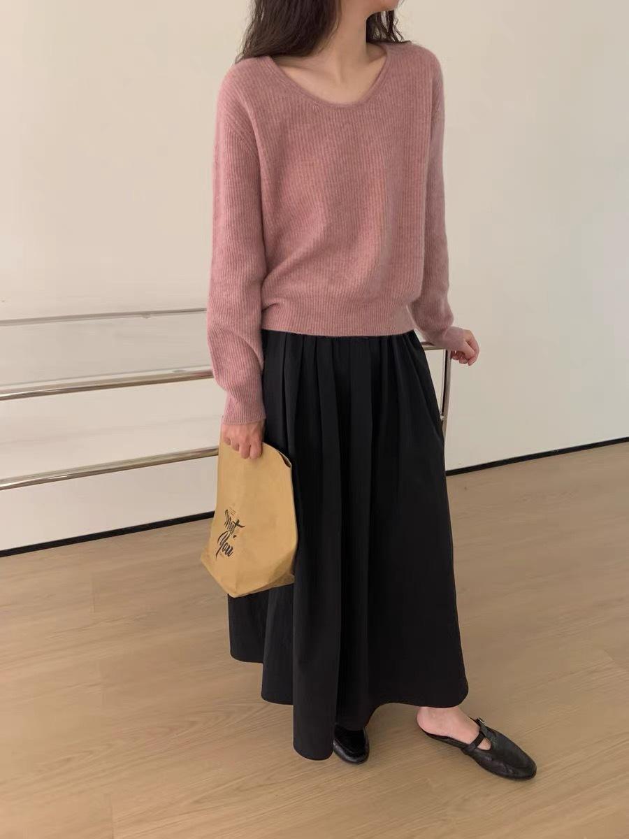 Suéter elegante de lana pura con cuello en U para otoño e invierno, suéter holgado de moda de color sólido, suéter de nicho, camisa interior de punto con base elegante