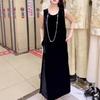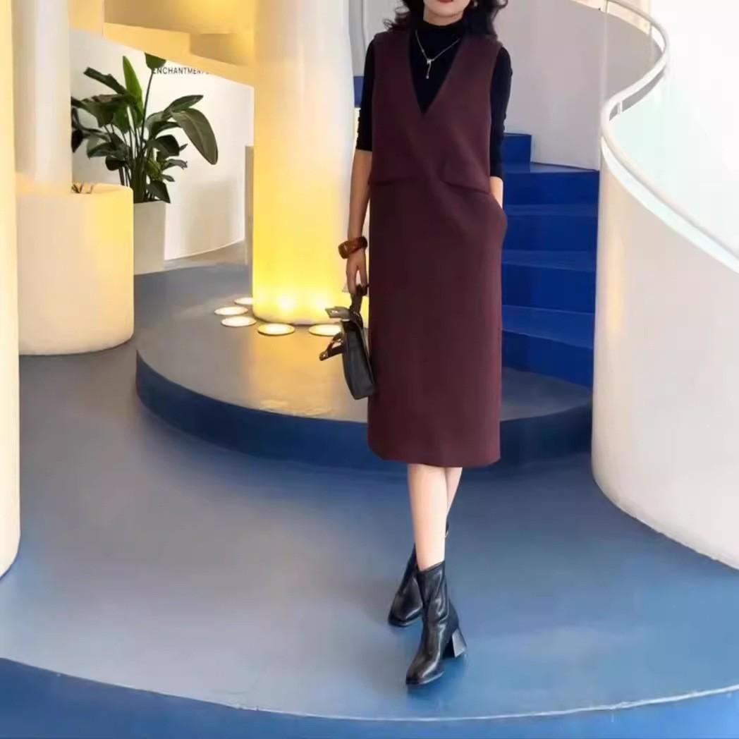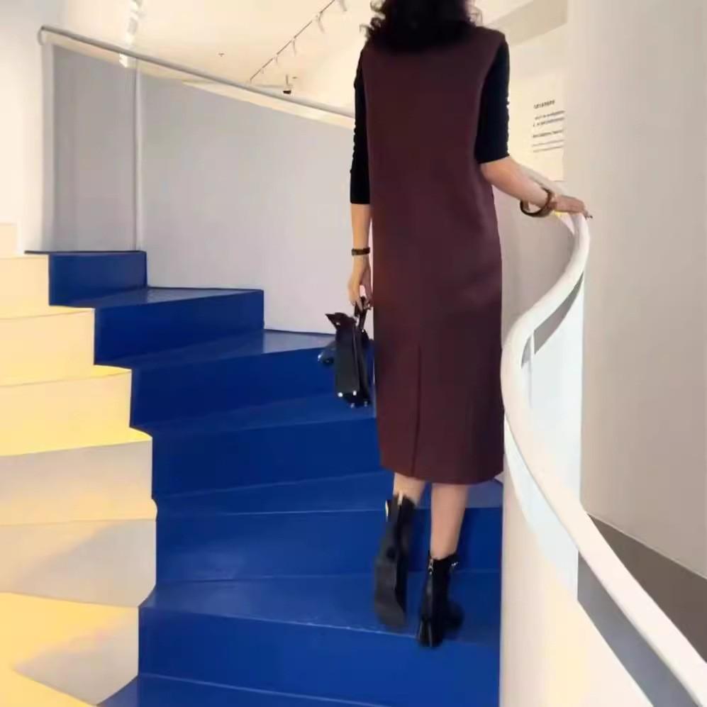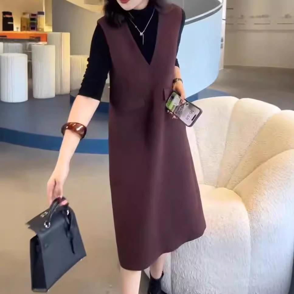 24911 Damei Ai Yuan 2025 Otoño Nuevo Color Sólido Corte Slim Camiseta Base Vestido sin Mangas con Cuello en V para Adelgazar Mujeres