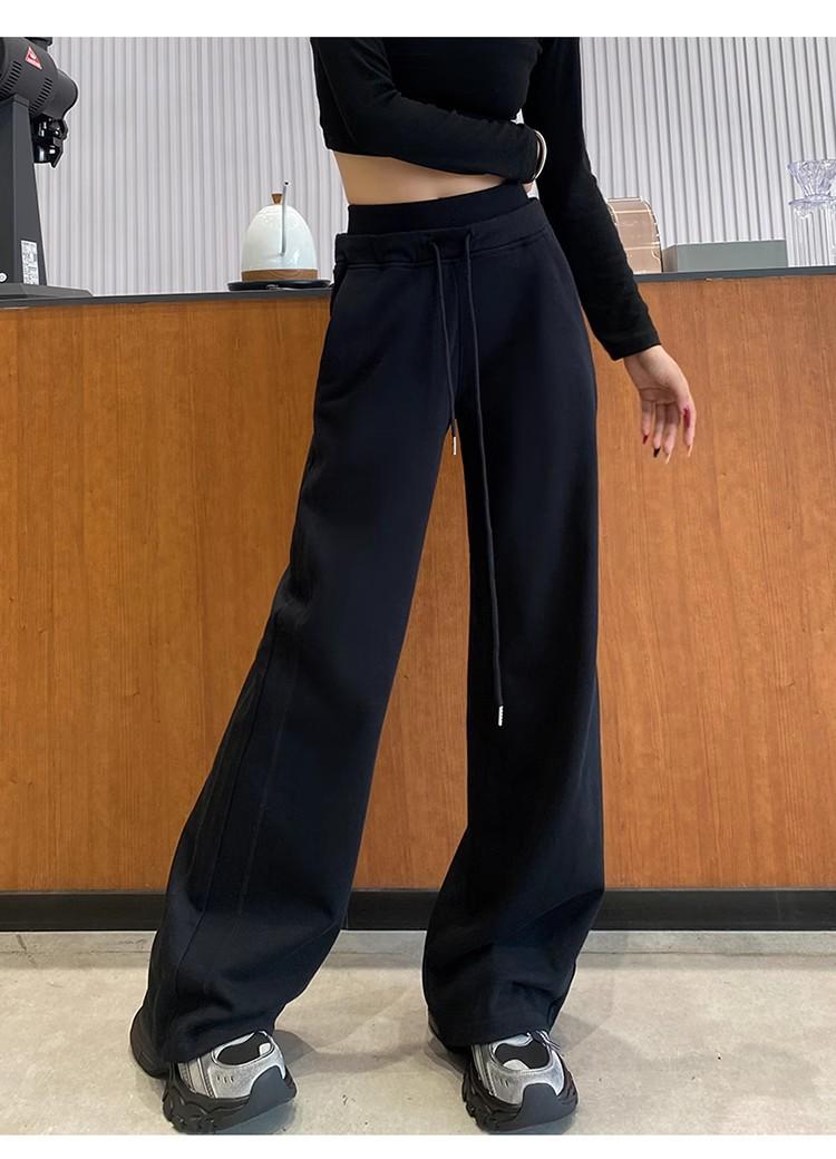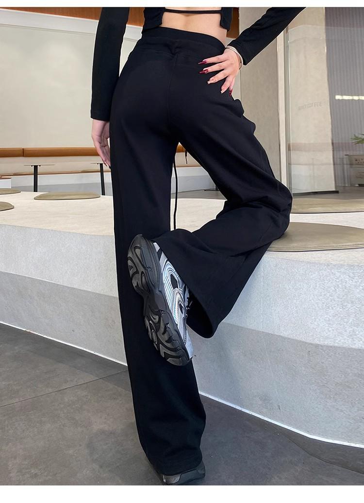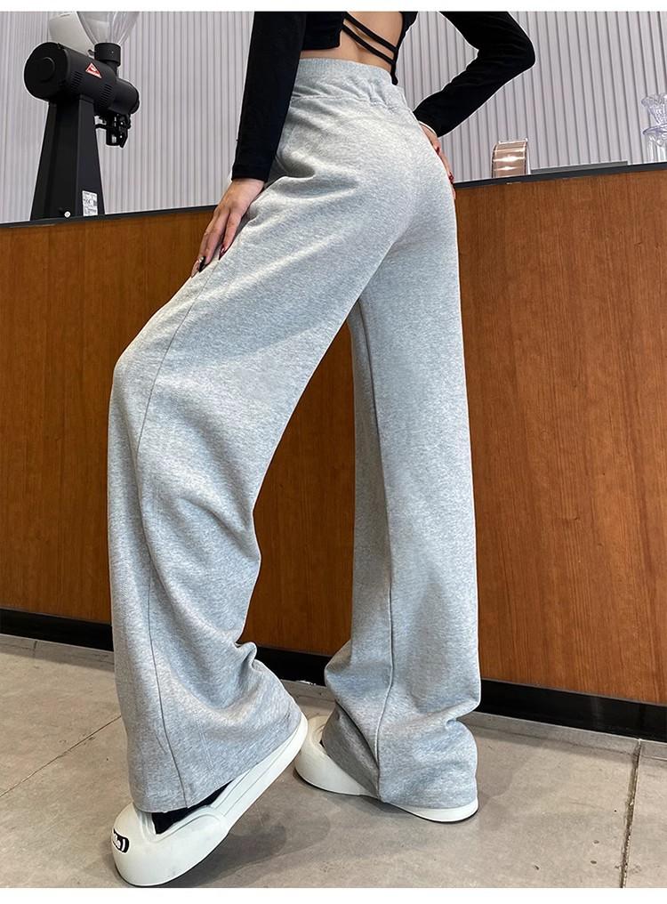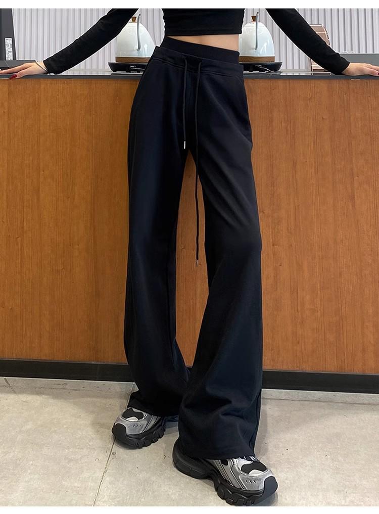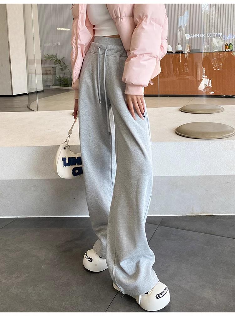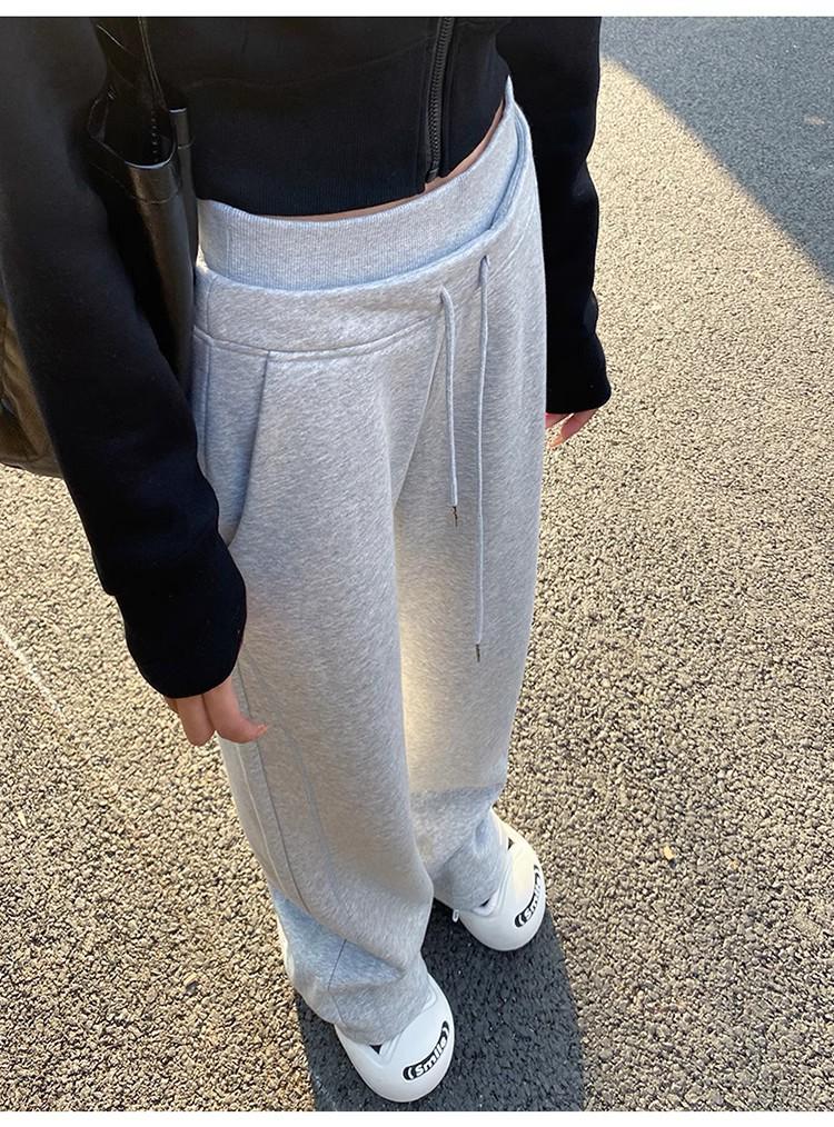 Pantalones Deportivos de Doble Cintura para Mujer 2025 Verano Nuevo Estilo Coreano Cordón Adelgazantes Pierna Recta Pierna Ancha Casual Hasta el Piso Pantalones de Sudor Modernos