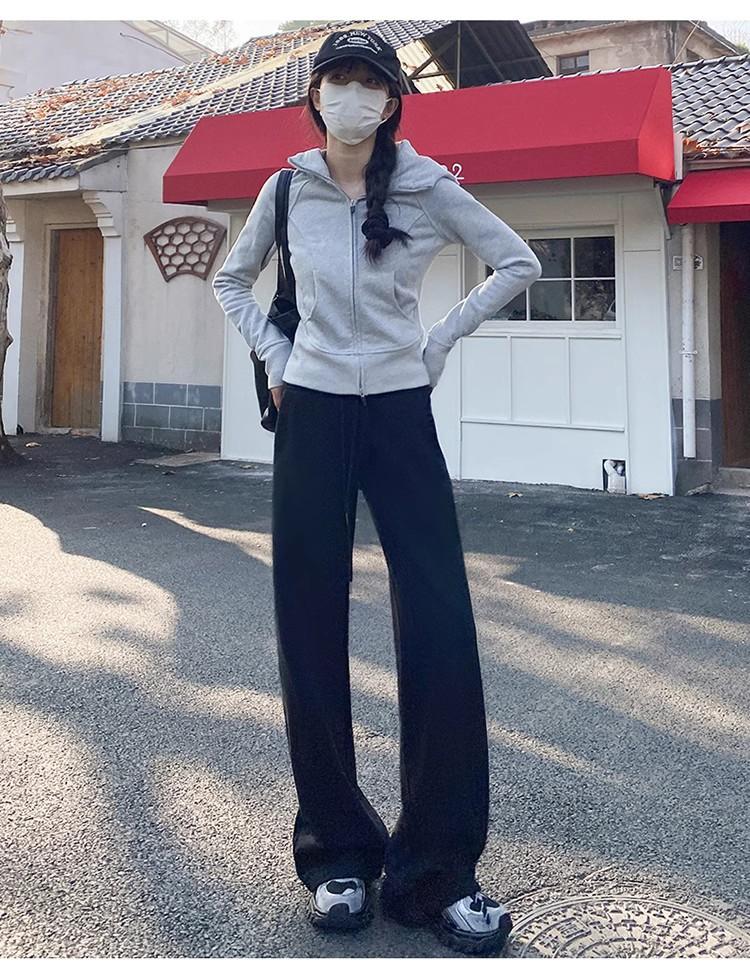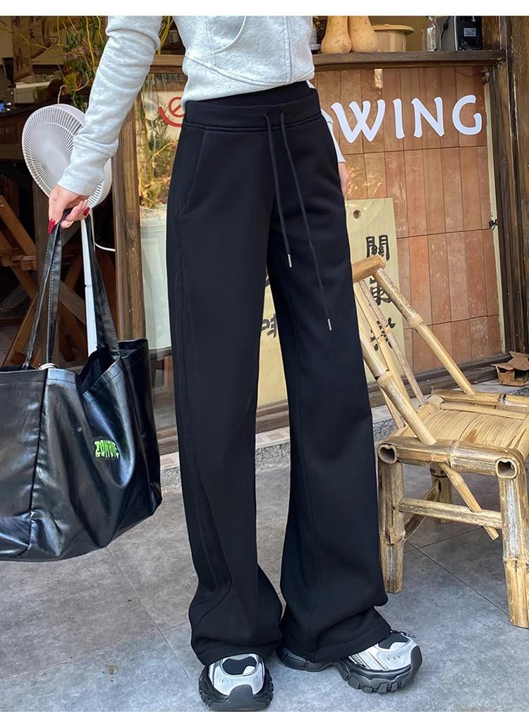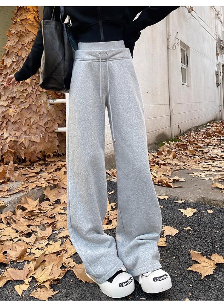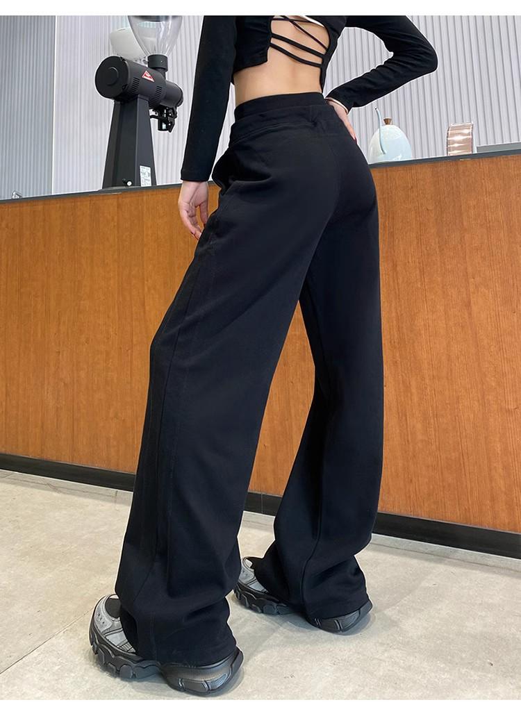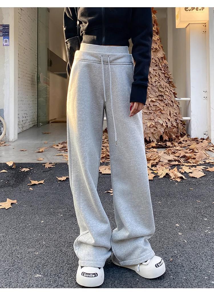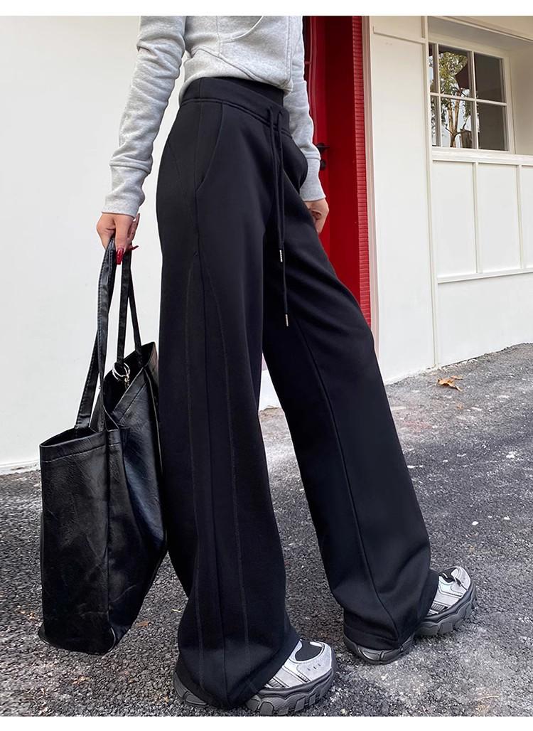 Pantalones Deportivos de Doble Cintura para Mujer 2025 Verano Nuevo Estilo Coreano Cordón Adelgazantes Pierna Recta Pierna Ancha Casual Hasta el Piso Pantalones de Sudor Modernos