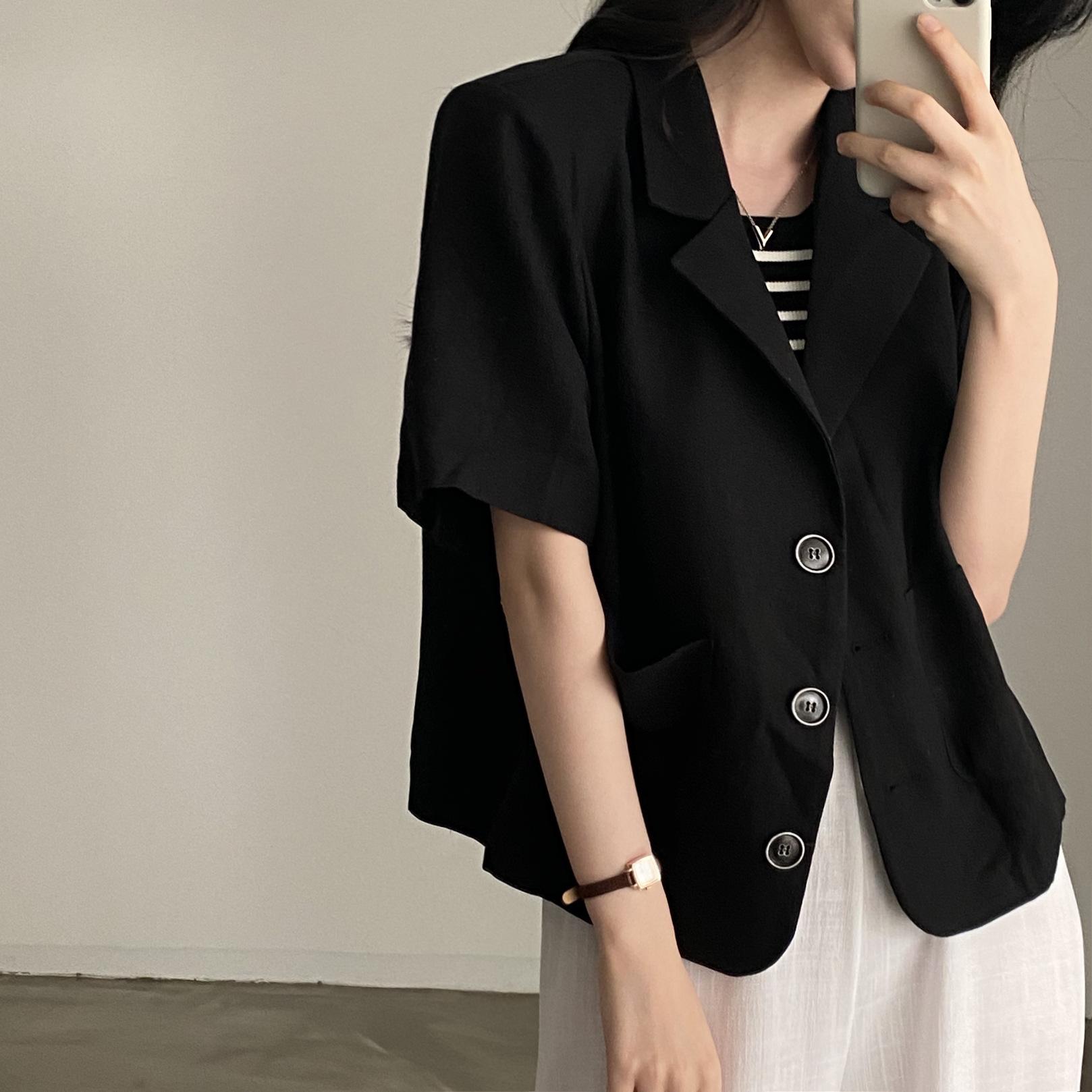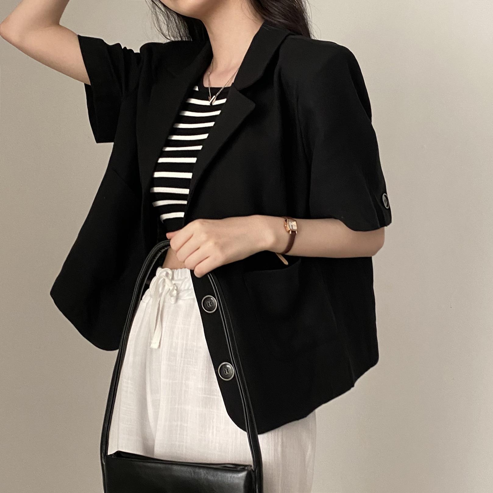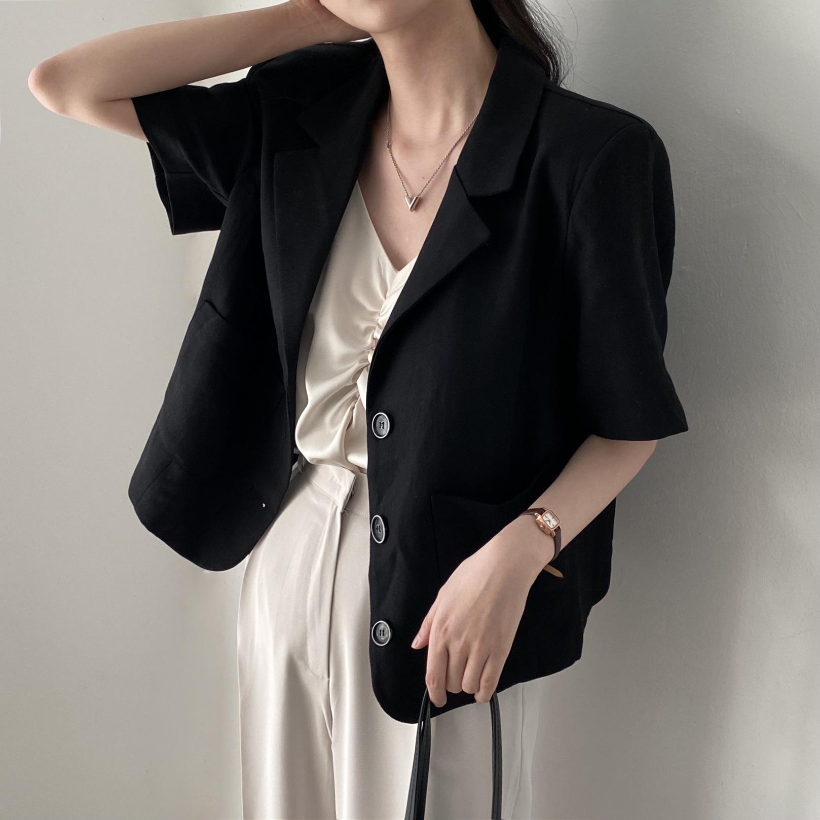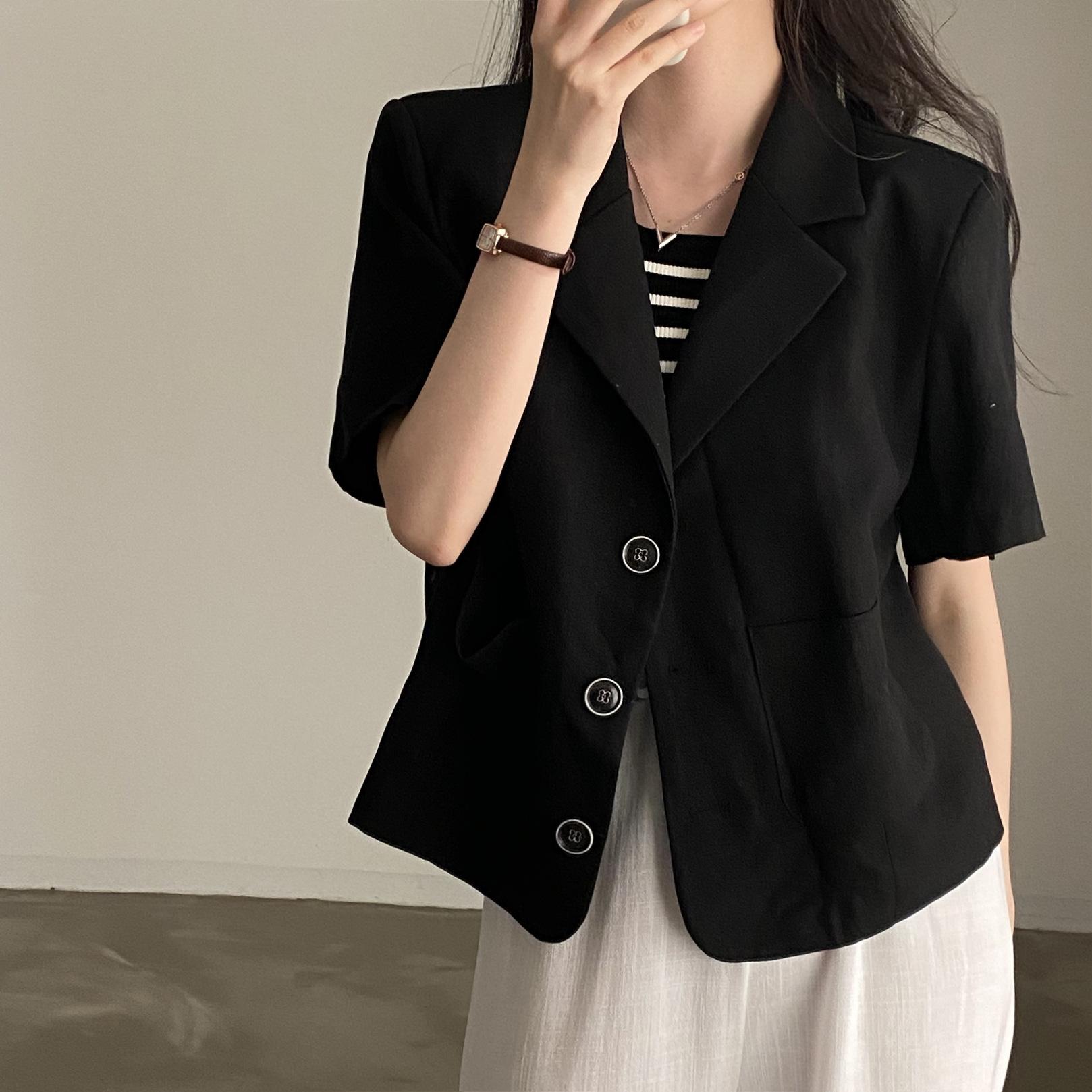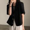 Chaqueta de traje de manga corta de tres botones, sencilla y moderna, de estilo coreano para mujer