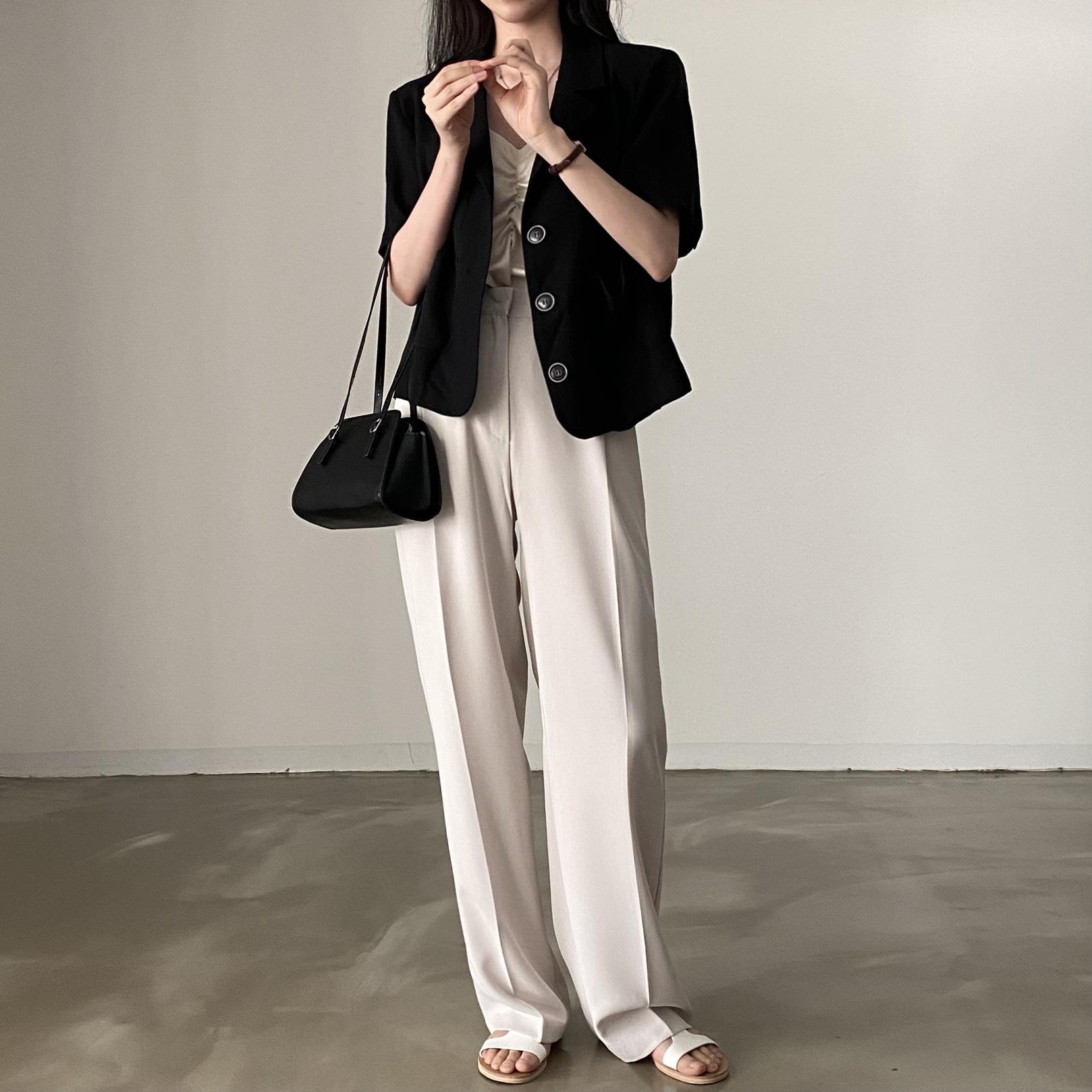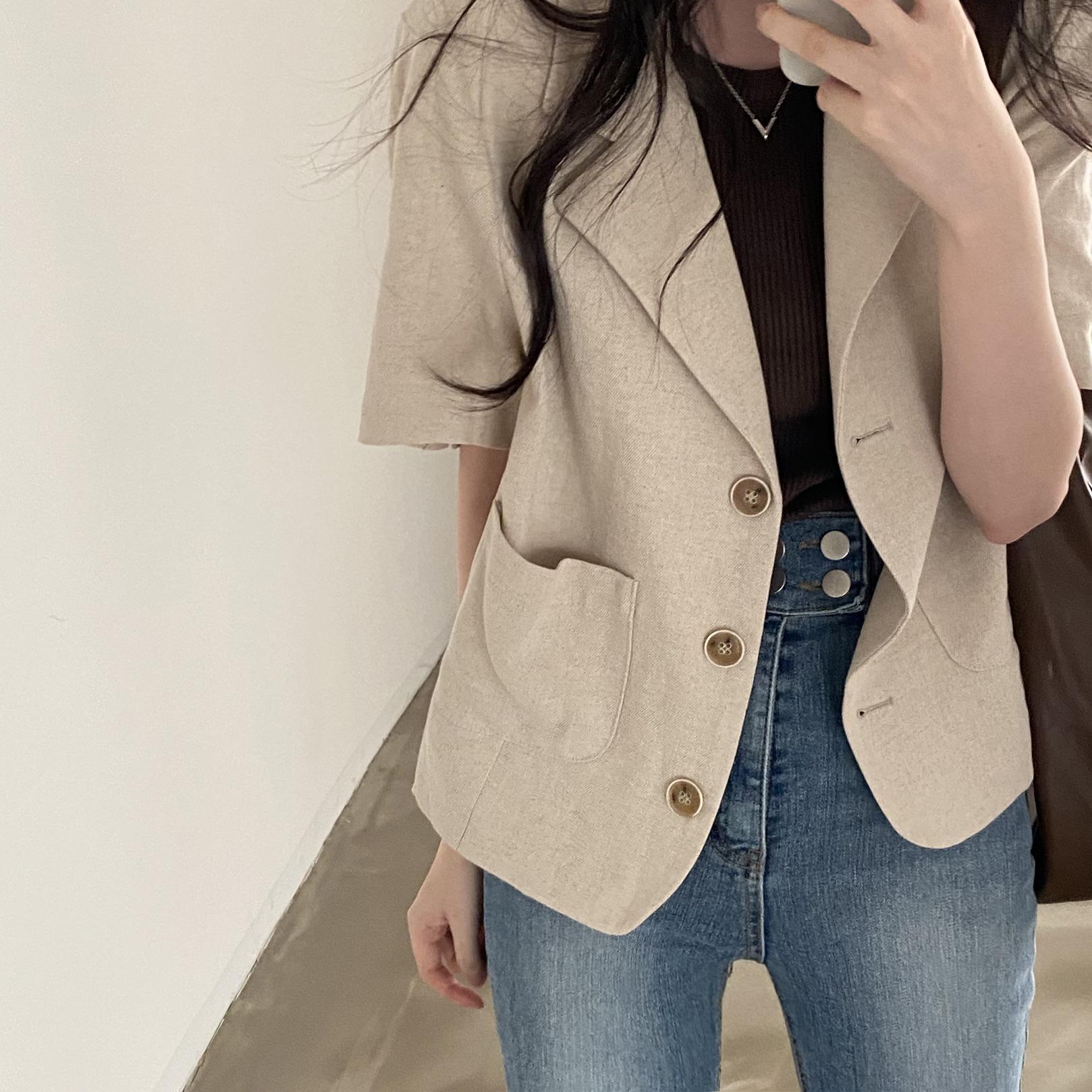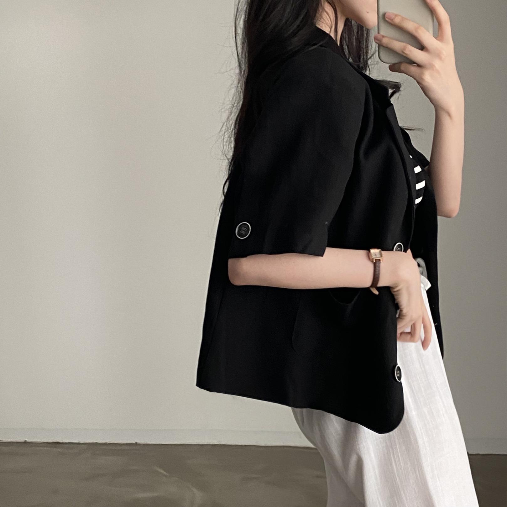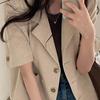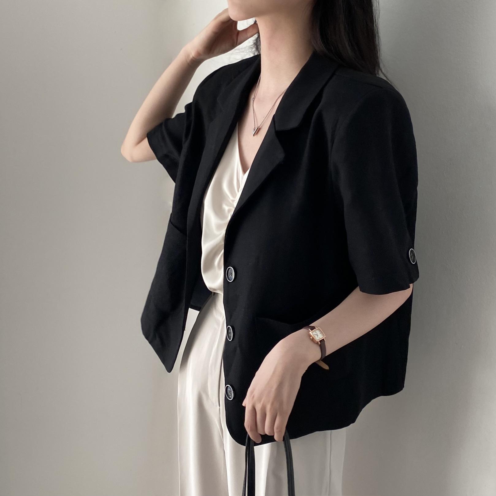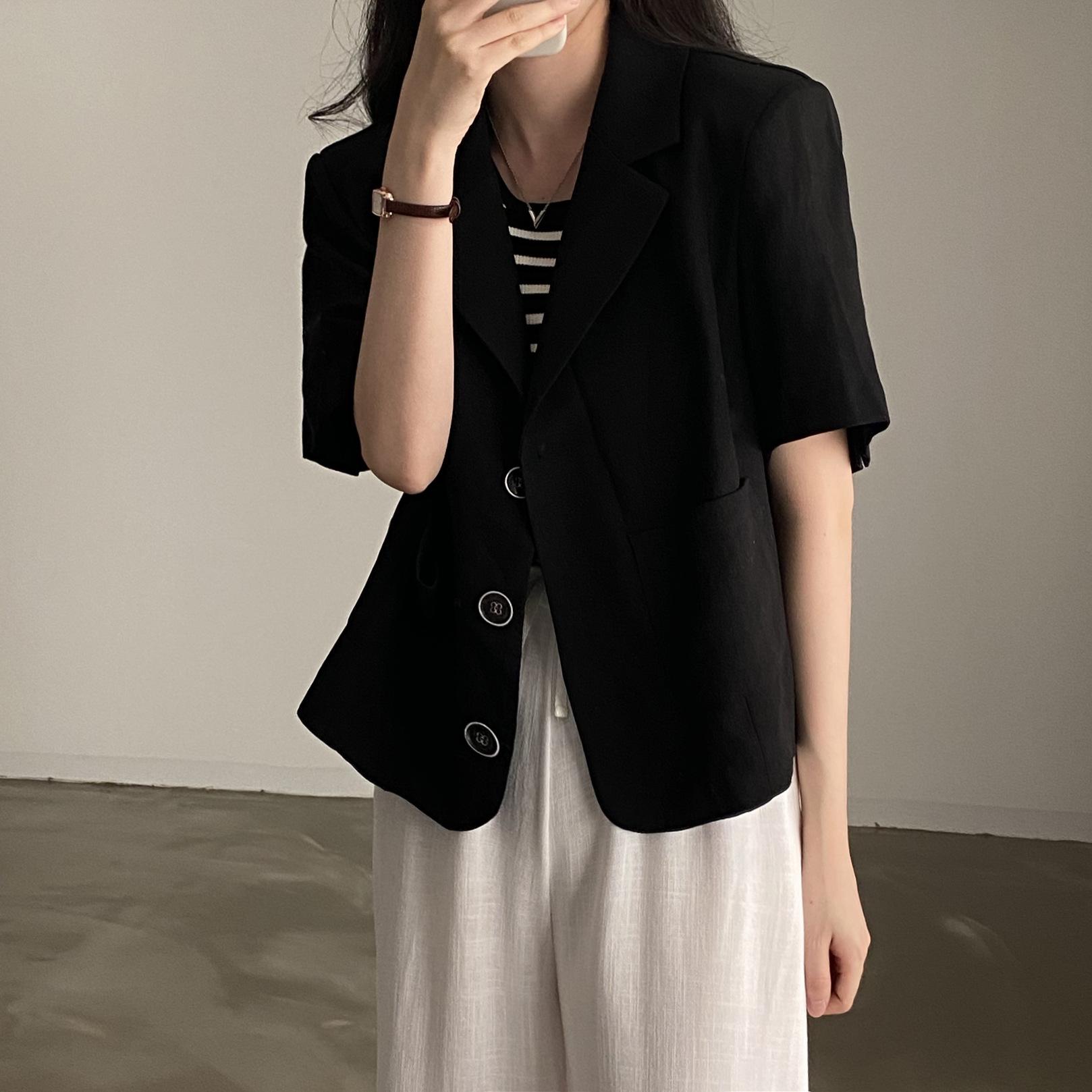 Chaqueta de traje de manga corta de tres botones, sencilla y moderna, de estilo coreano para mujer