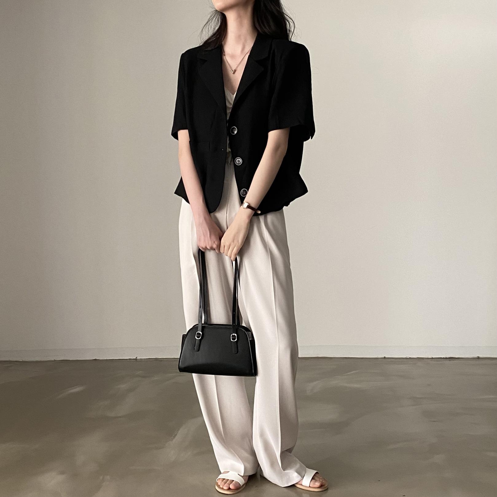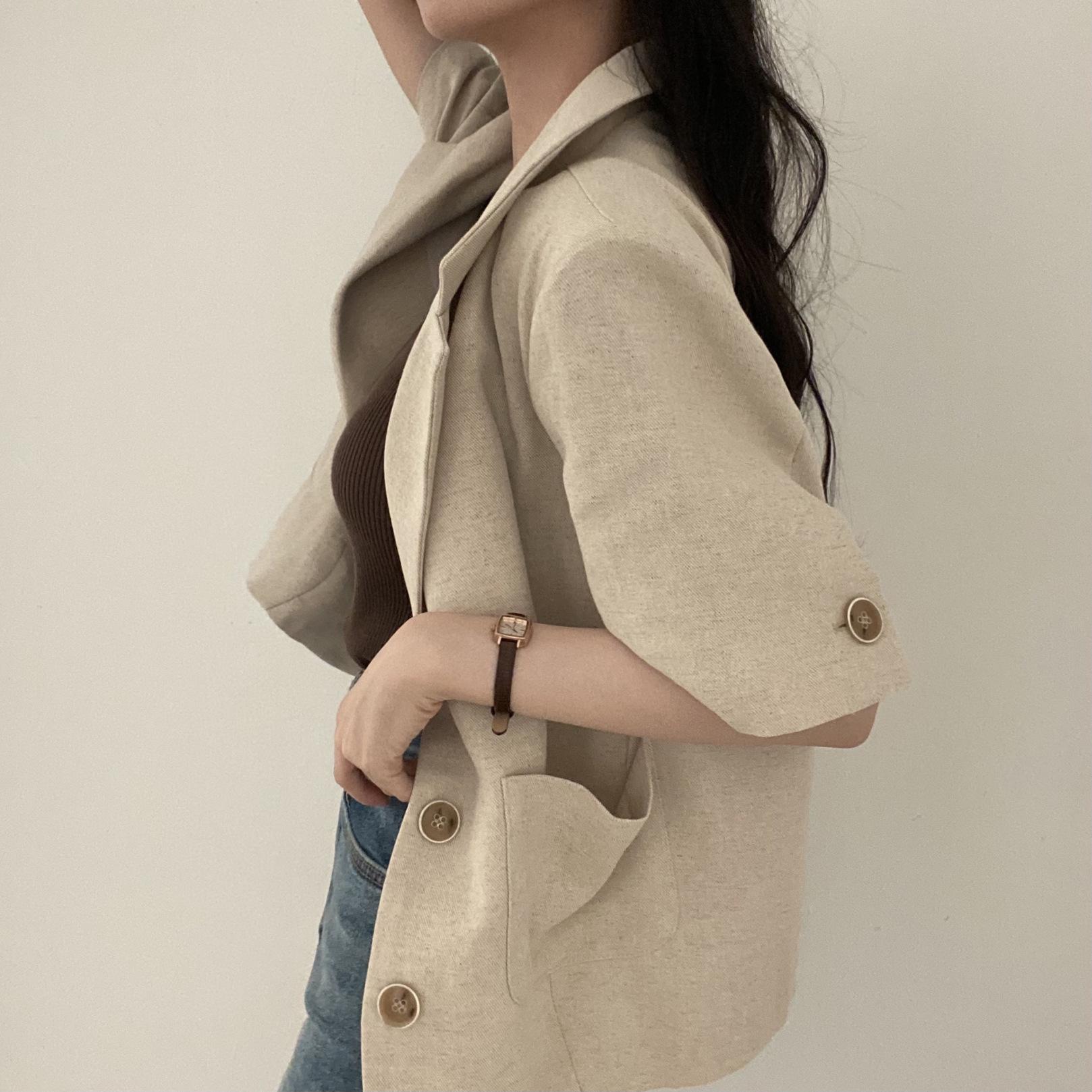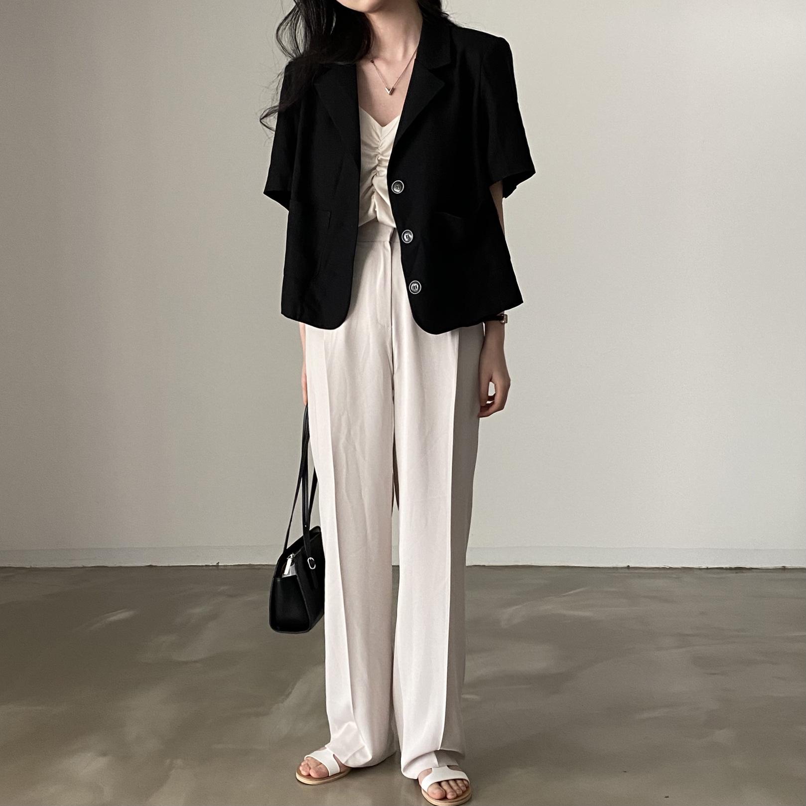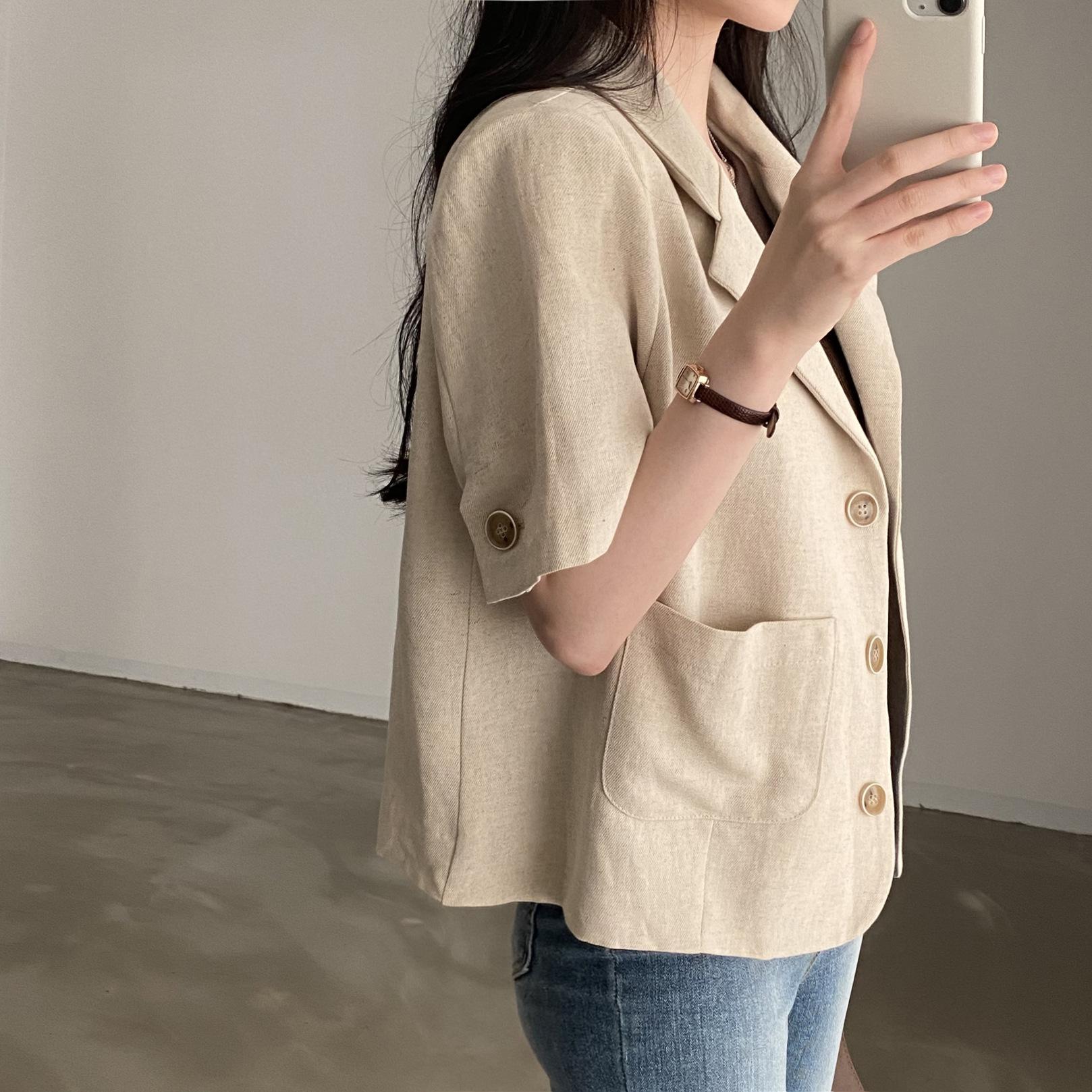 Chaqueta de traje de manga corta de tres botones, sencilla y moderna, de estilo coreano para mujer