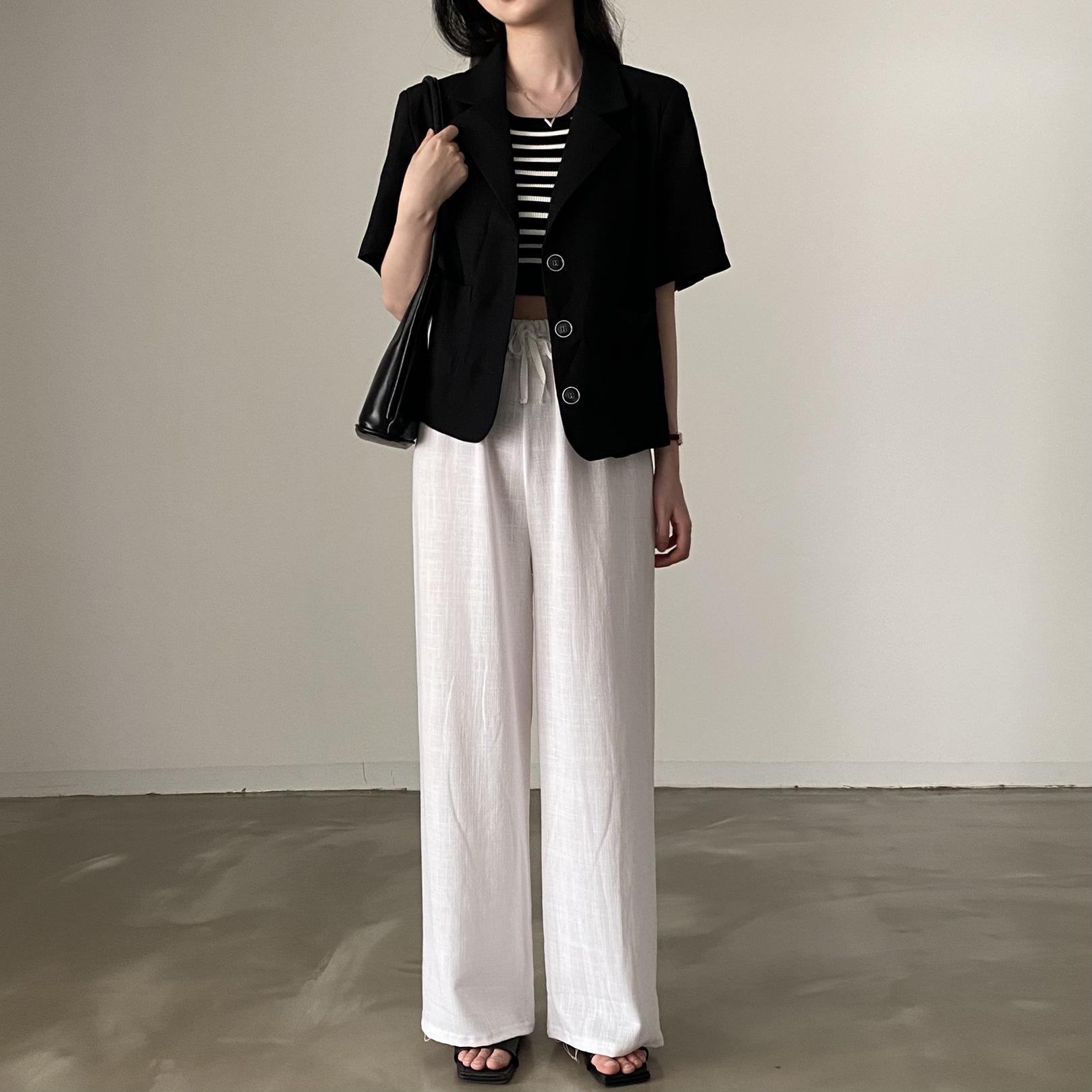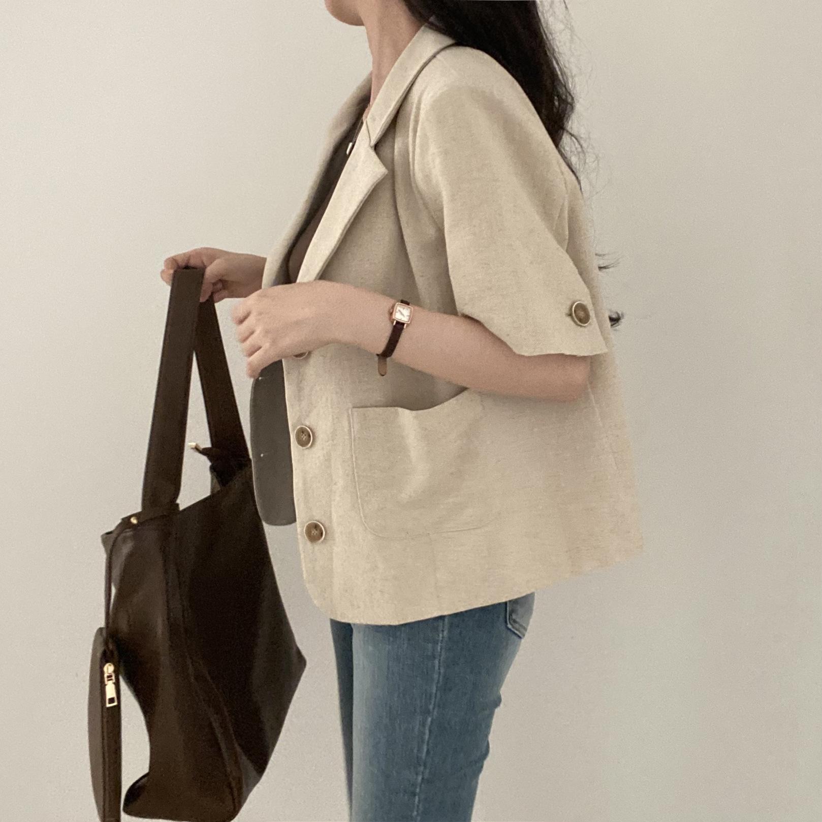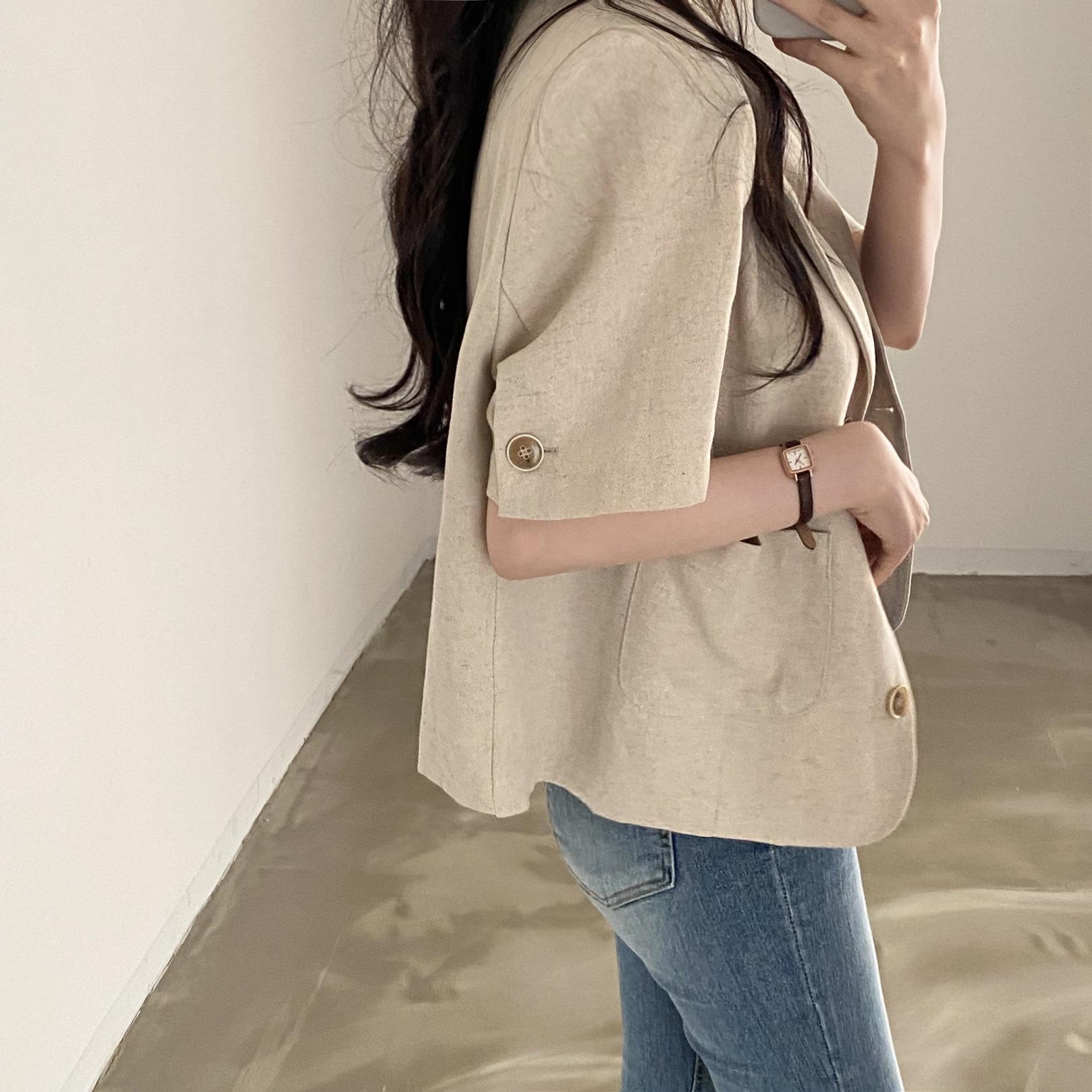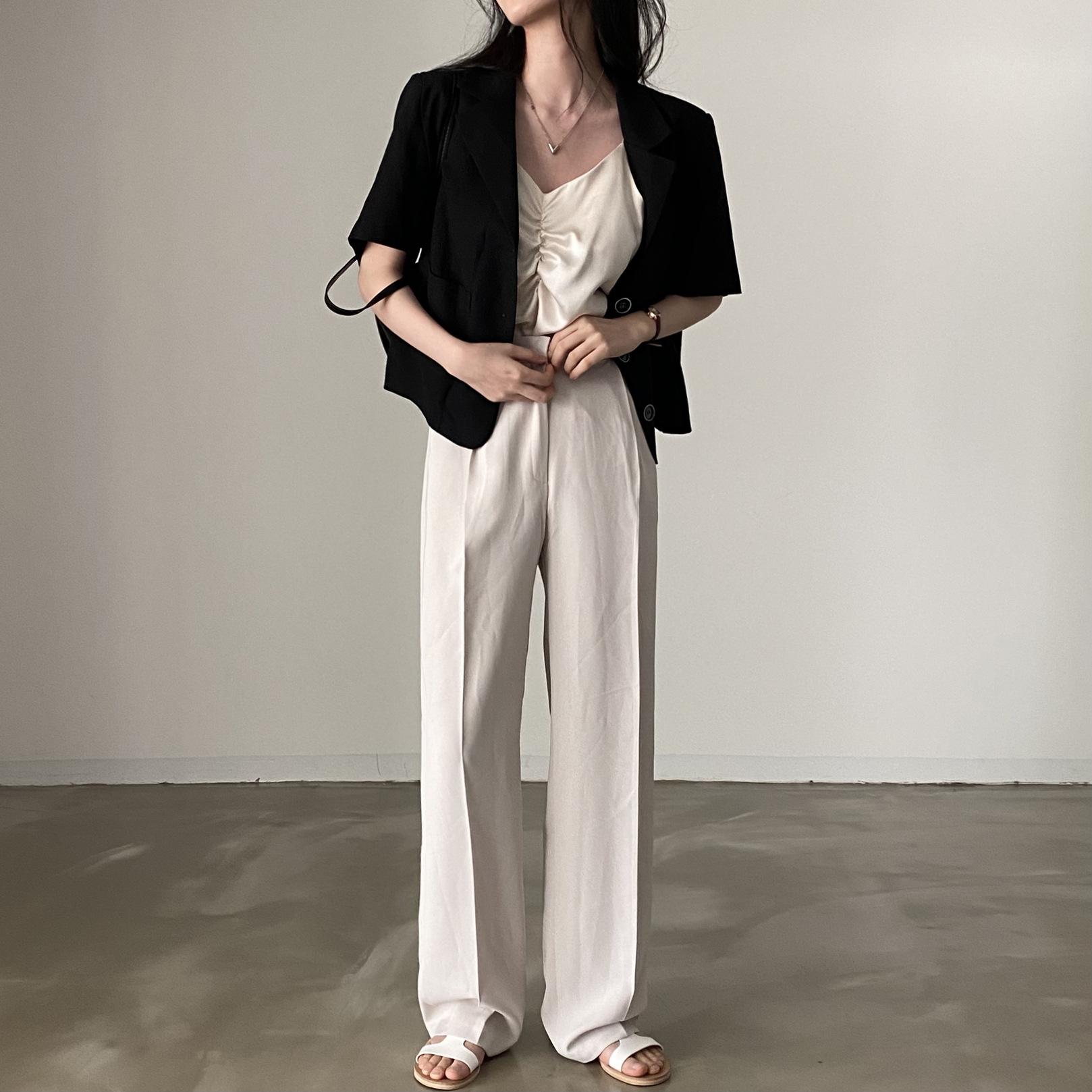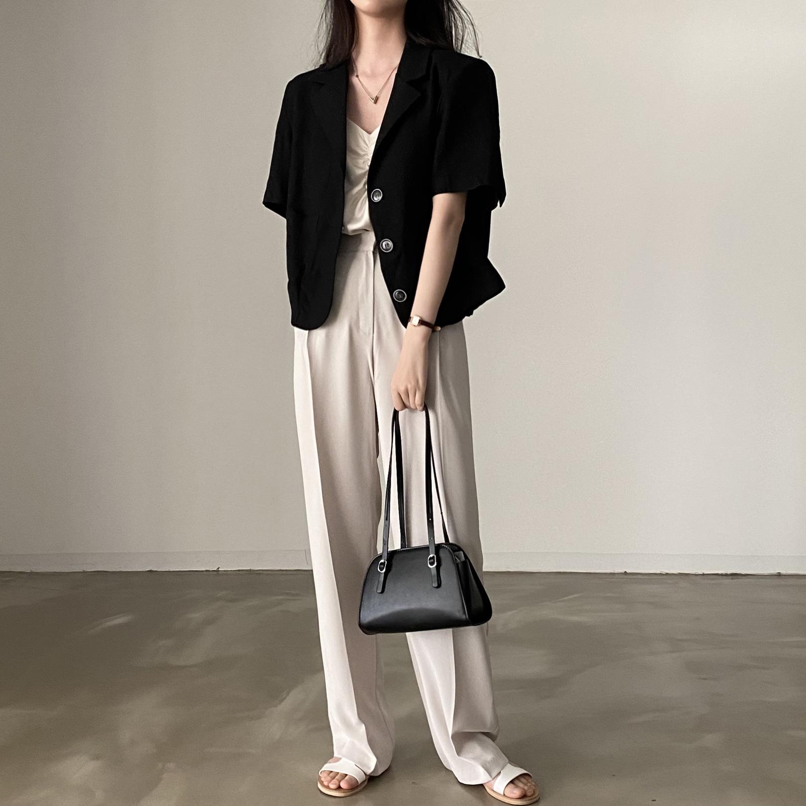 Chaqueta de traje de manga corta de tres botones, sencilla y moderna, de estilo coreano para mujer