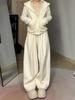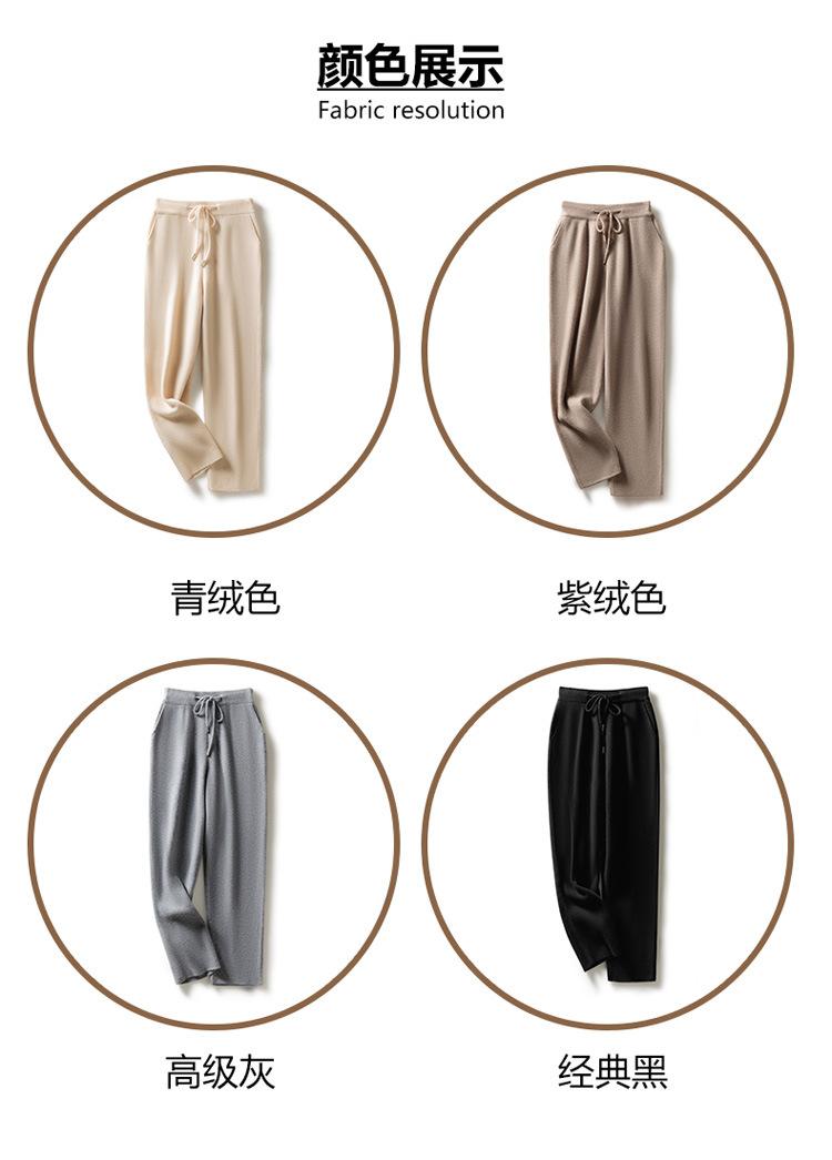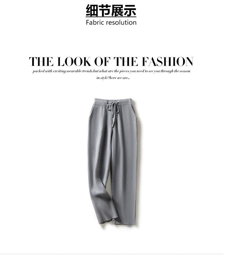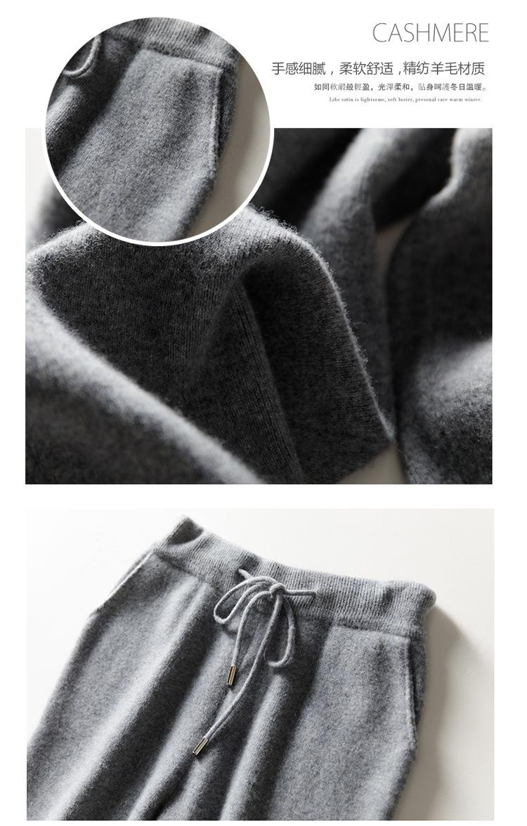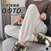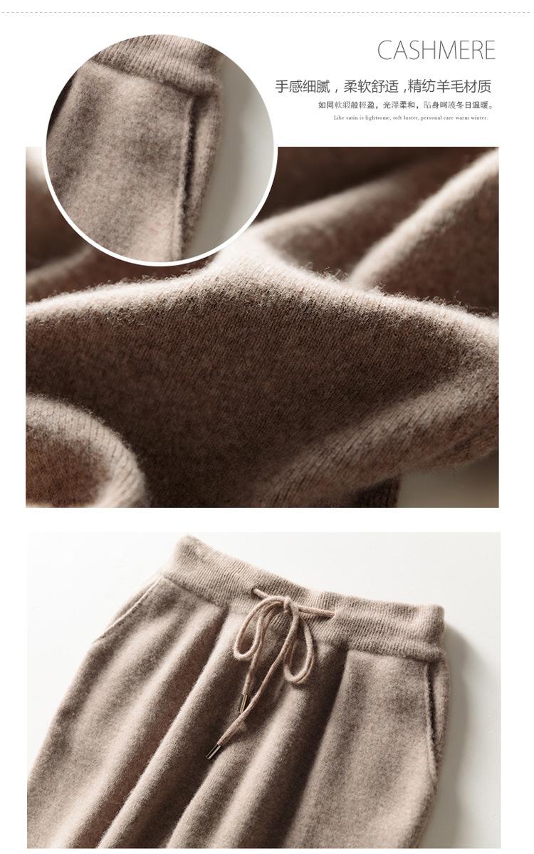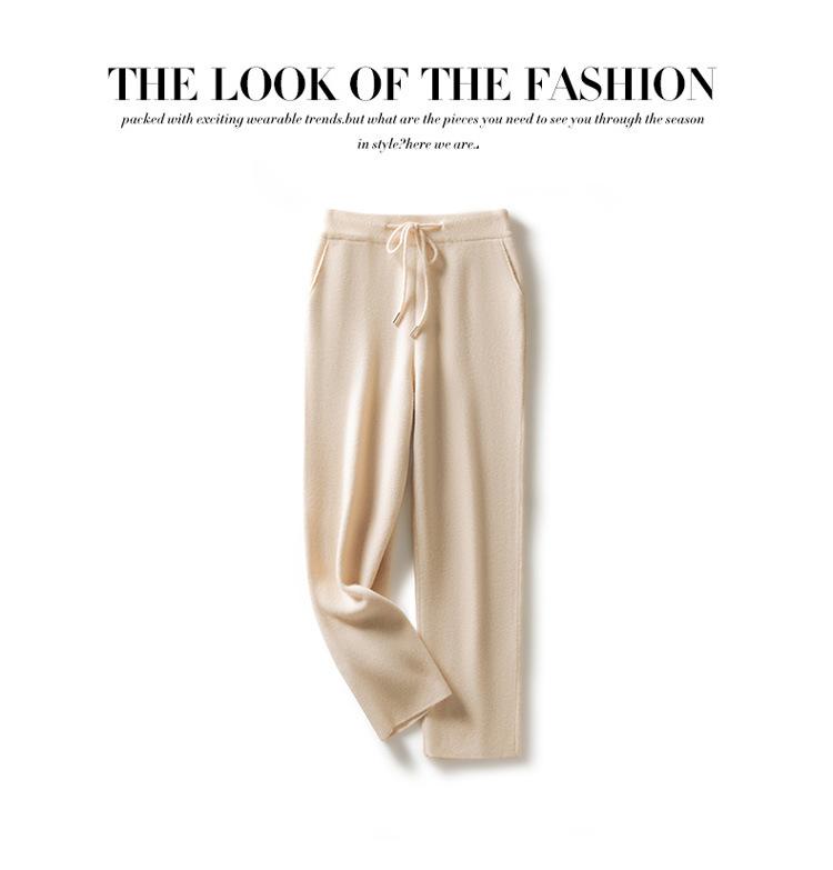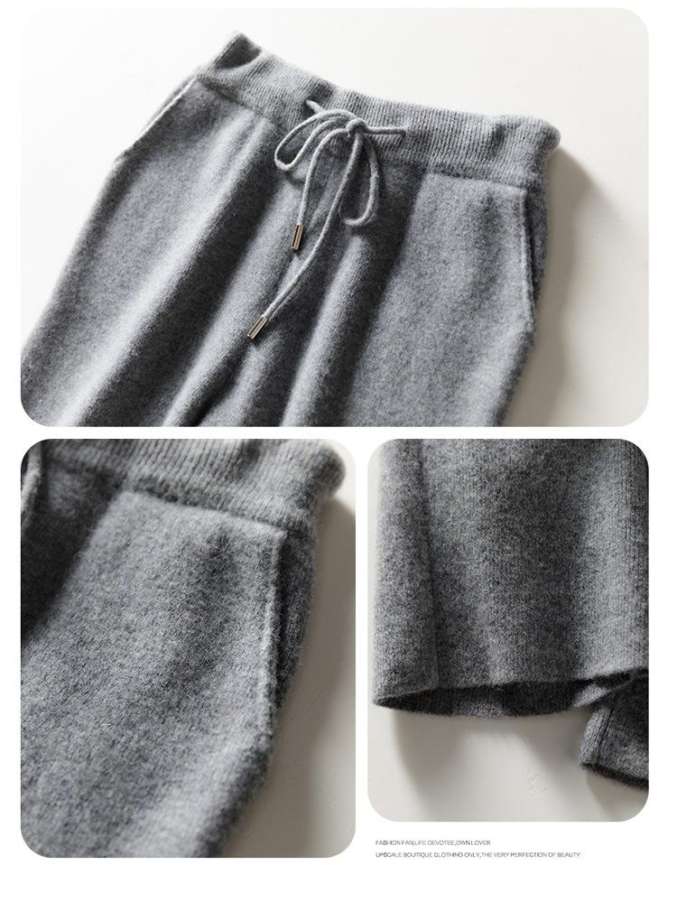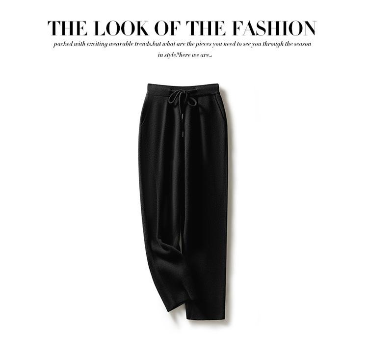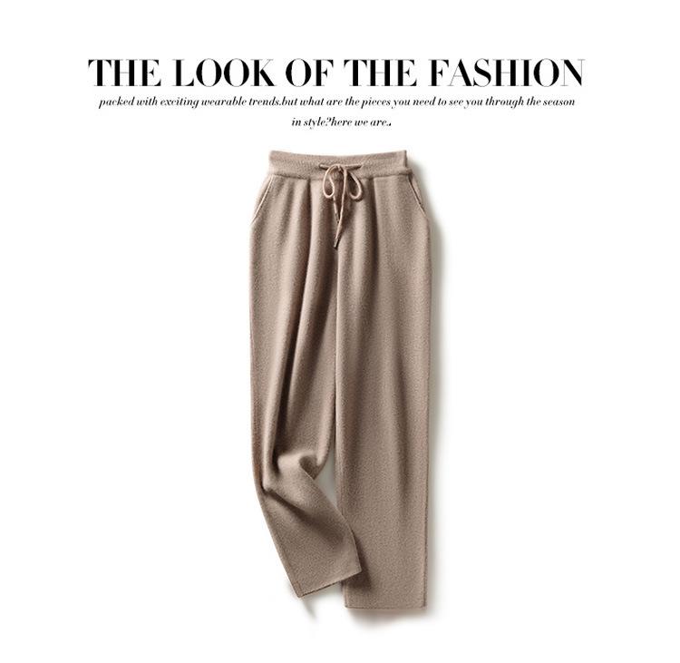 Pantalones de Punto de Lana Peinada para Mujer con Bolsillo Casual Deportivo Moda Combinable Nuevo Cintura Alta Sin Piel Pantalones
