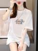 Camiseta de algodón puro de manga corta y largo medio para mujer, estilo coreano, holgada, cuello redondo, estampada, de verano 2024