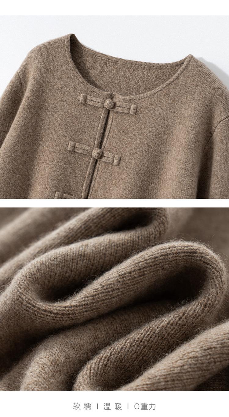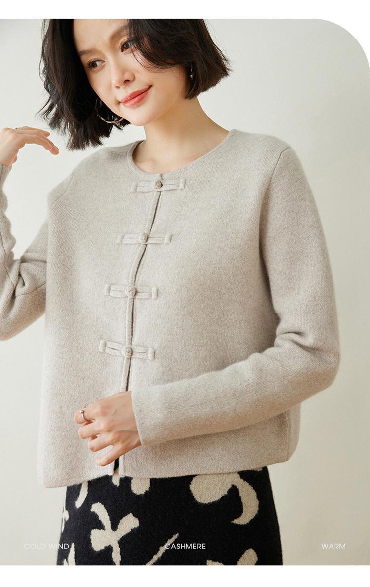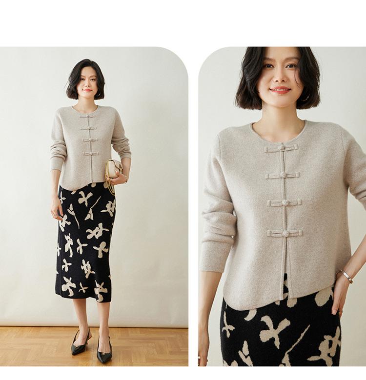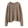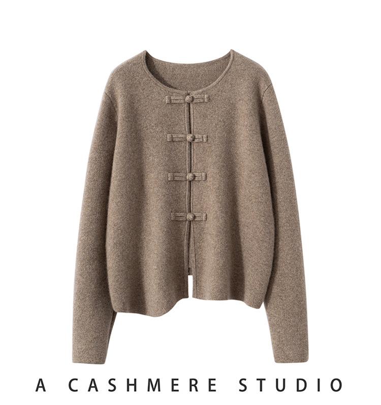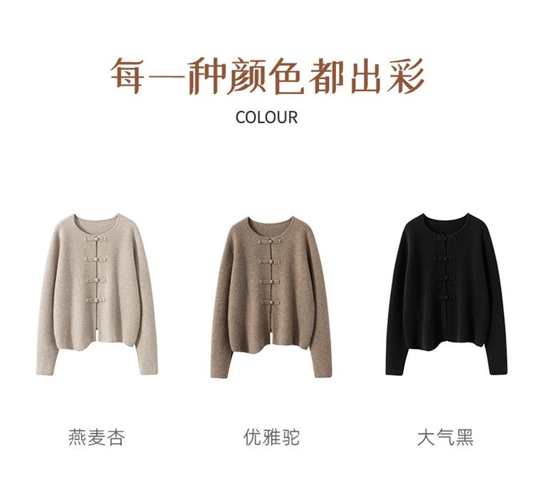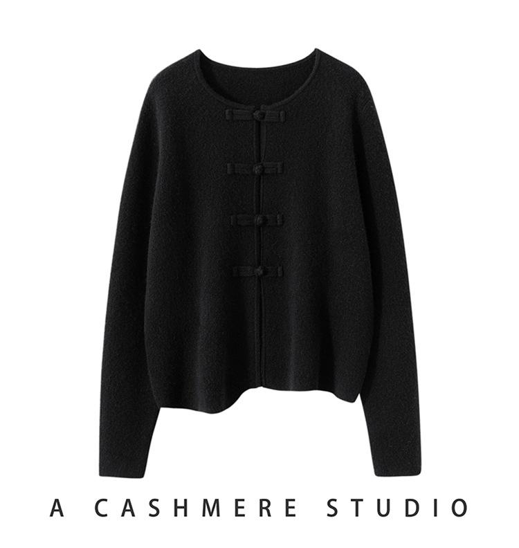 Suéter de cachemira de otoño e invierno 2024, nuevo cárdigan de manga larga para mujer, nuevo suéter con hebilla china, informal y versátil.