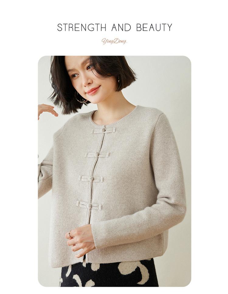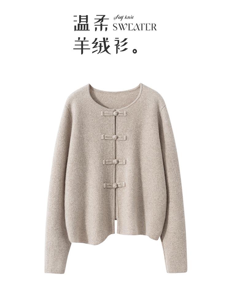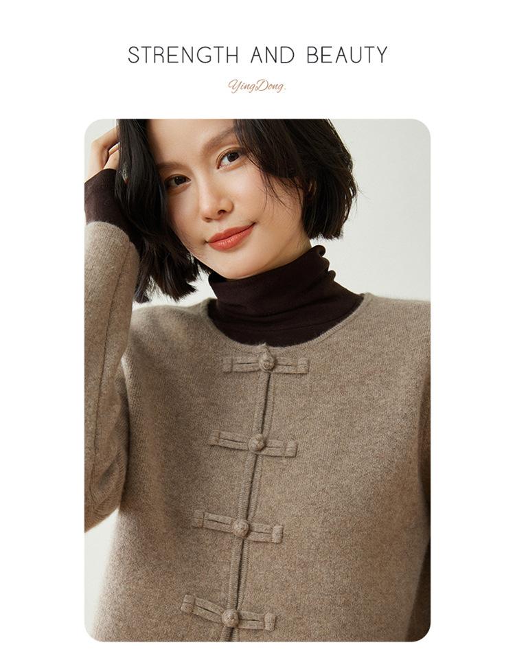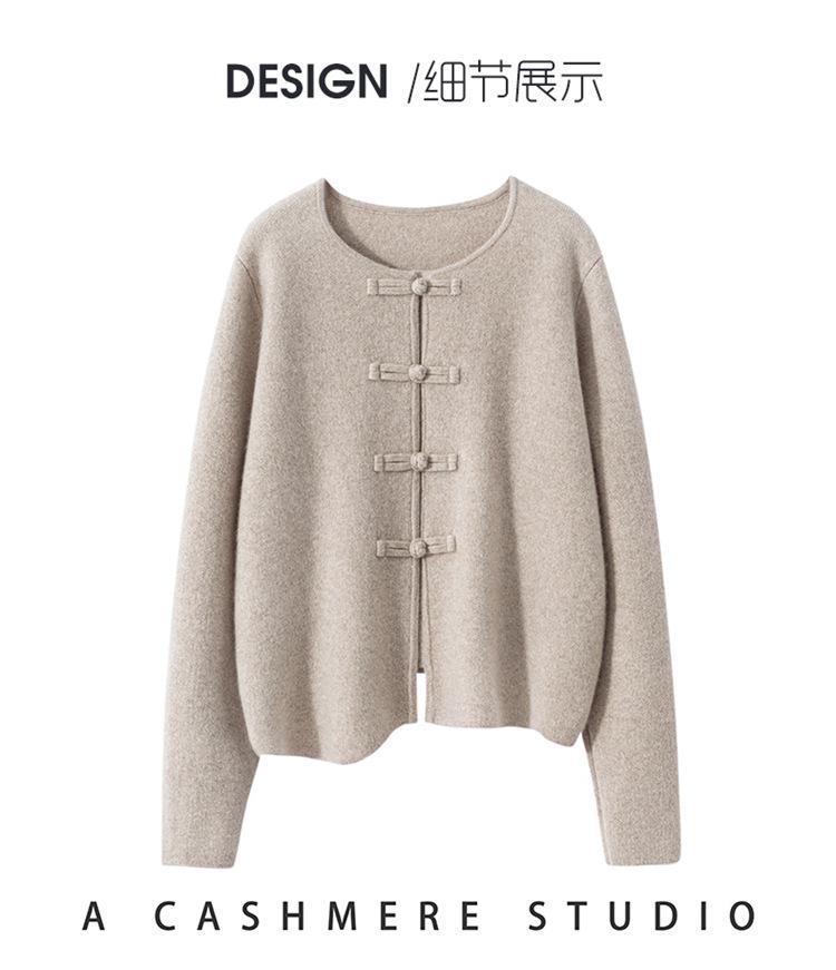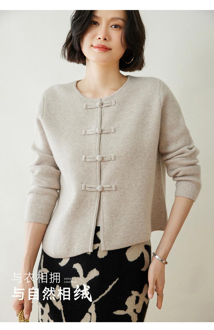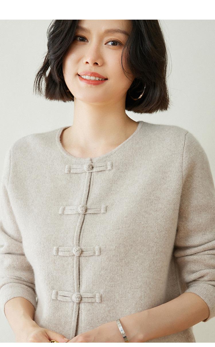 Suéter de cachemira de otoño e invierno 2024, nuevo cárdigan de manga larga para mujer, nuevo suéter con hebilla china, informal y versátil.