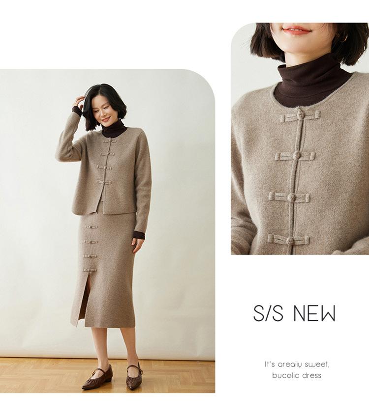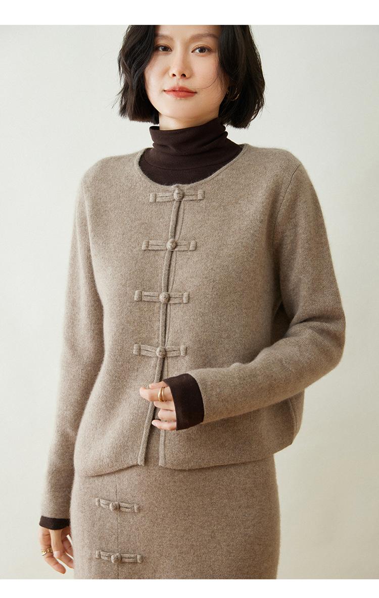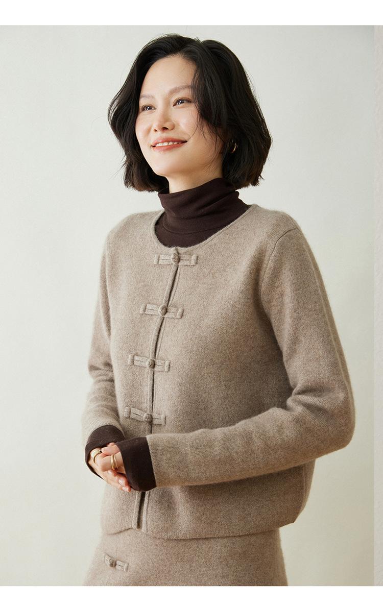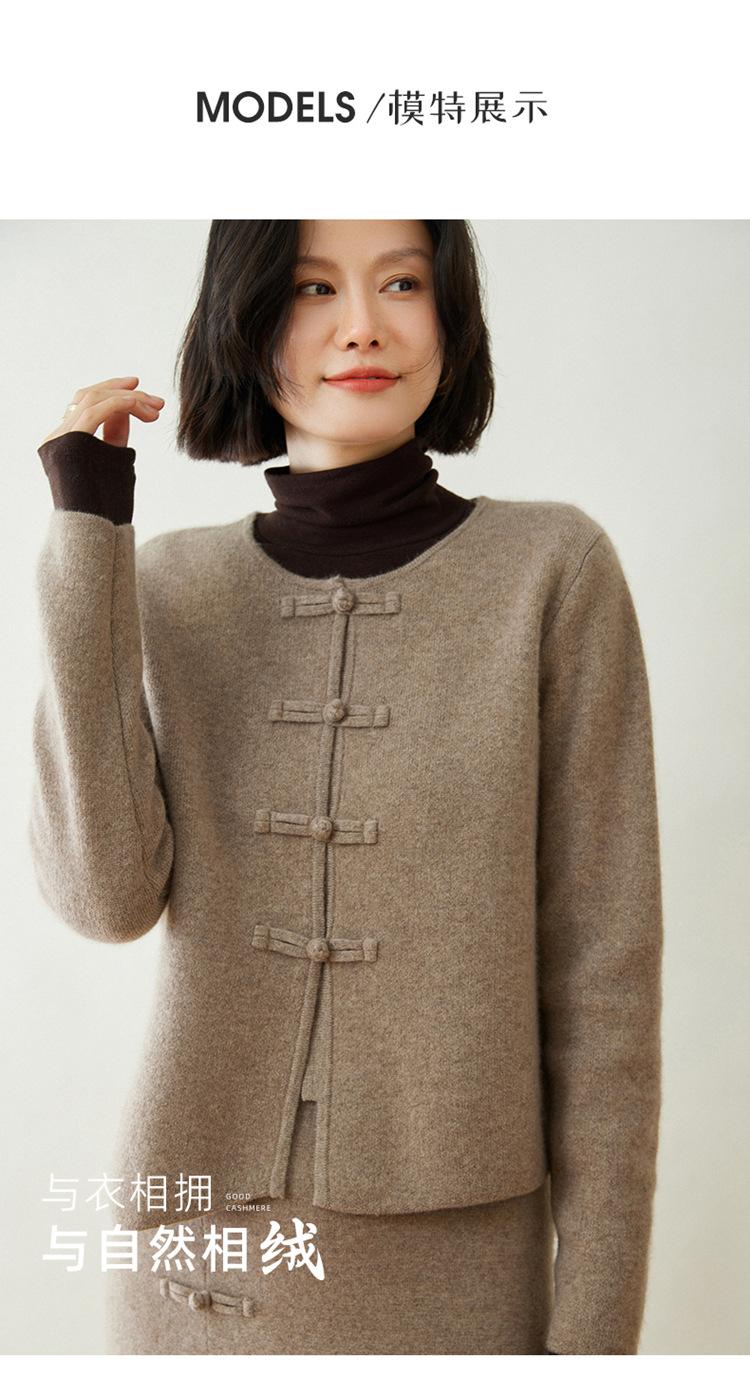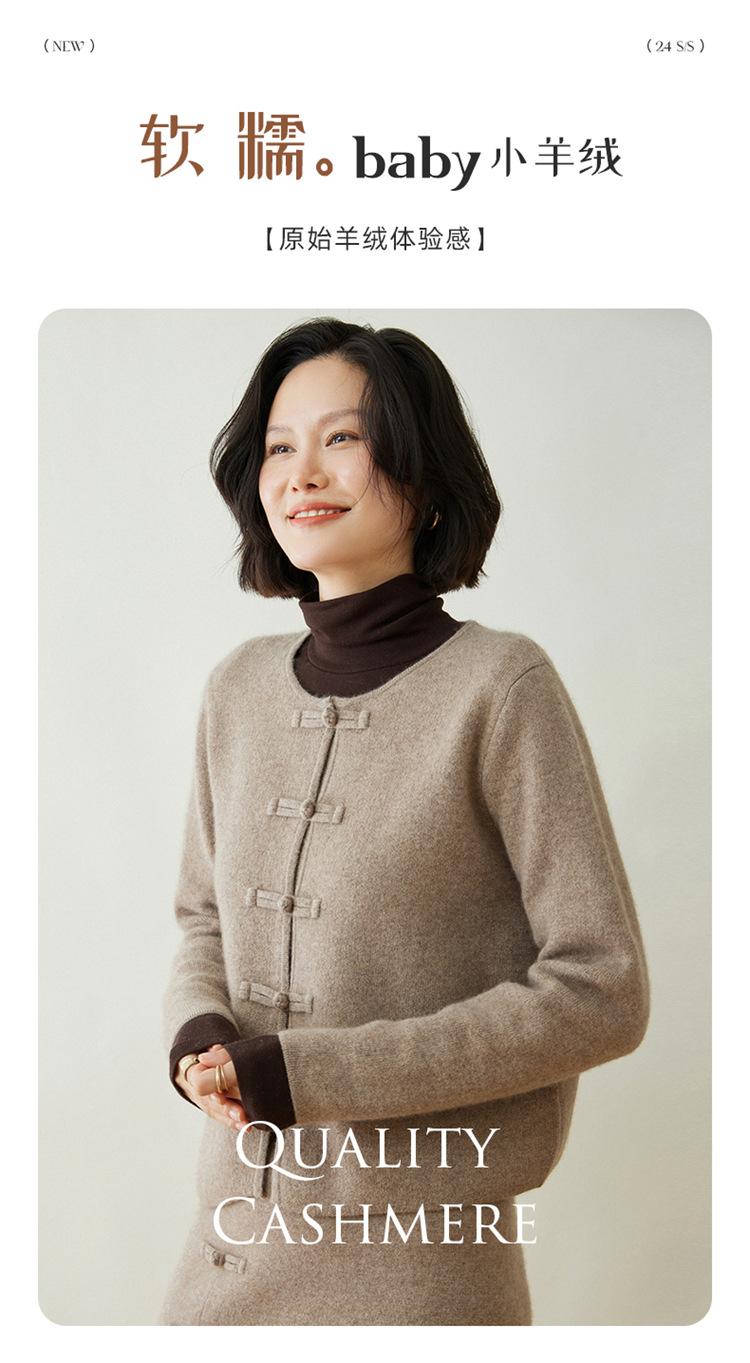 Suéter de cachemira de otoño e invierno 2024, nuevo cárdigan de manga larga para mujer, nuevo suéter con hebilla china, informal y versátil.