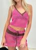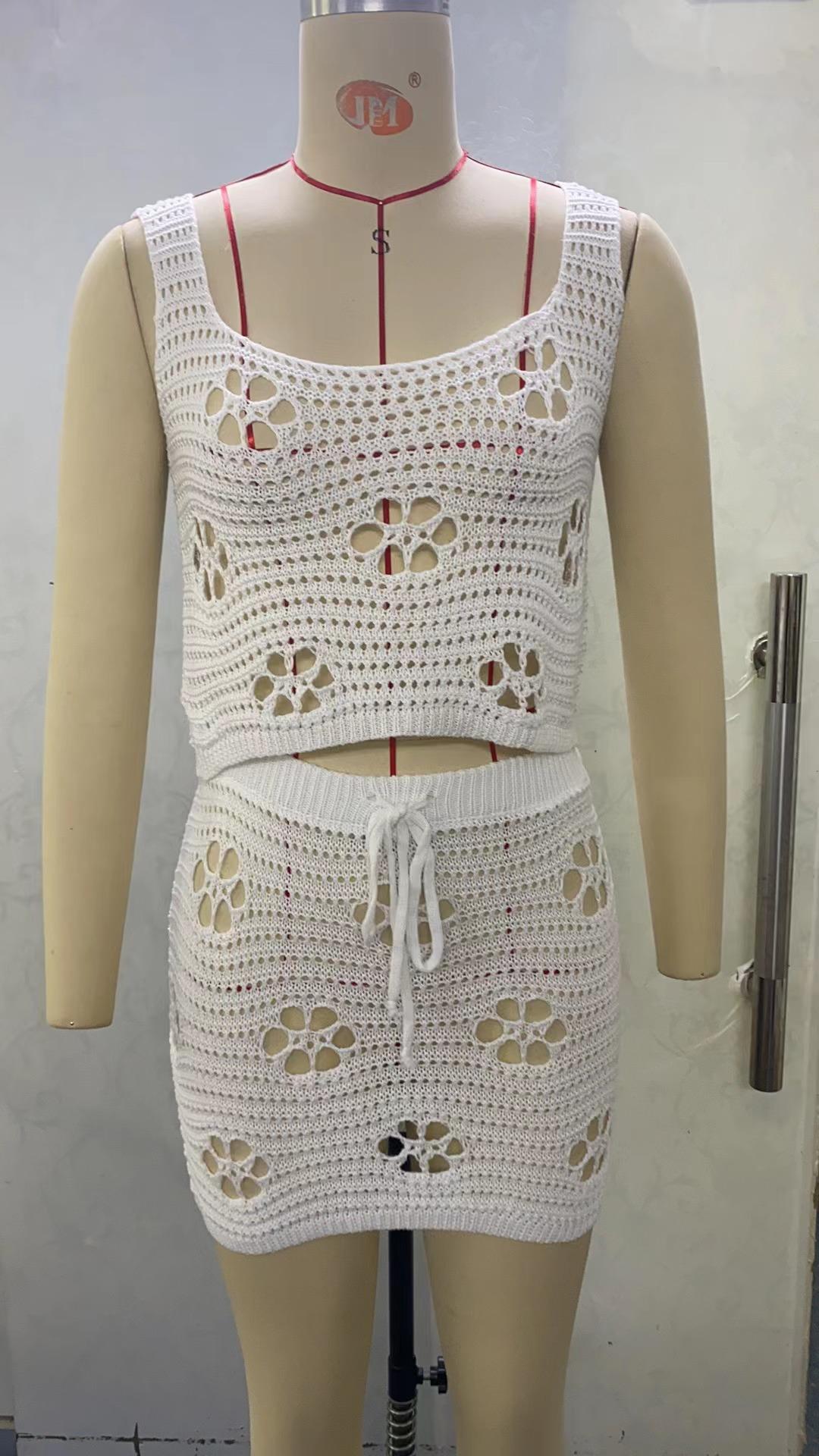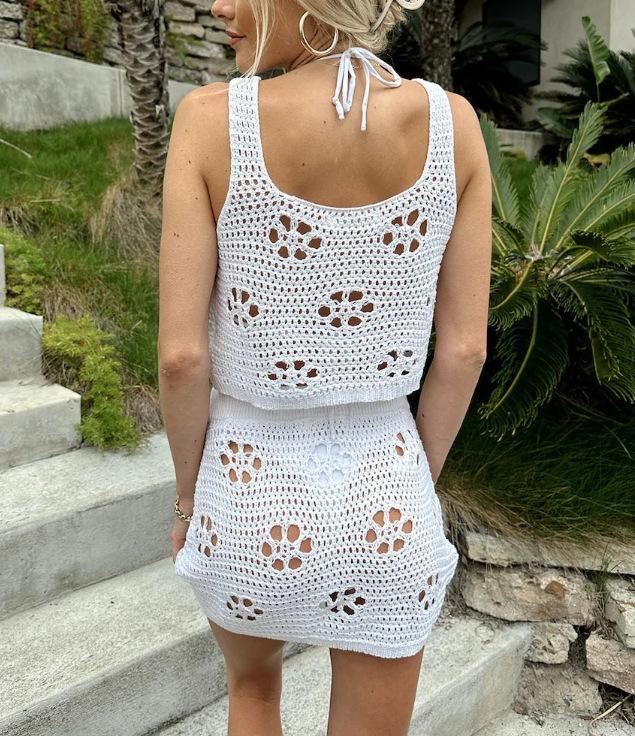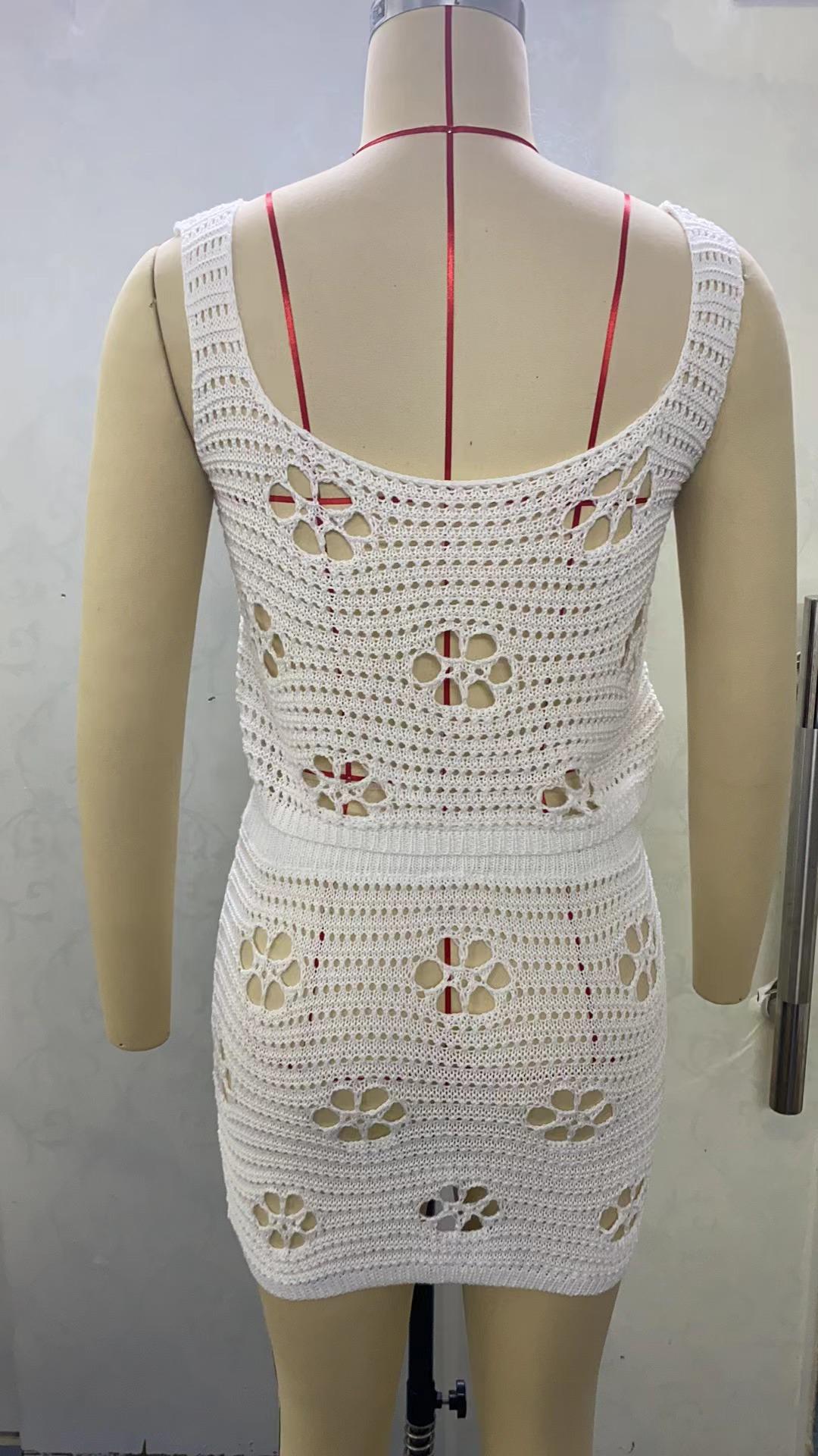 Chaleco sin mangas de verano para mujer de AliExpress, falda sexy con estampado floral y abertura en la cadera, traje de punto de dos piezas