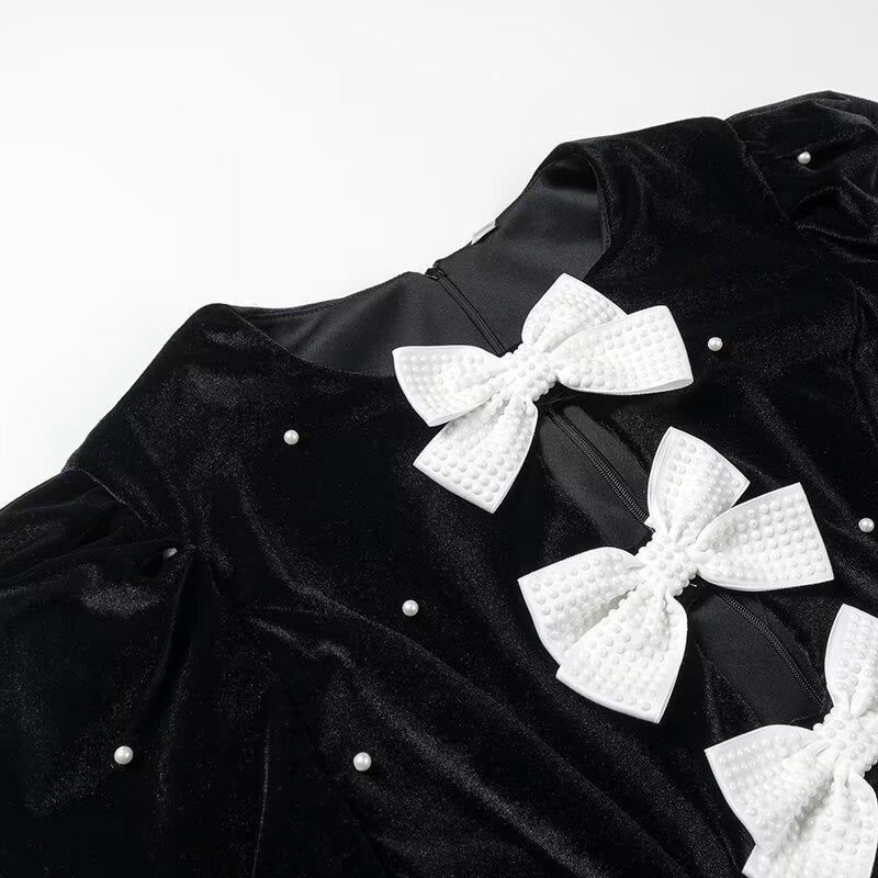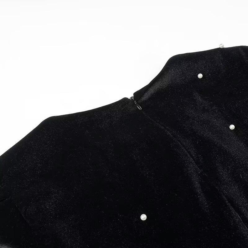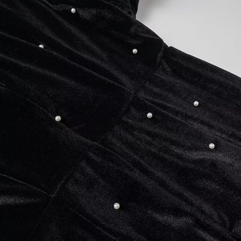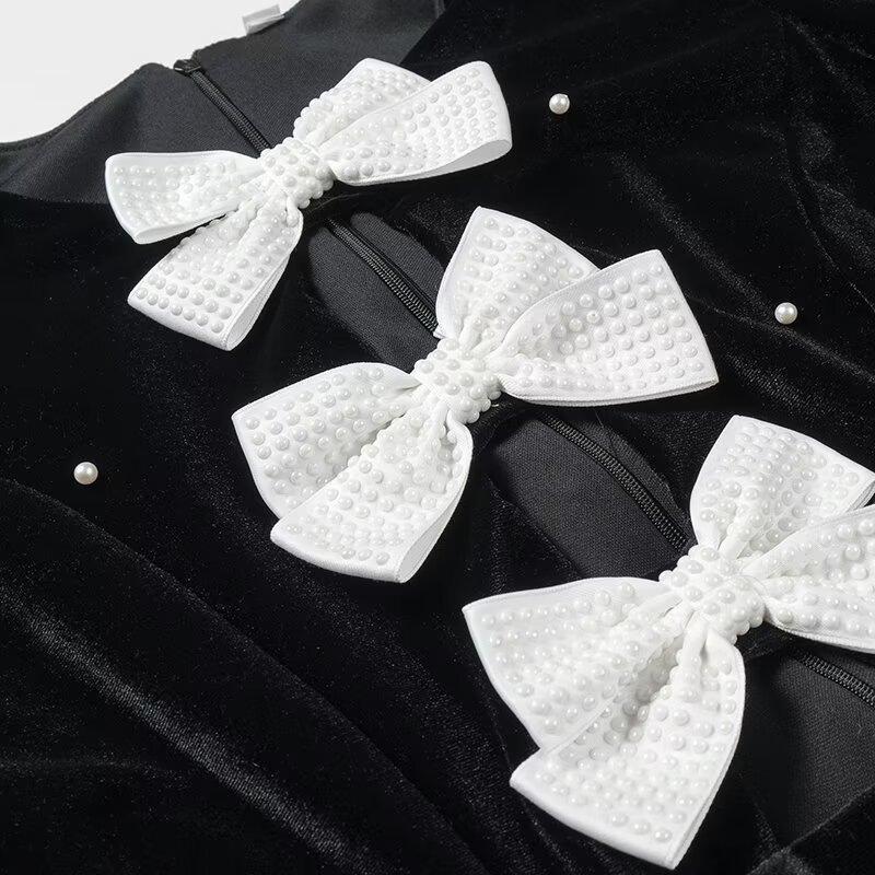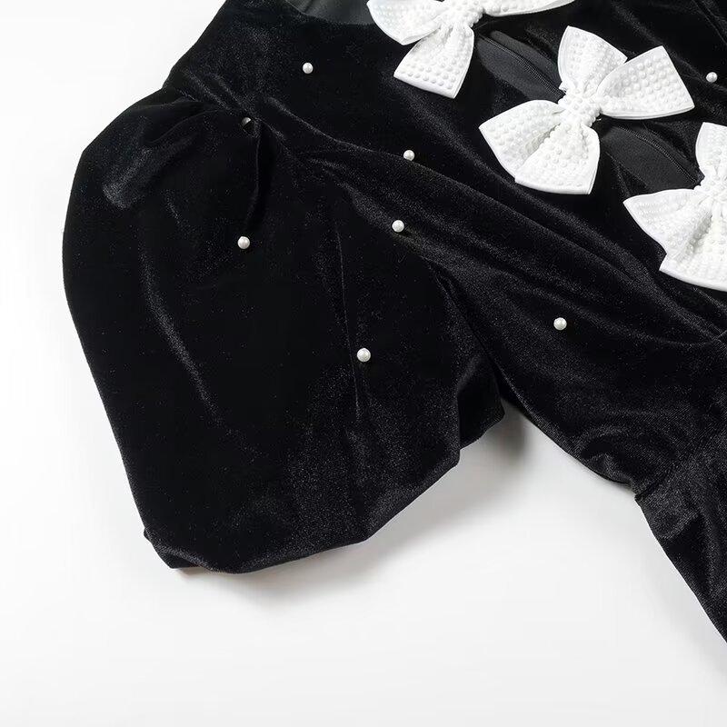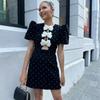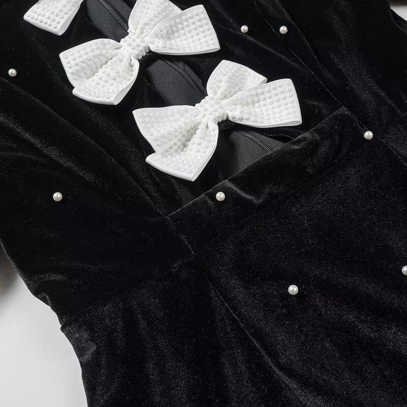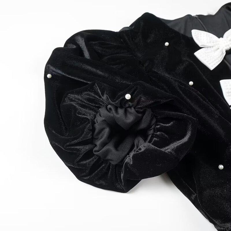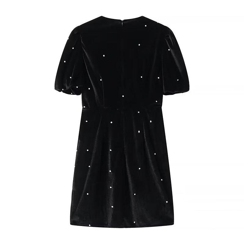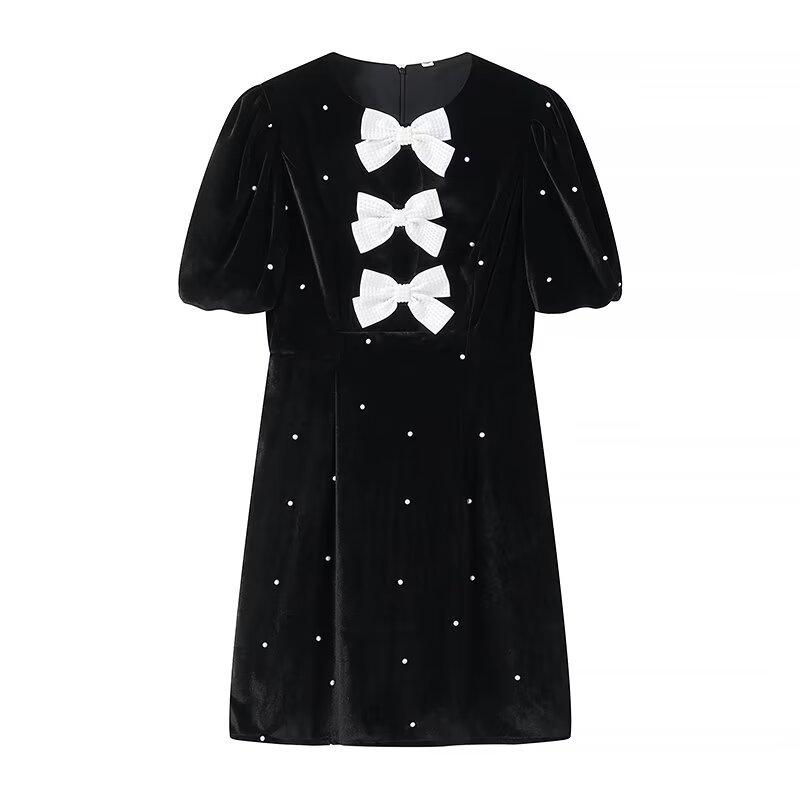 Vestido de terciopelo con mangas abullonadas y lazo de diamantes para mujer, verano 2024, comercio transfronterizo de Amazon, Europa y América
