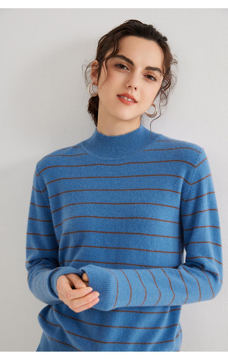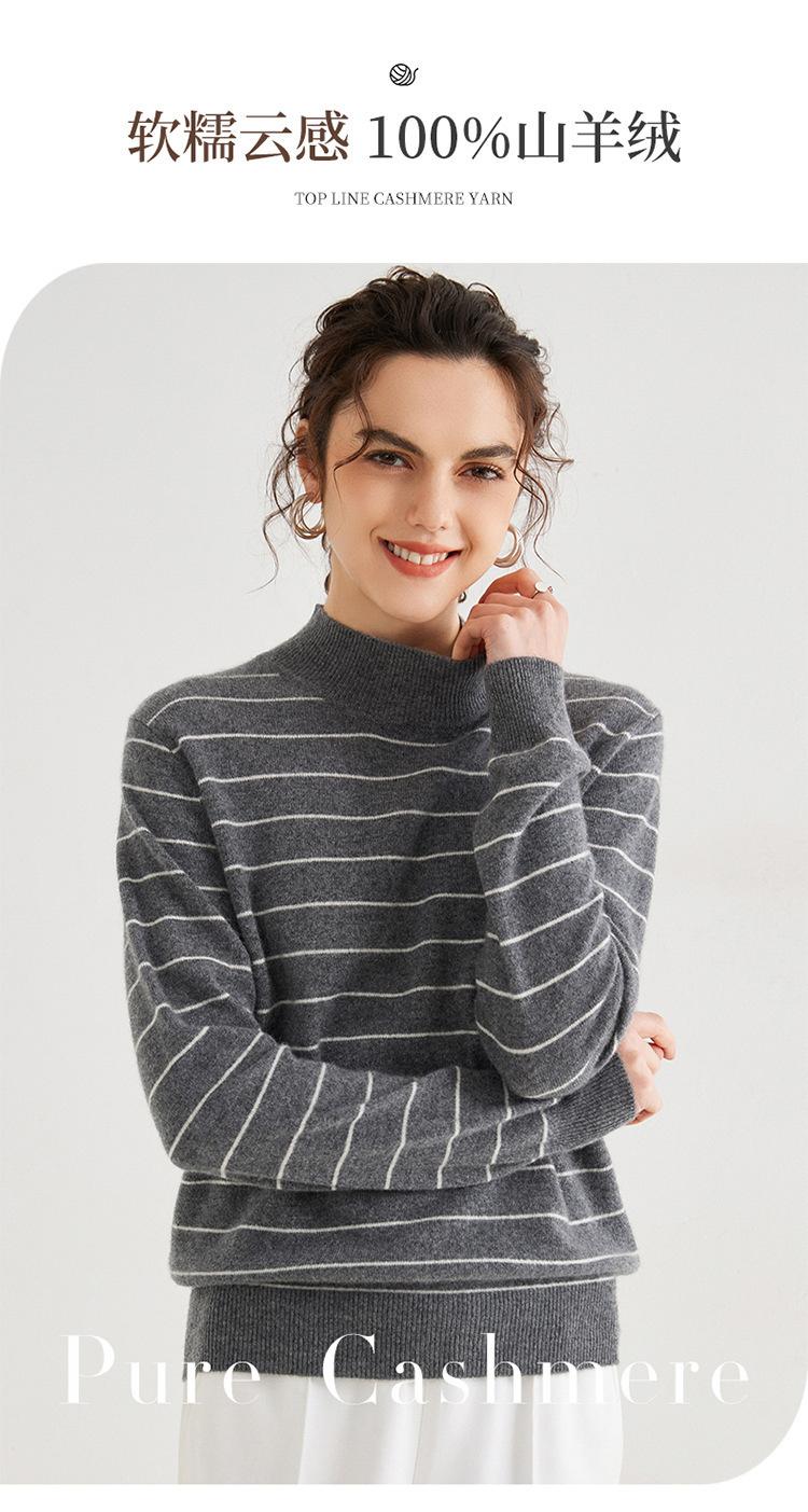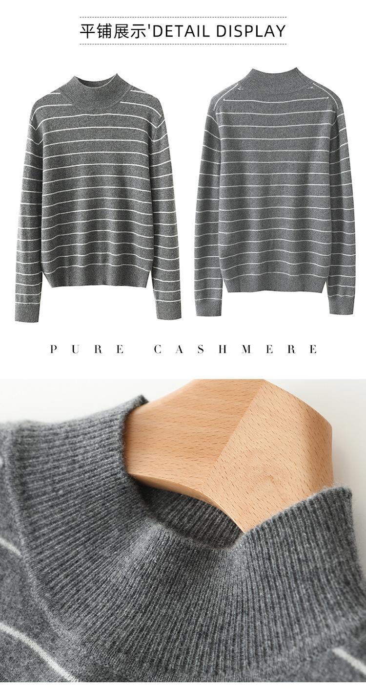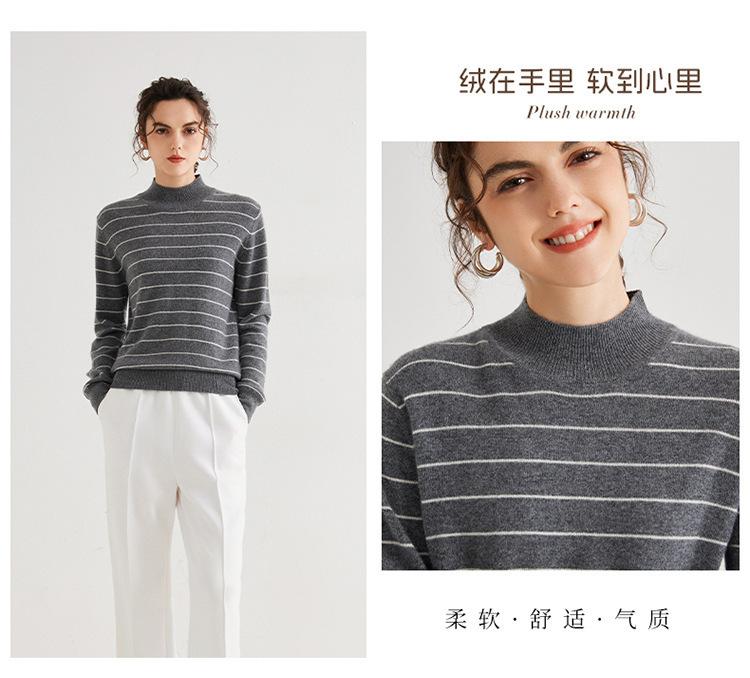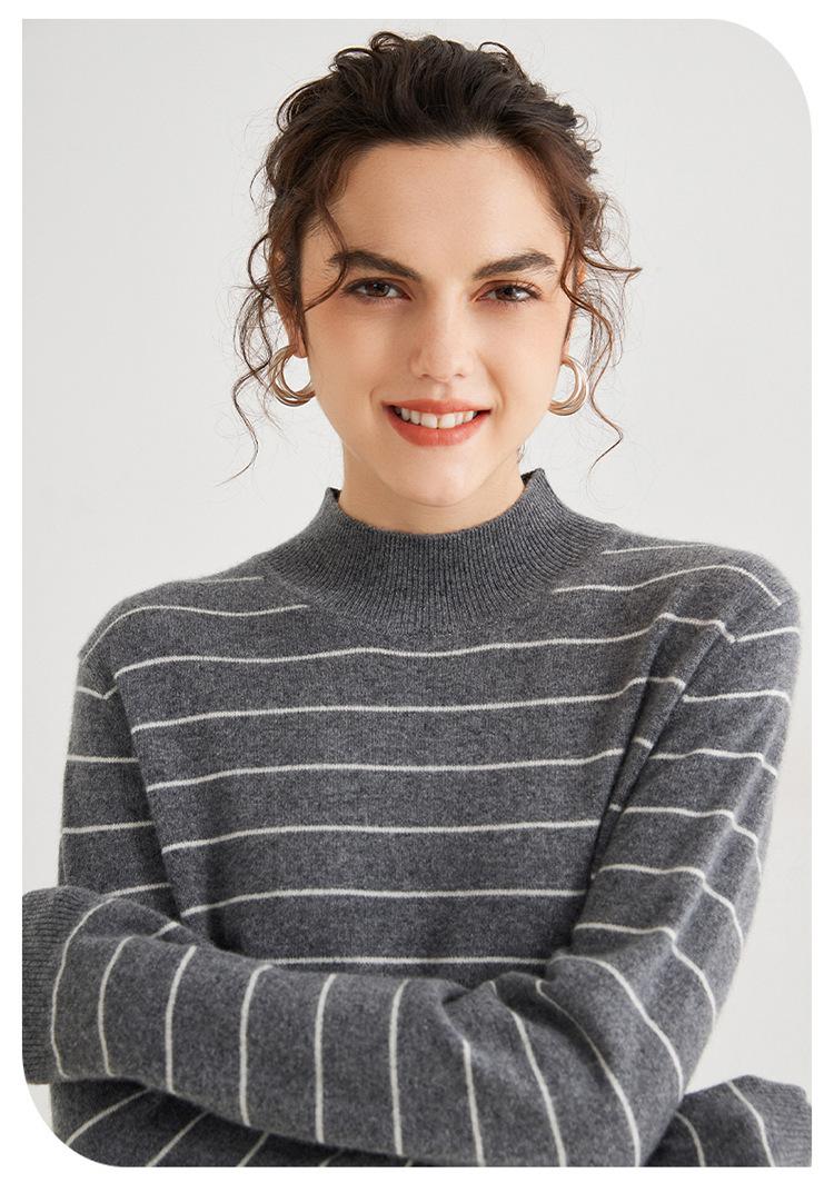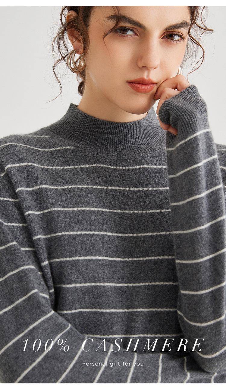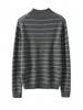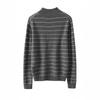 Otoño e Invierno Nuevo Suéter de Cachemira 100 de Cuello Alto para Mujer a Rayas Suéter Ajustado para Mujer Chaqueta Cálida de Capa Base