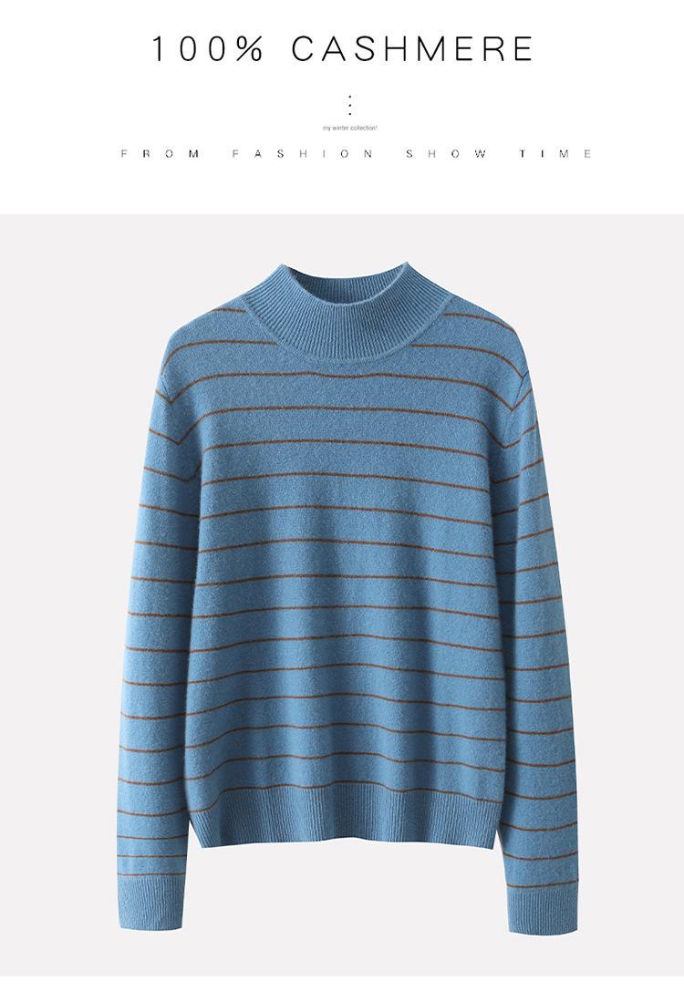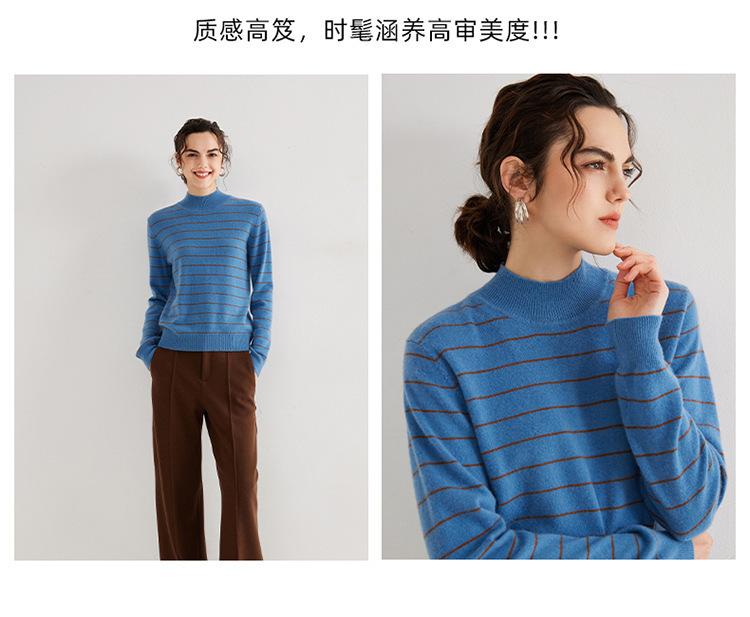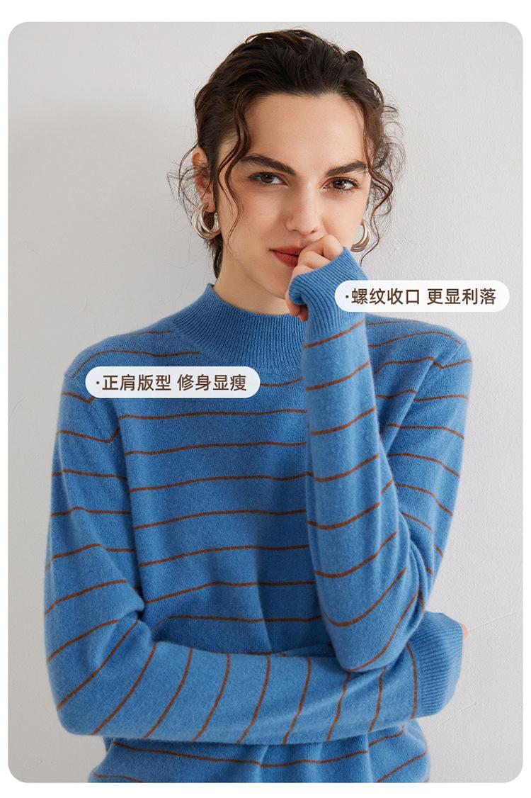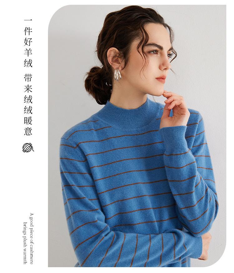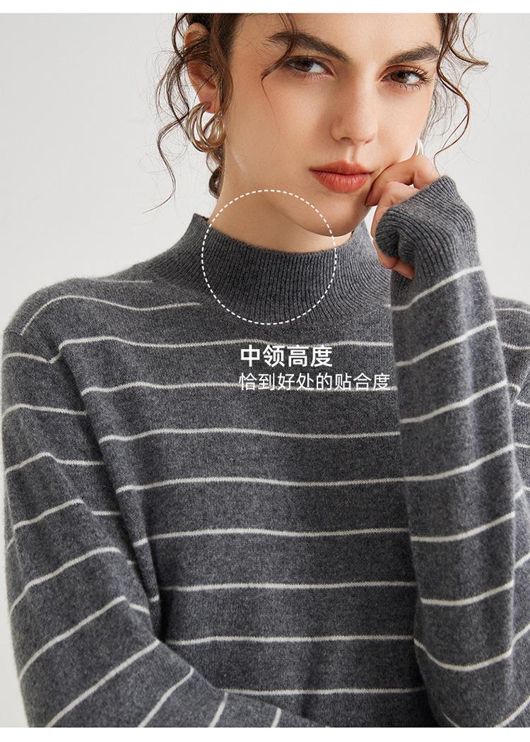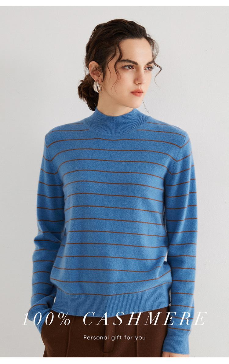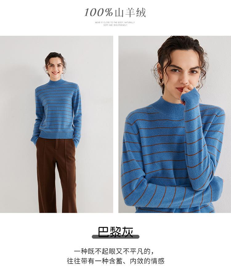 Otoño e Invierno Nuevo Suéter de Cachemira 100 de Cuello Alto para Mujer a Rayas Suéter Ajustado para Mujer Chaqueta Cálida de Capa Base