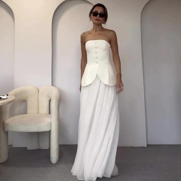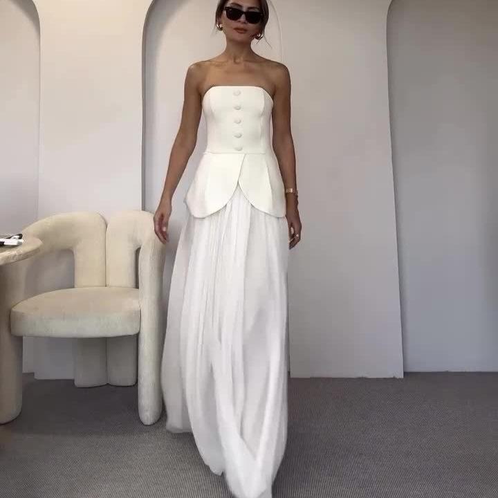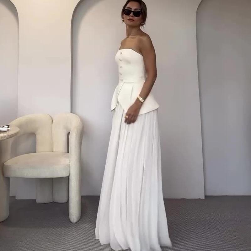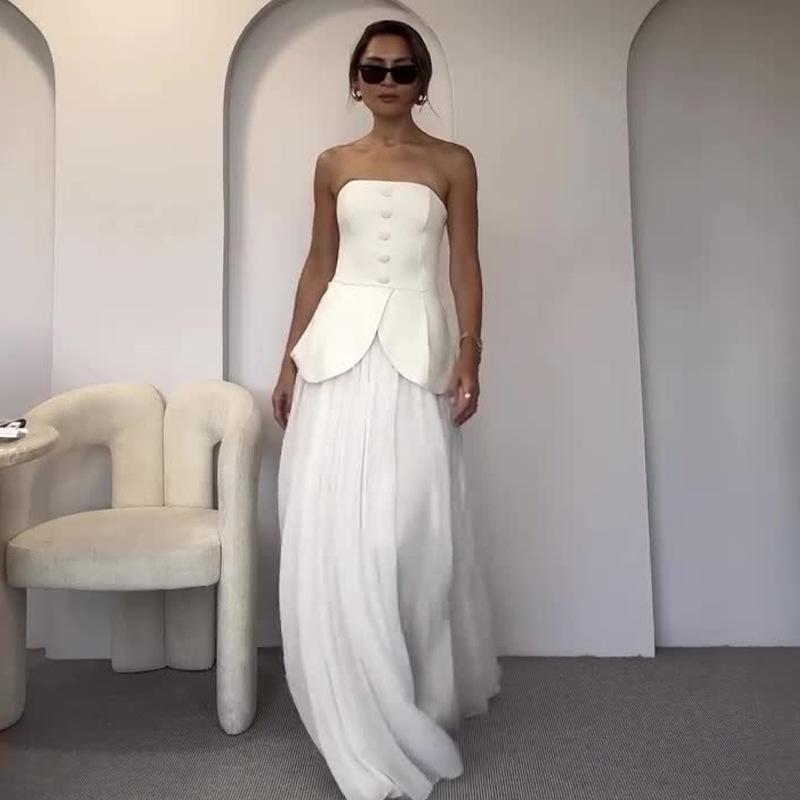 Nuevo Verano 2024 Europeo y Americano Amazon Transfronterizo para Mujer Top de Tubo Multibotón Elegante Falda Conjunto de Dos Piezas