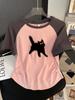 Camiseta de manga corta raglán para mujer, diseño de verano, estilo moderno, con hombros descubiertos, holgada, con contraste de color y cintura ajustada.