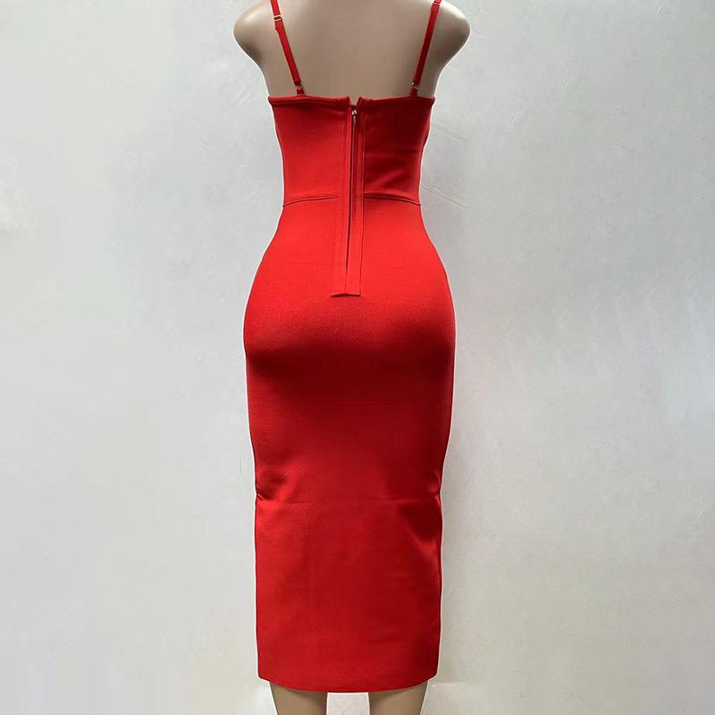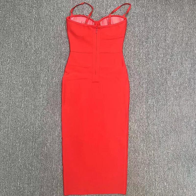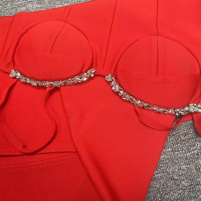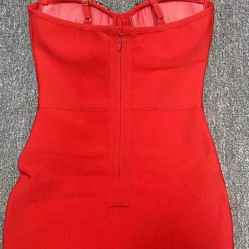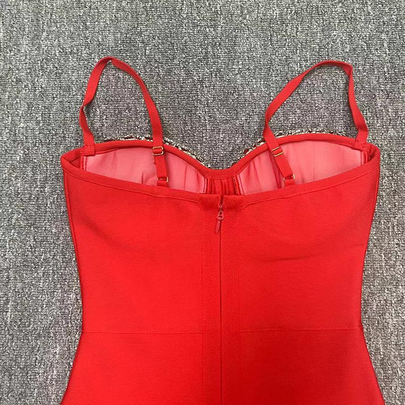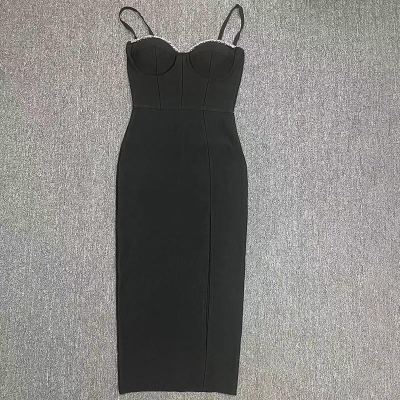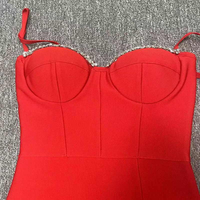 Estilo Europeo y Americano Sexy Vestido Elegante de Pedrería con Abertura sin Mangas Ajustado con Tiras de Vendaje Estilo Celebridad Vestido de Noche Estilo Sexy
