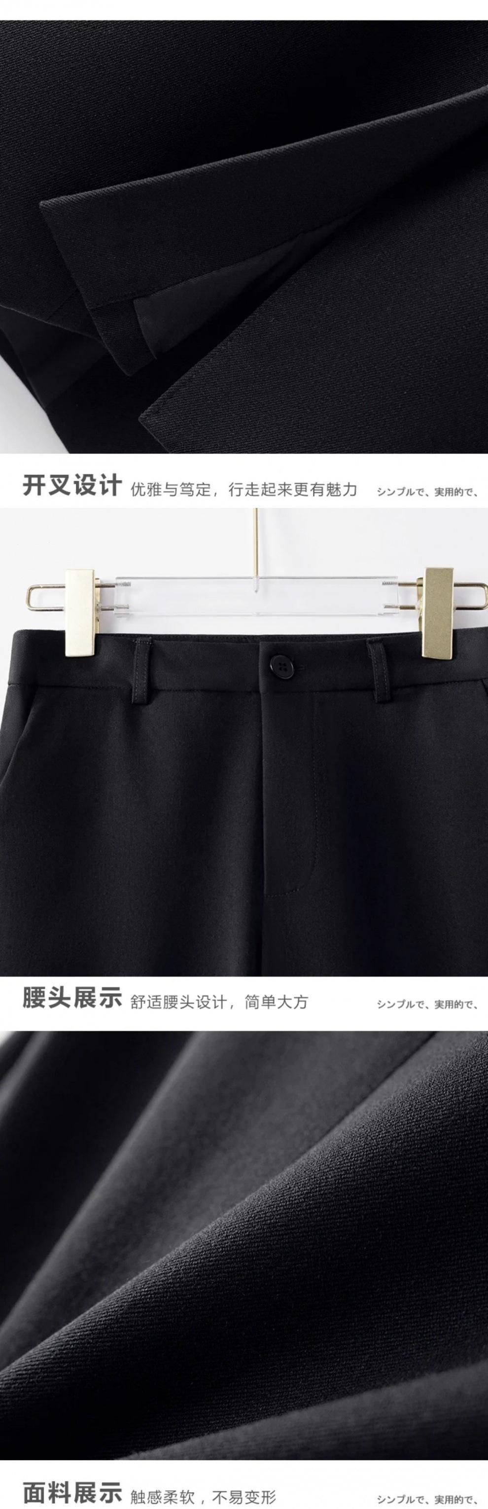 Black suit jacket, Black suit + trousers, Navy suit + trousers, Black single pants