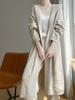 Suéter con capucha de longitud media para mujer, abrigo holgado de punto grueso y holgado de lana pura trenzada para otoño e invierno.