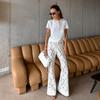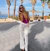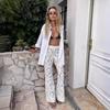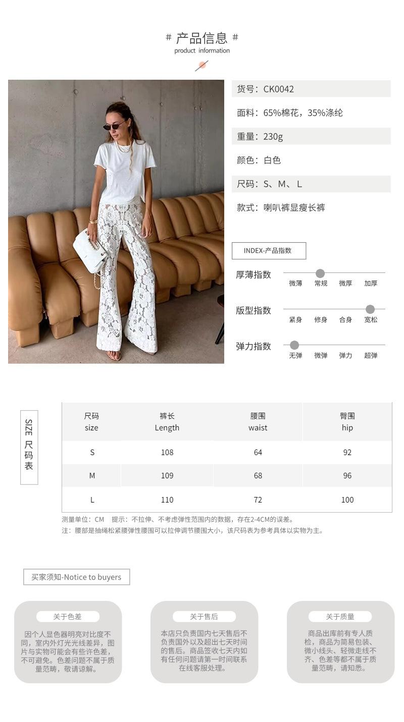 Pantalones acampanados de jacquard transfronterizos europeos y americanos de primavera y verano de 2024, nuevos pantalones ajustados con huecos y encaje de jacquard para mujer.
