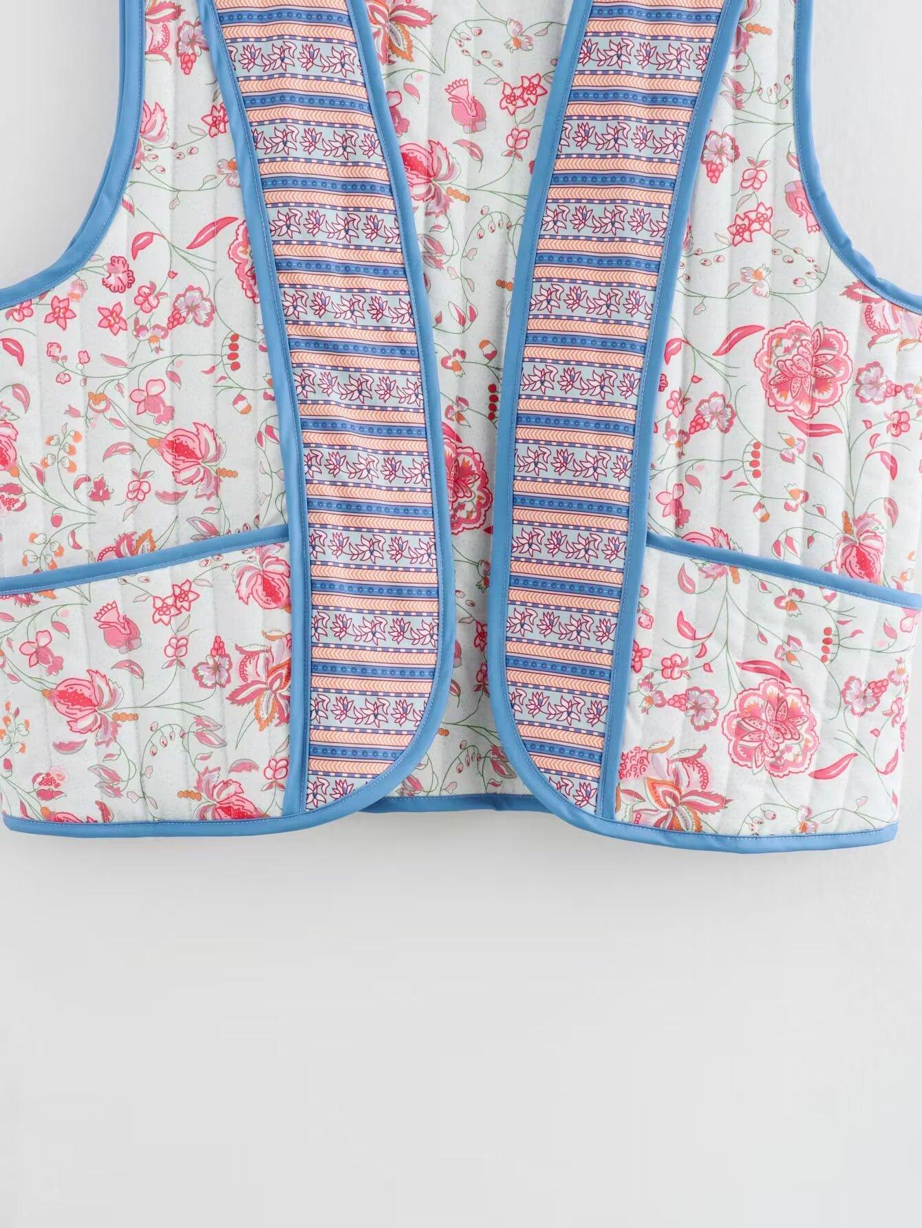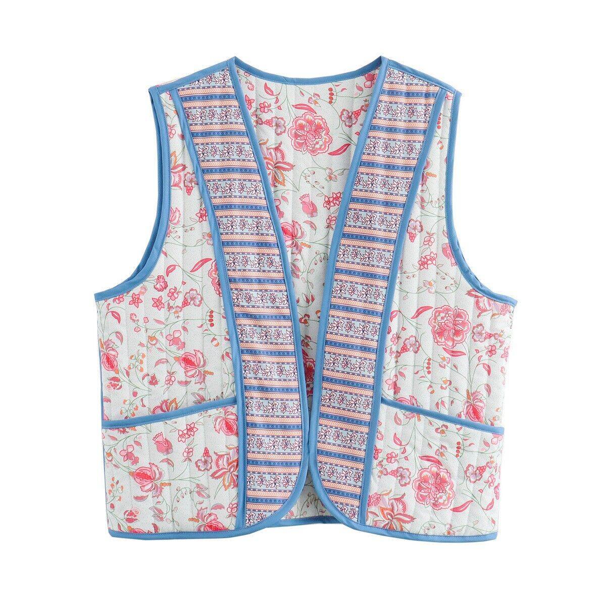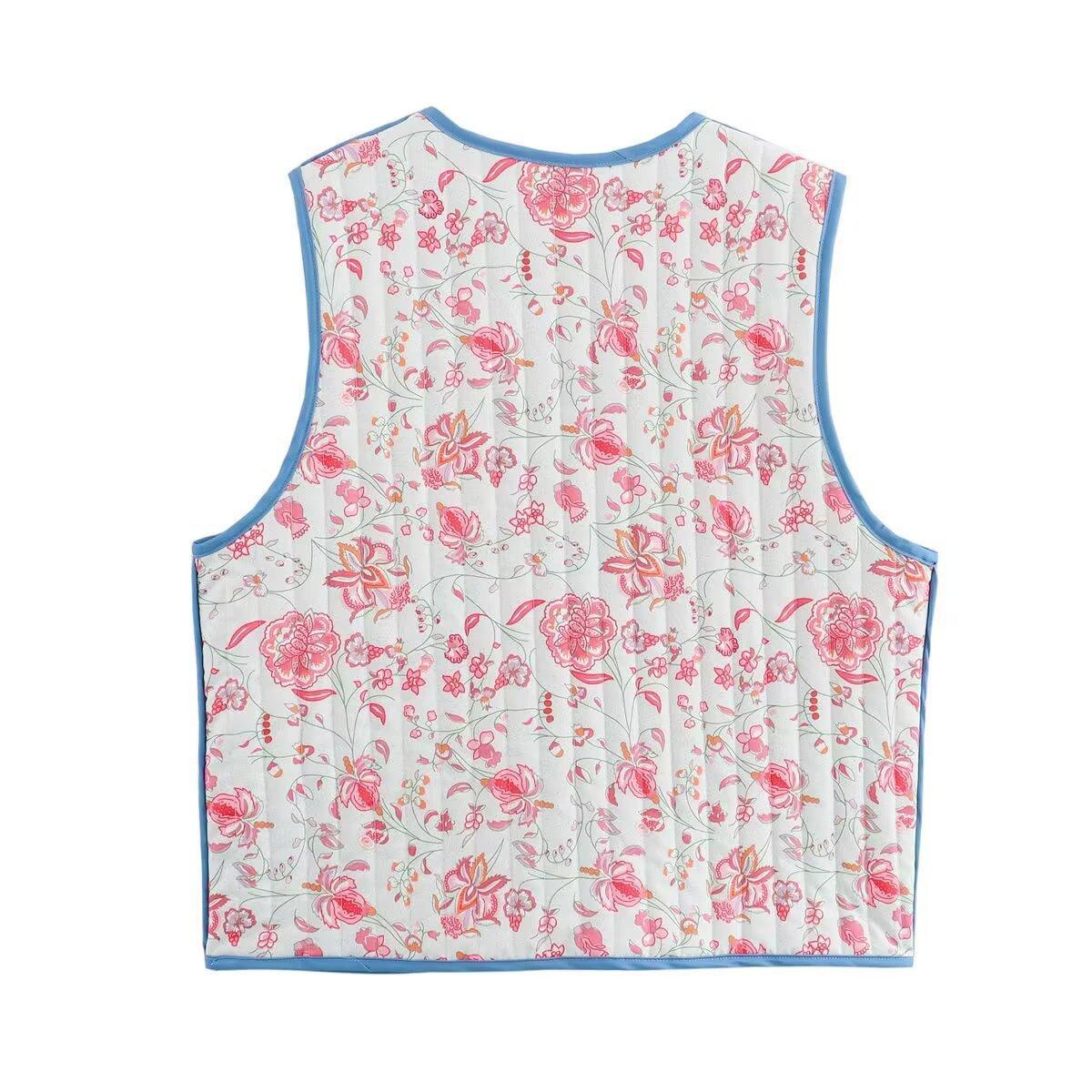 Chaleco sin mangas con cuello semiabierto y estampado rosa para mujer europea y americana, otoño e invierno 2024, comercio exterior transfronterizo de Amazon