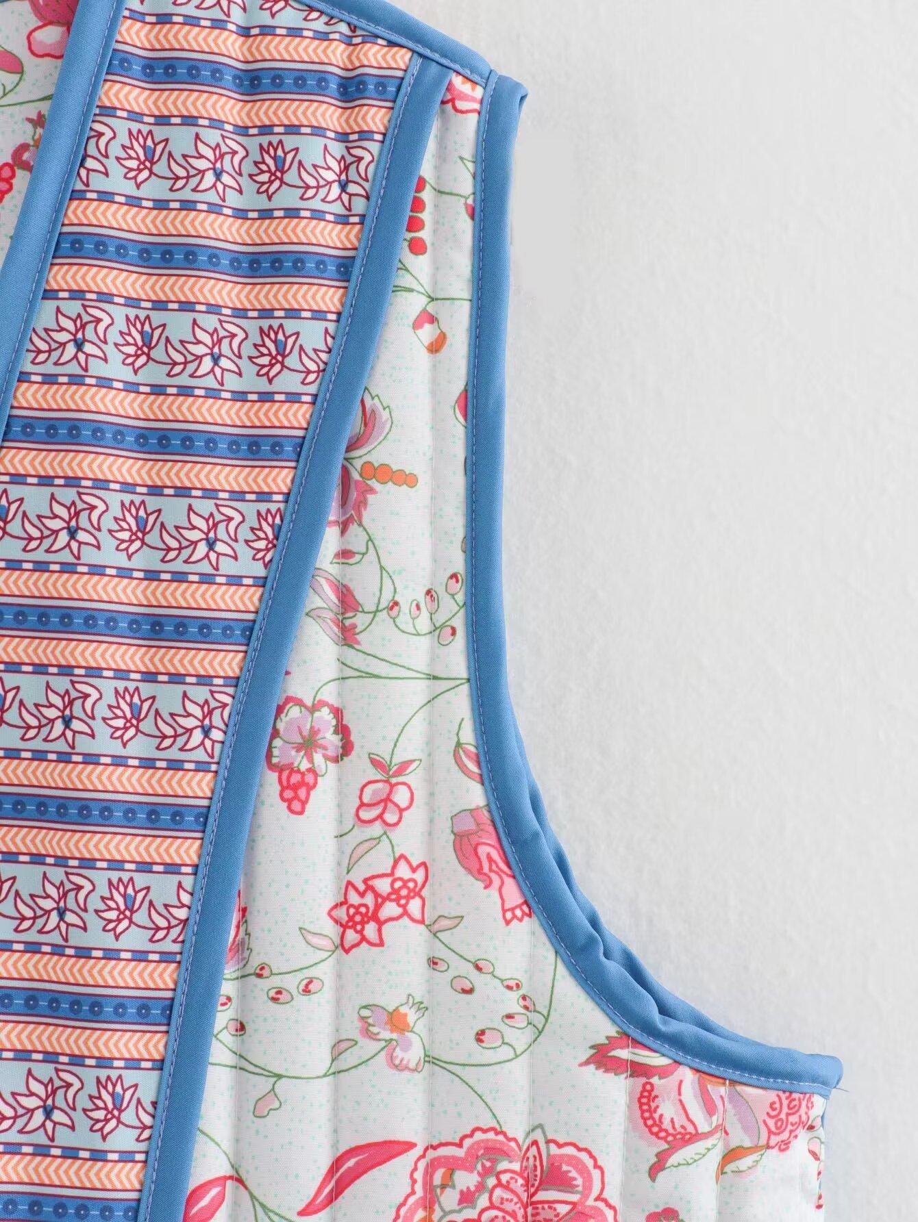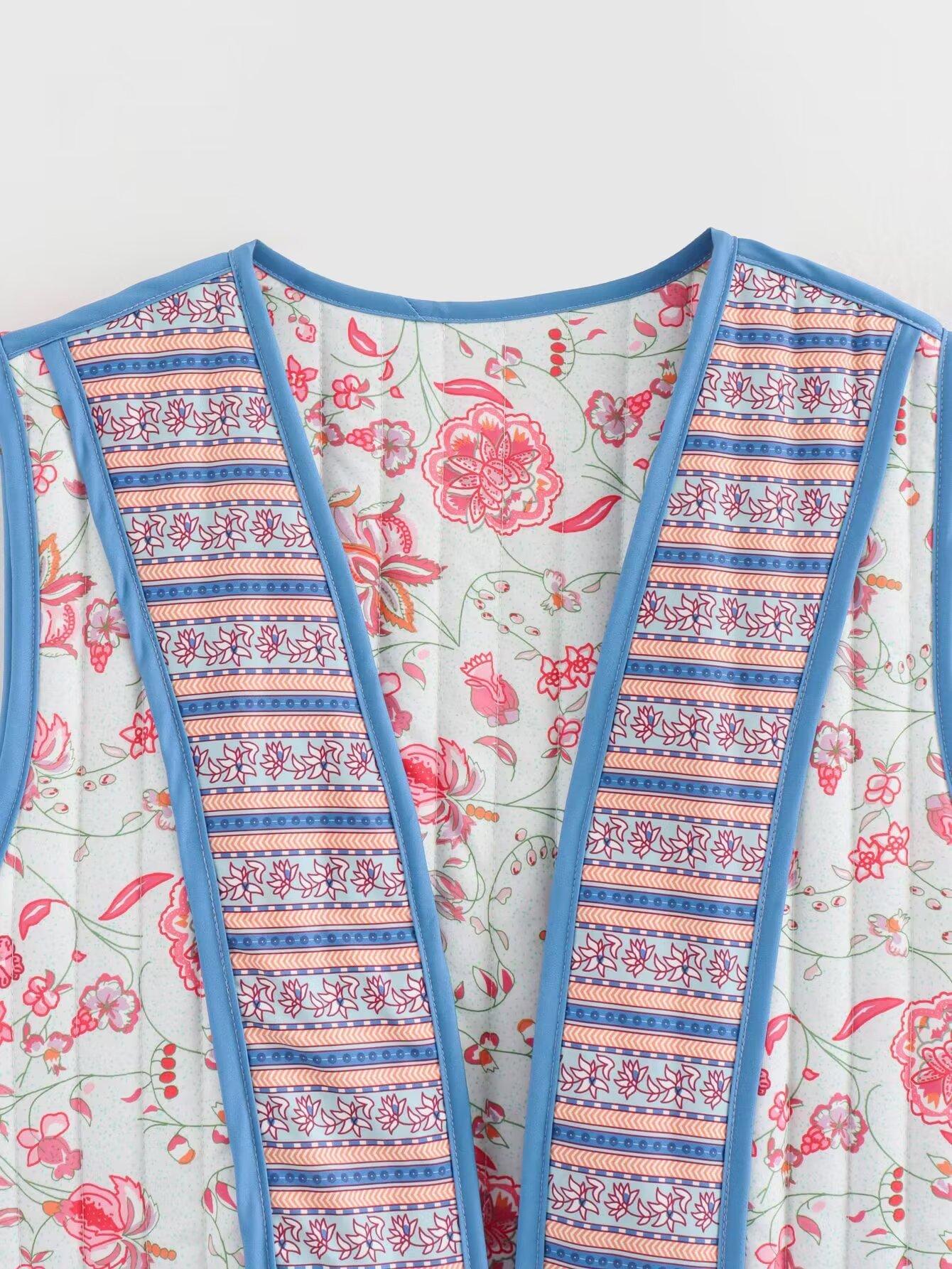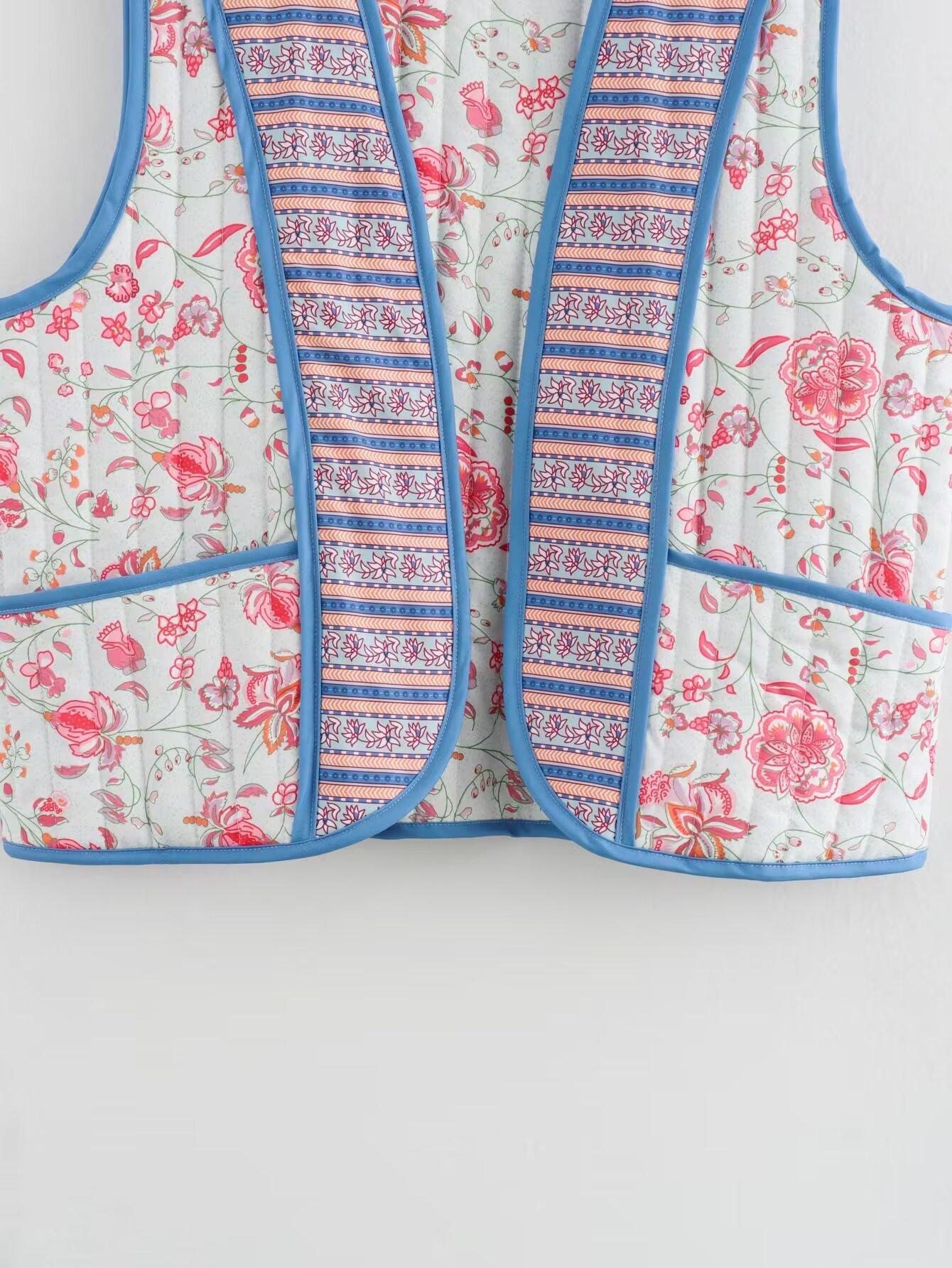 Chaleco sin mangas con cuello semiabierto y estampado rosa para mujer europea y americana, otoño e invierno 2024, comercio exterior transfronterizo de Amazon