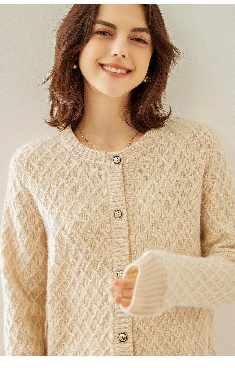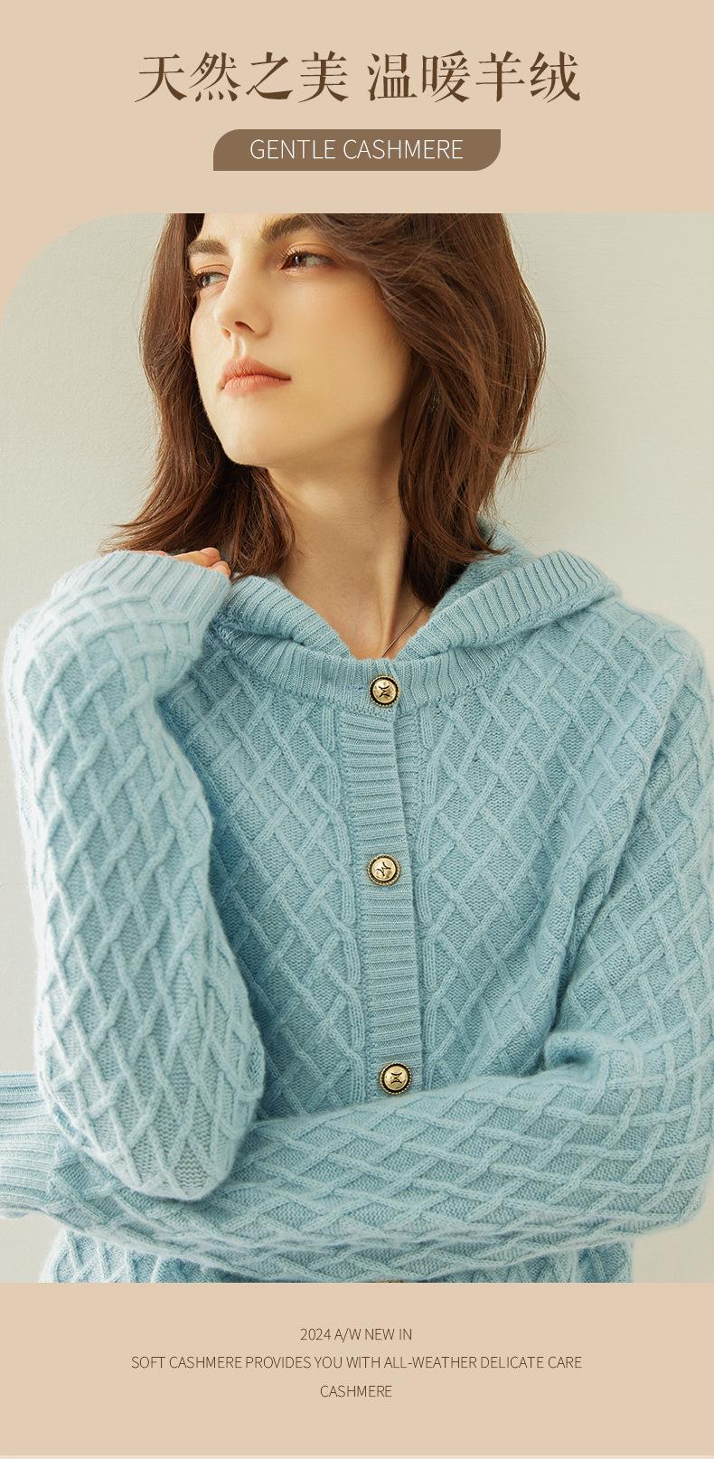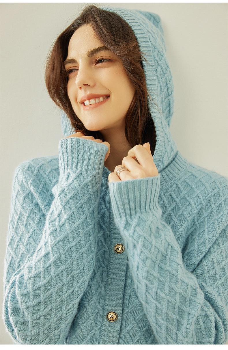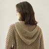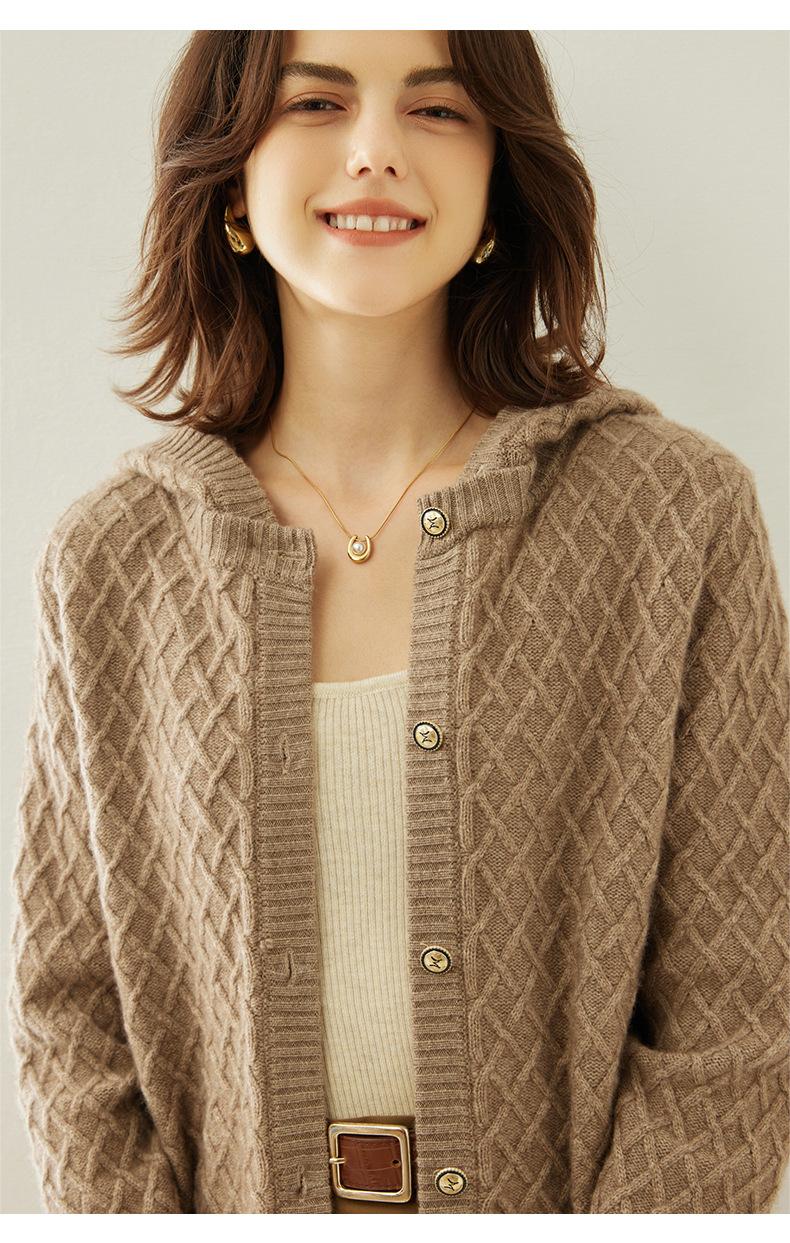 Cárdigan de punto de cachemira con capucha gruesa para otoño e invierno, chaqueta con capucha desmontable de lana de malla y cuello redondo para mujer