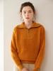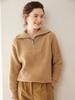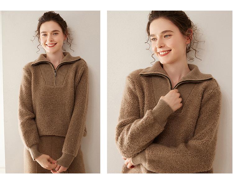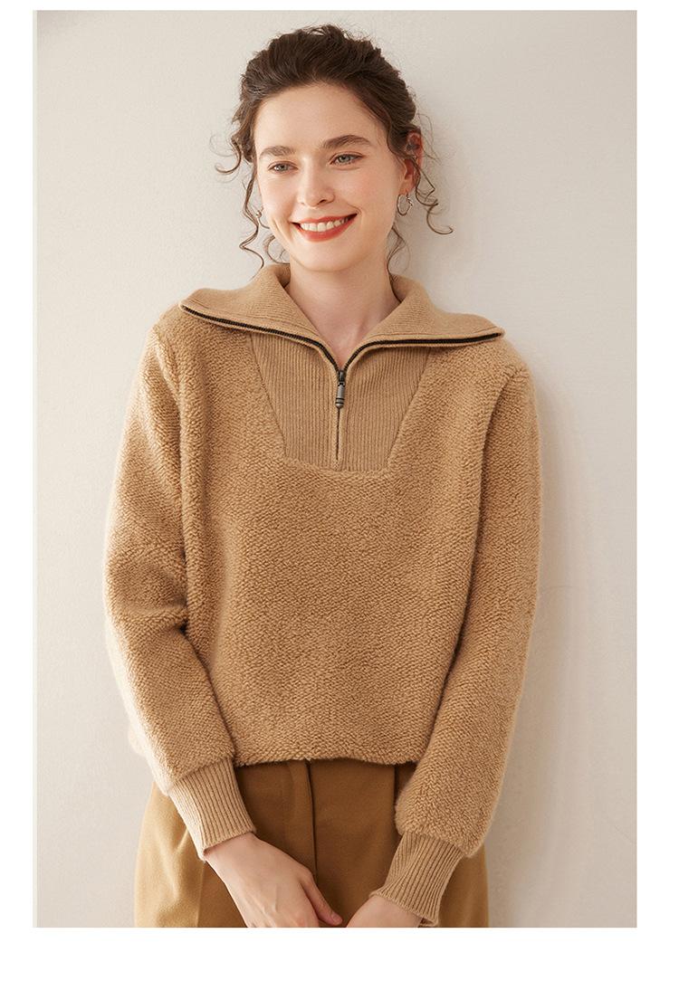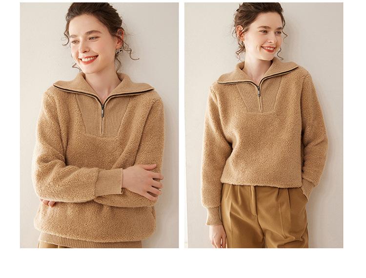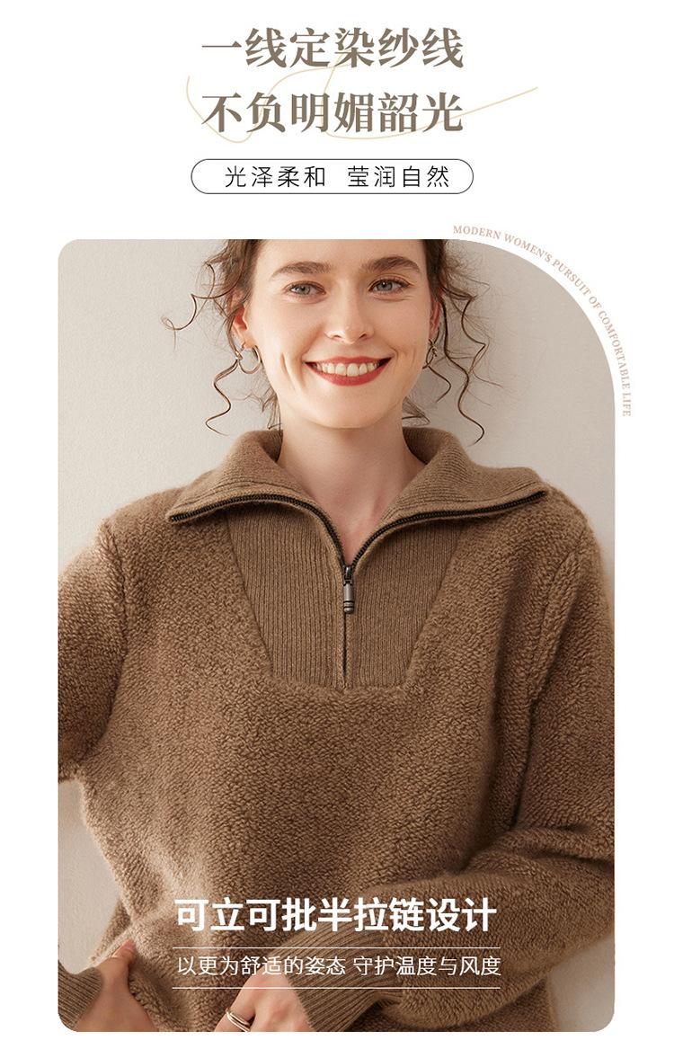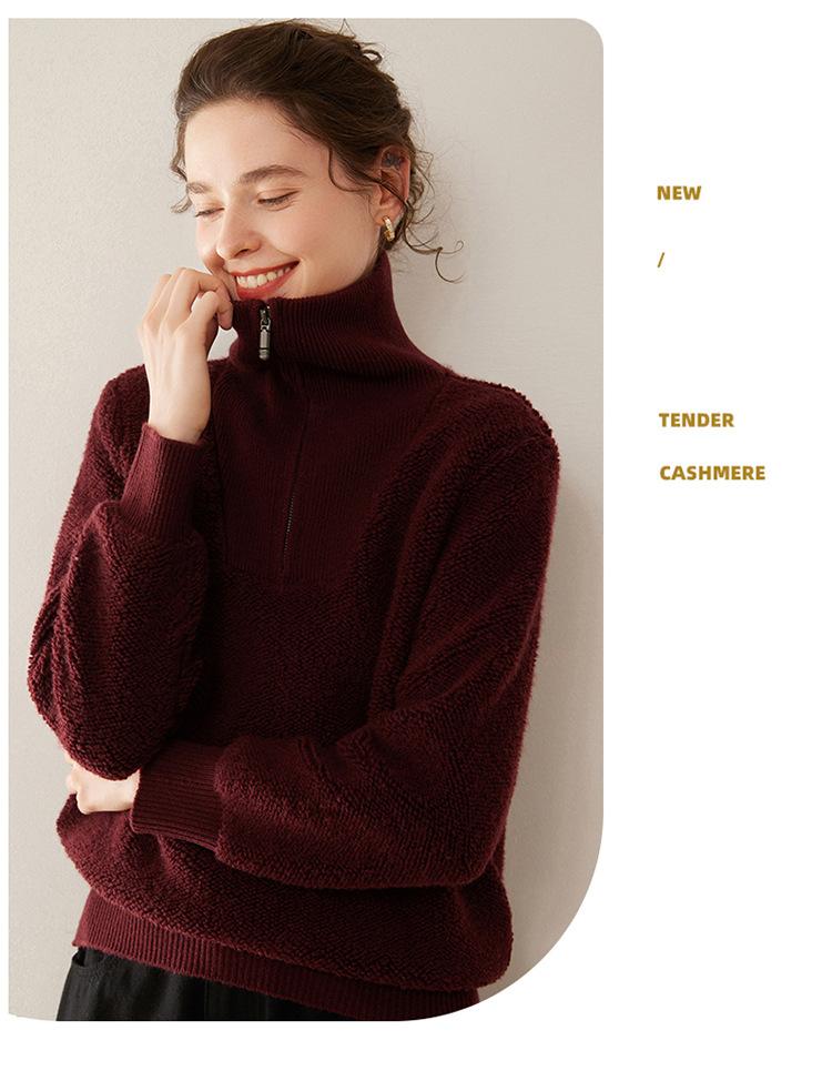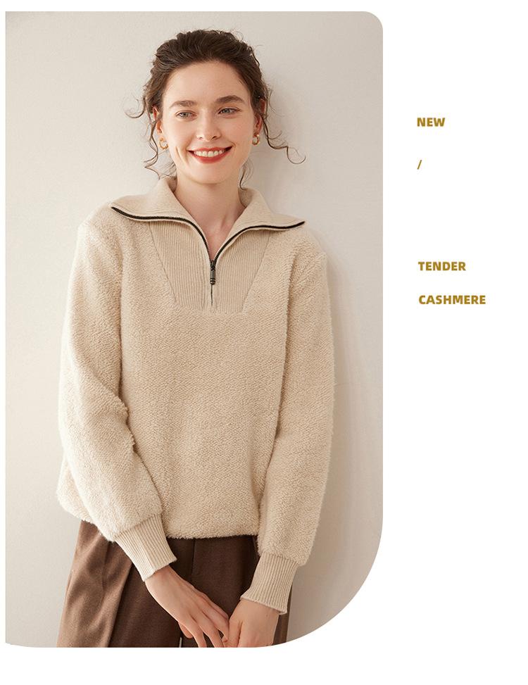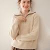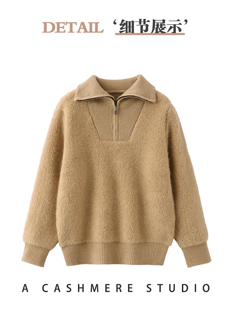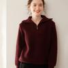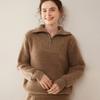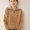Camisa básica de punto de cachemira para mujer, otoño e invierno 2024, manga larga, media cremallera, holgada, cálida, para exteriores