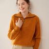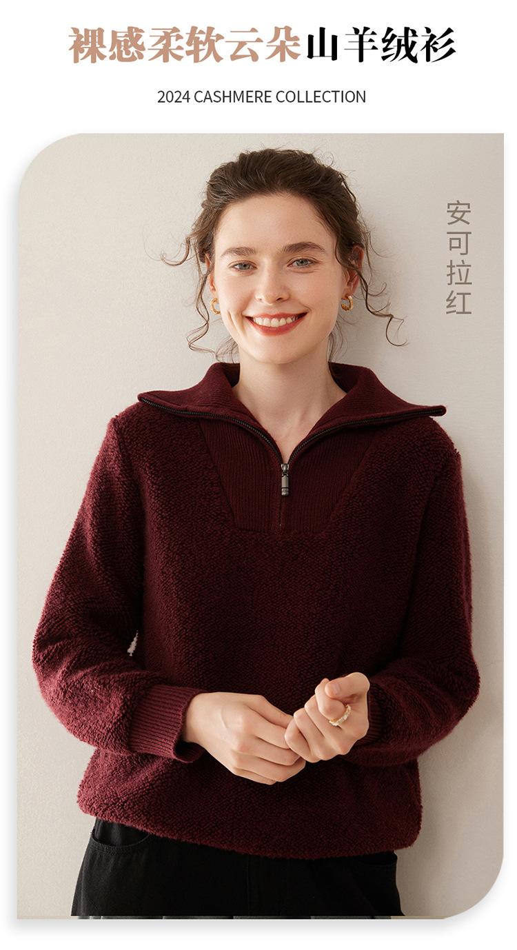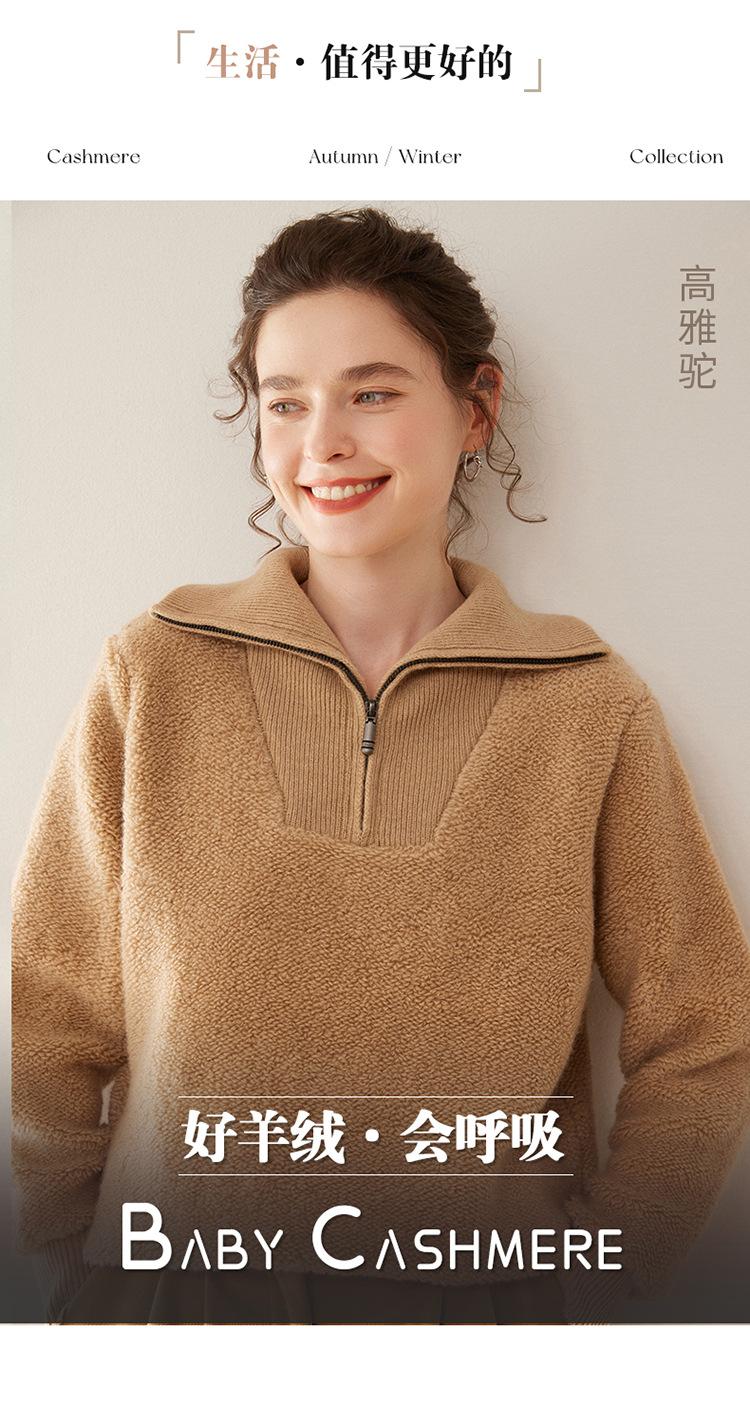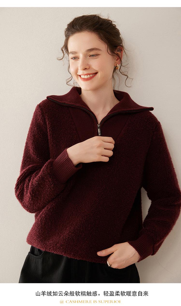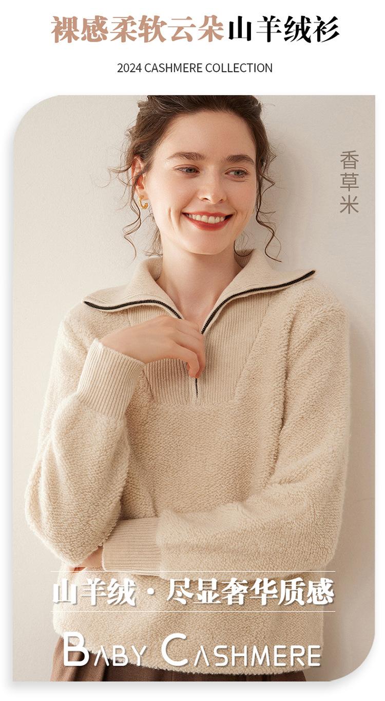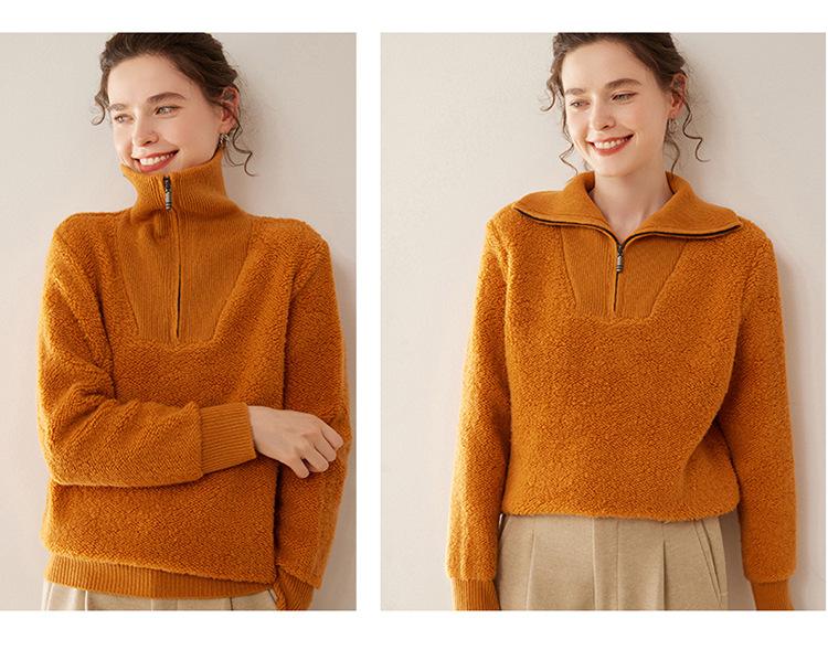 Camisa básica de punto de cachemira para mujer, otoño e invierno 2024, manga larga, media cremallera, holgada, cálida, para exteriores