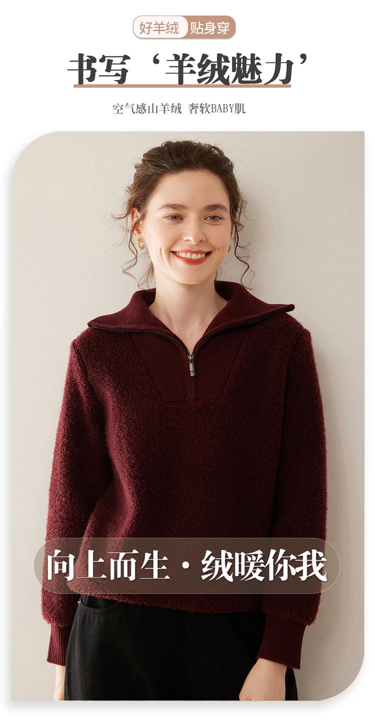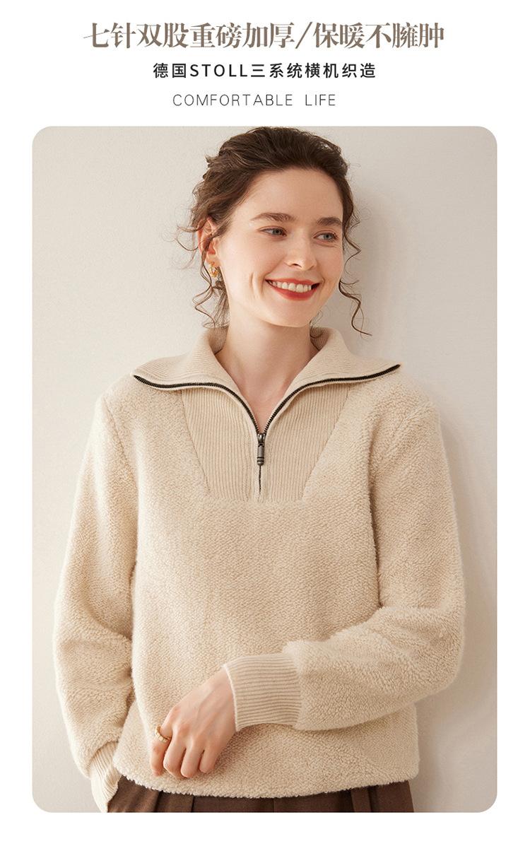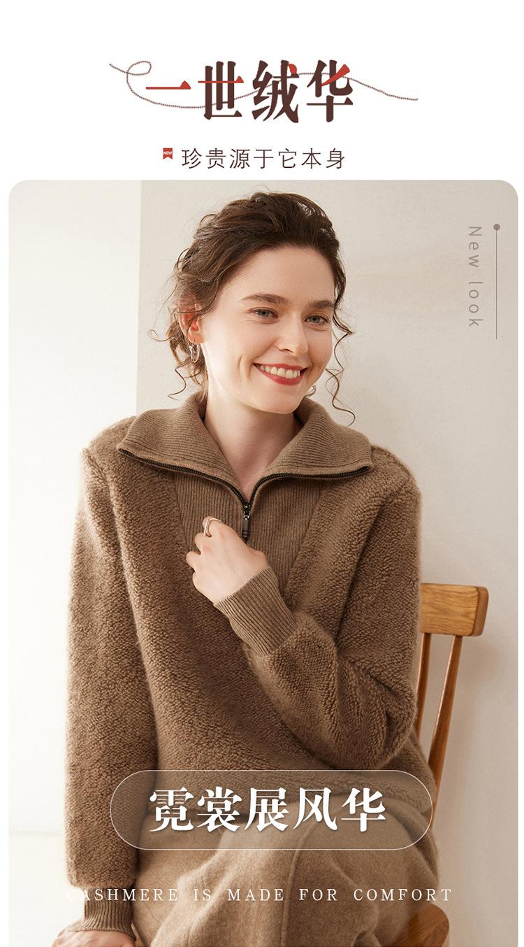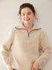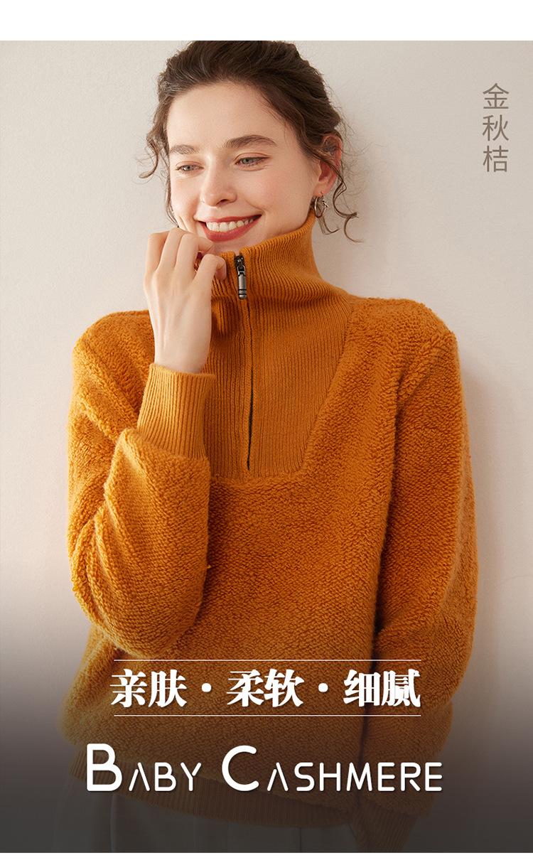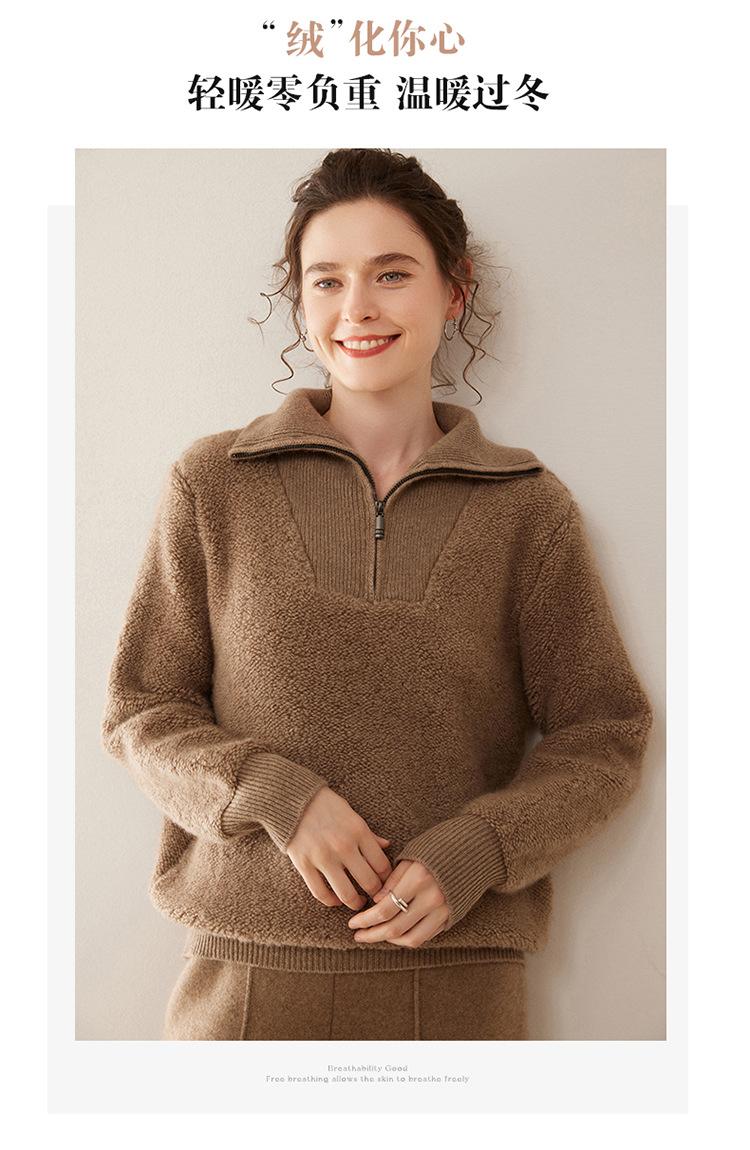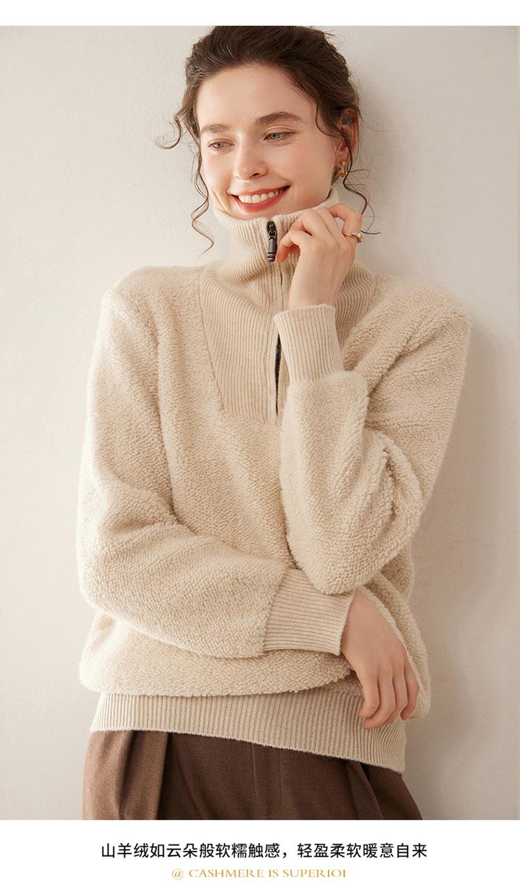 Camisa básica de punto de cachemira para mujer, otoño e invierno 2024, manga larga, media cremallera, holgada, cálida, para exteriores
