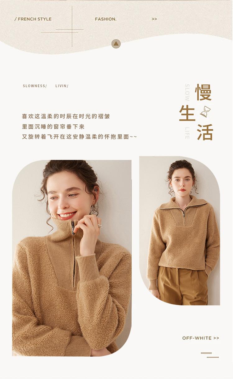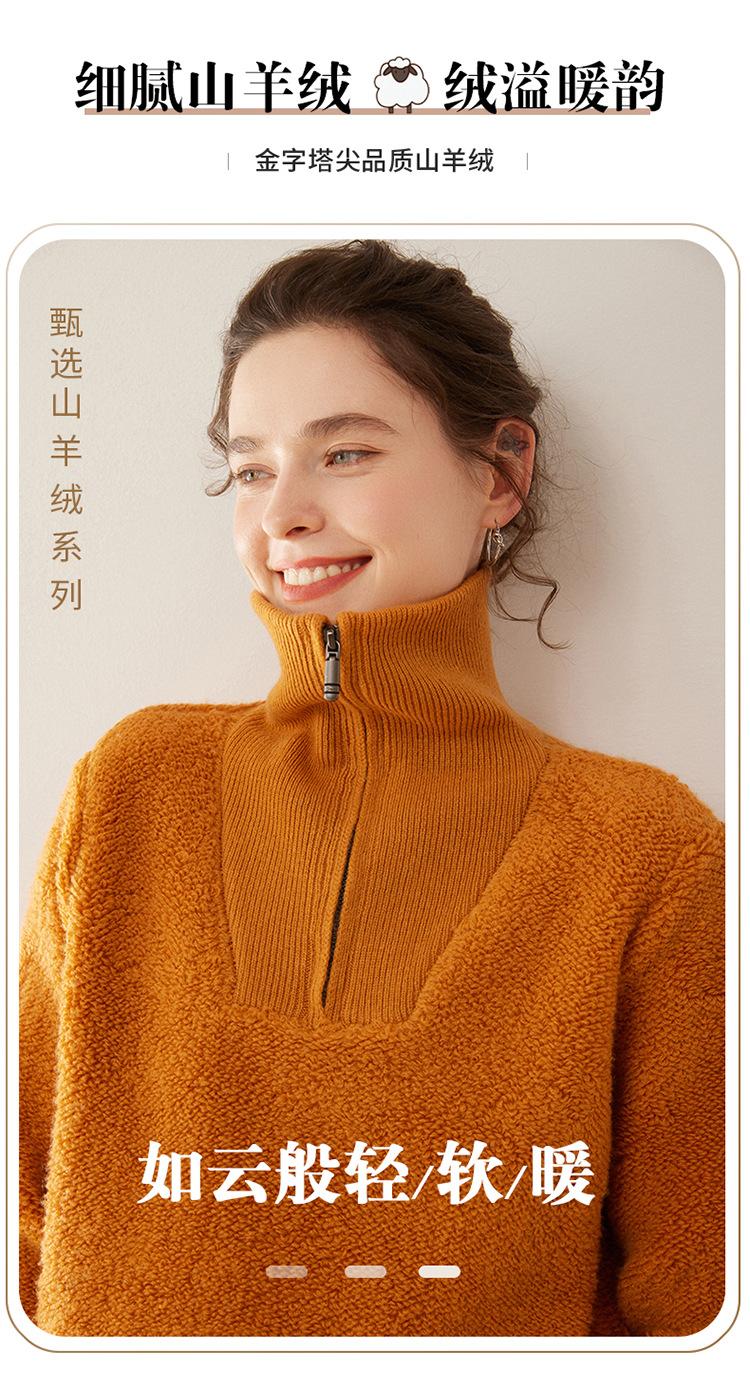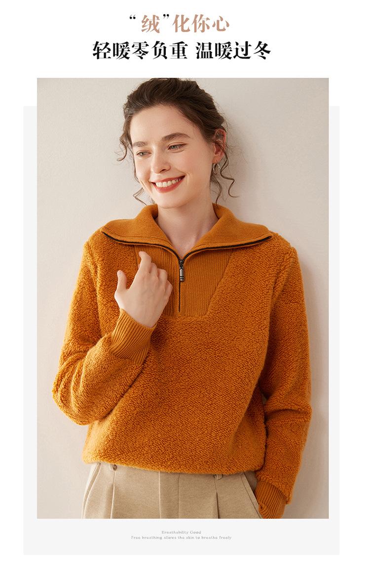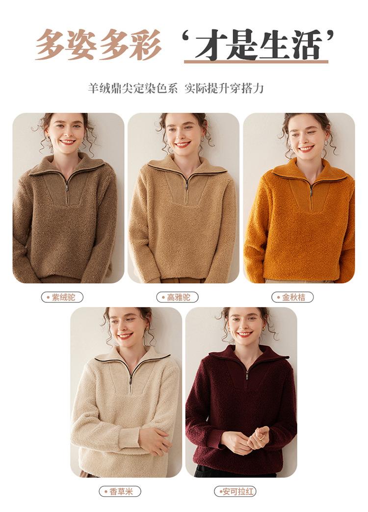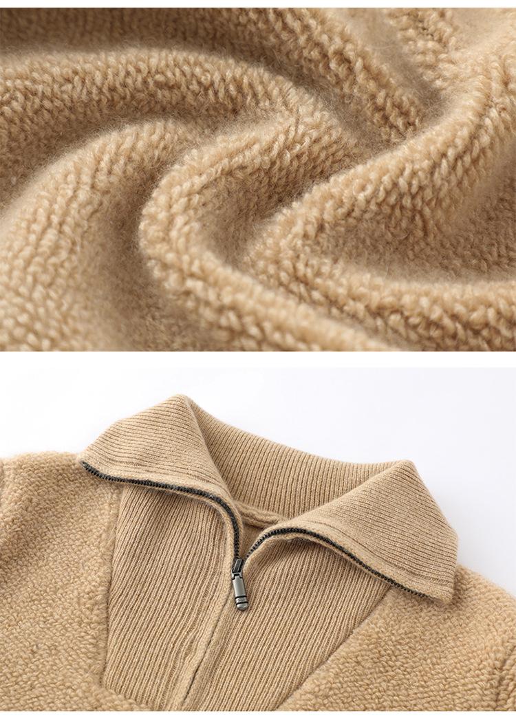 Camisa básica de punto de cachemira para mujer, otoño e invierno 2024, manga larga, media cremallera, holgada, cálida, para exteriores