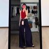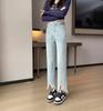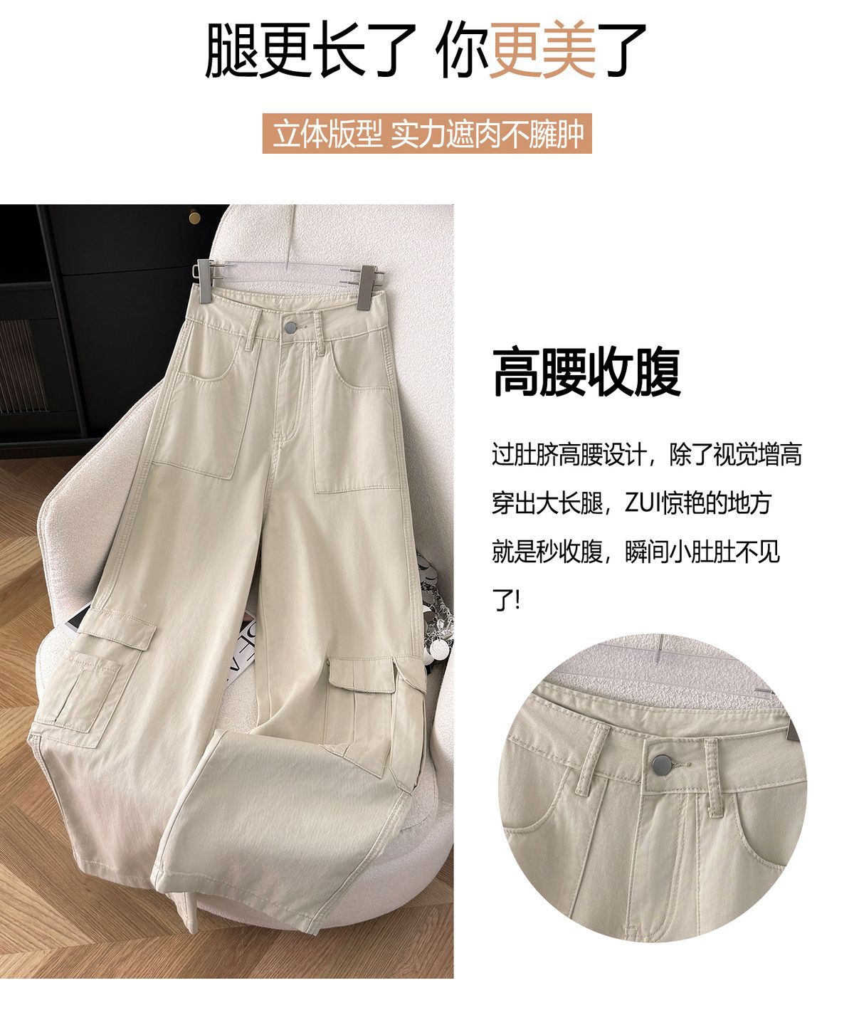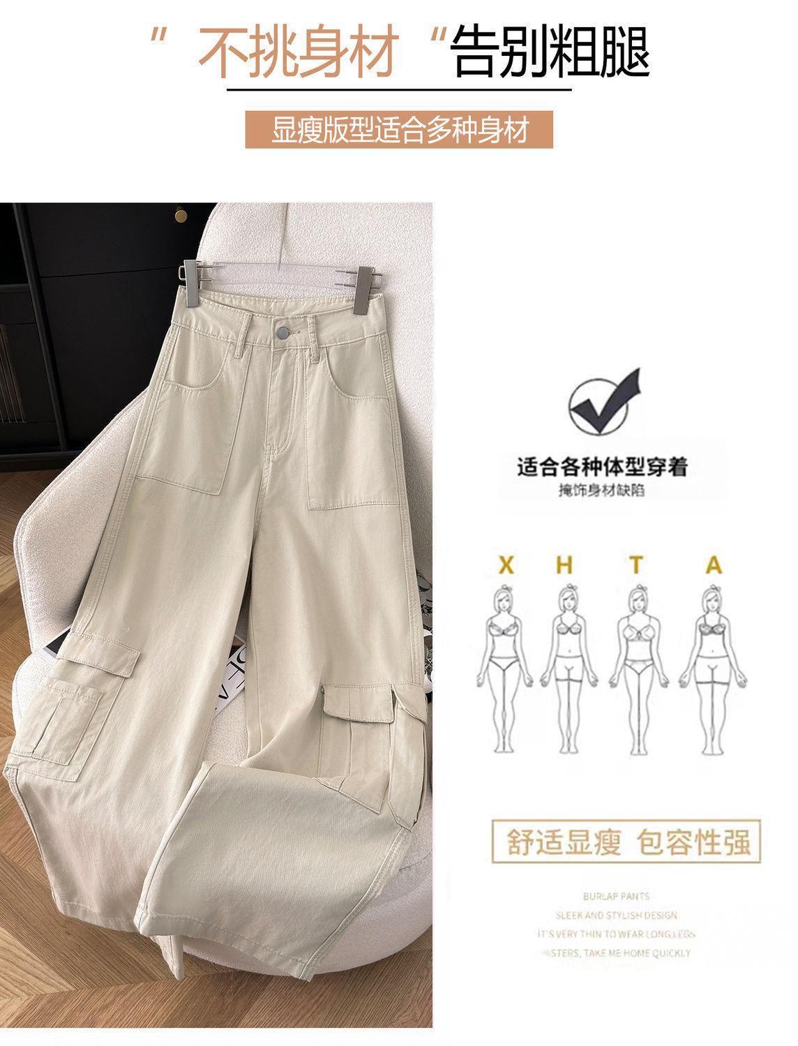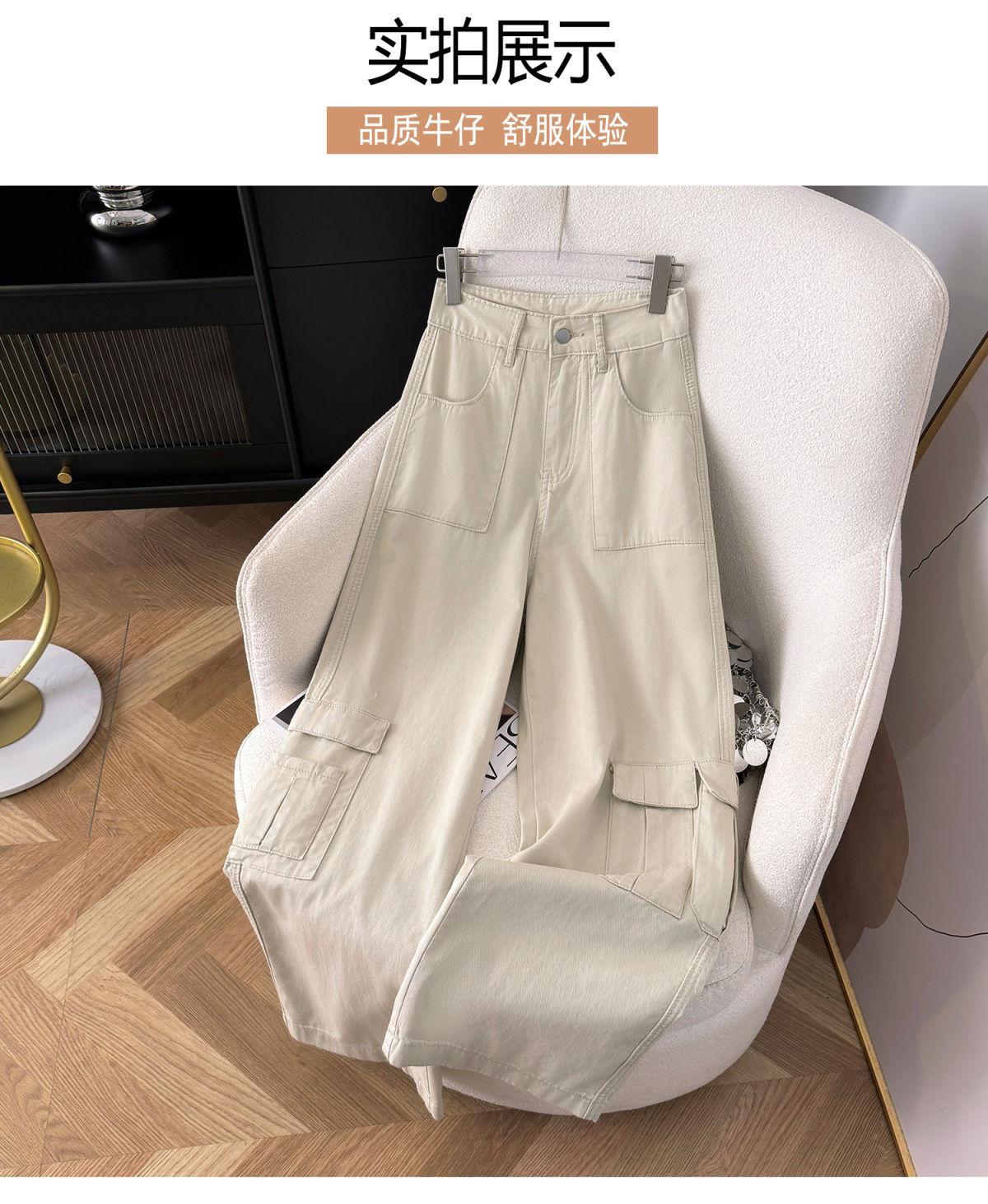 Vaqueros de pierna ancha Chubby Sister para mujer, tallas grandes, holgados, primavera/verano 2024, cintura alta, que cubren la cadera, color albaricoque