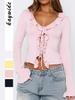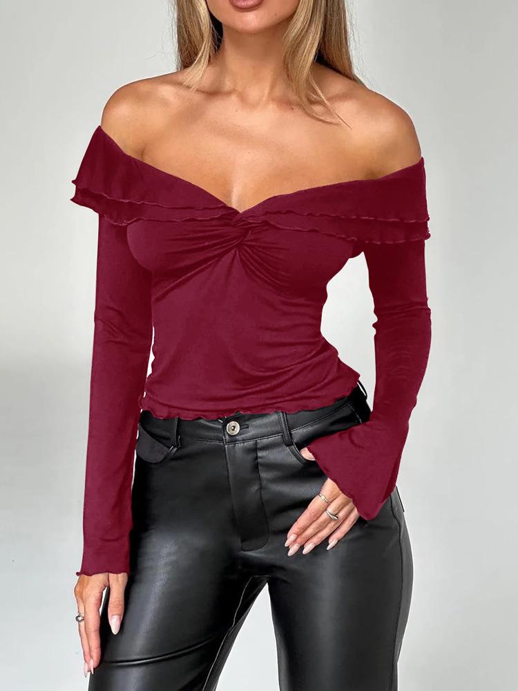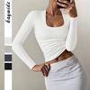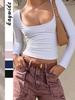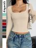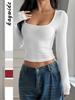 Diyun Transfronterizo Europeo y Americano Estilo Y2K Sexy Color Puro Camiseta de Manga Larga Tops para Mujer Otoño e Invierno 2025 Estación Independiente de Amazon