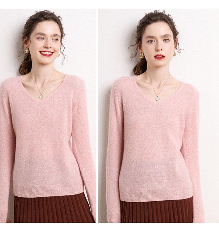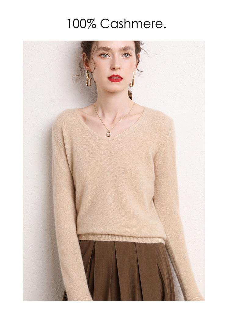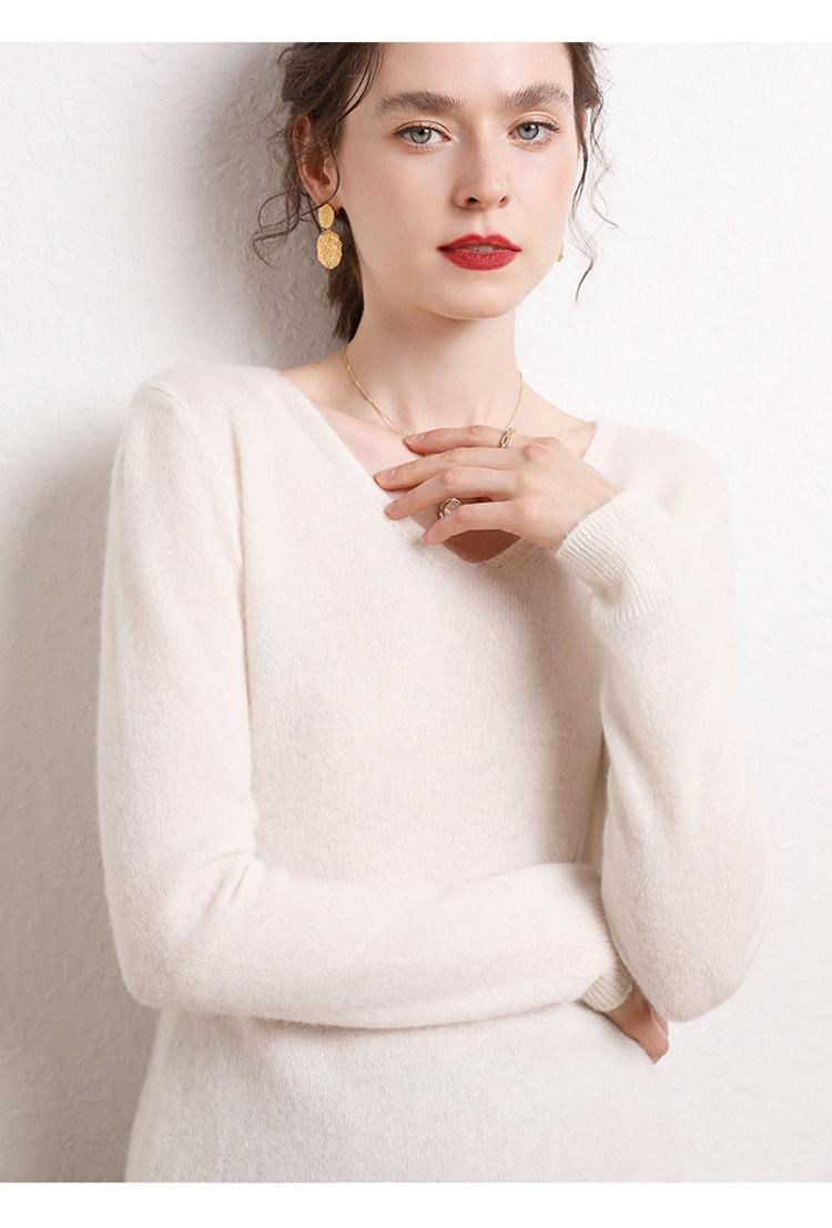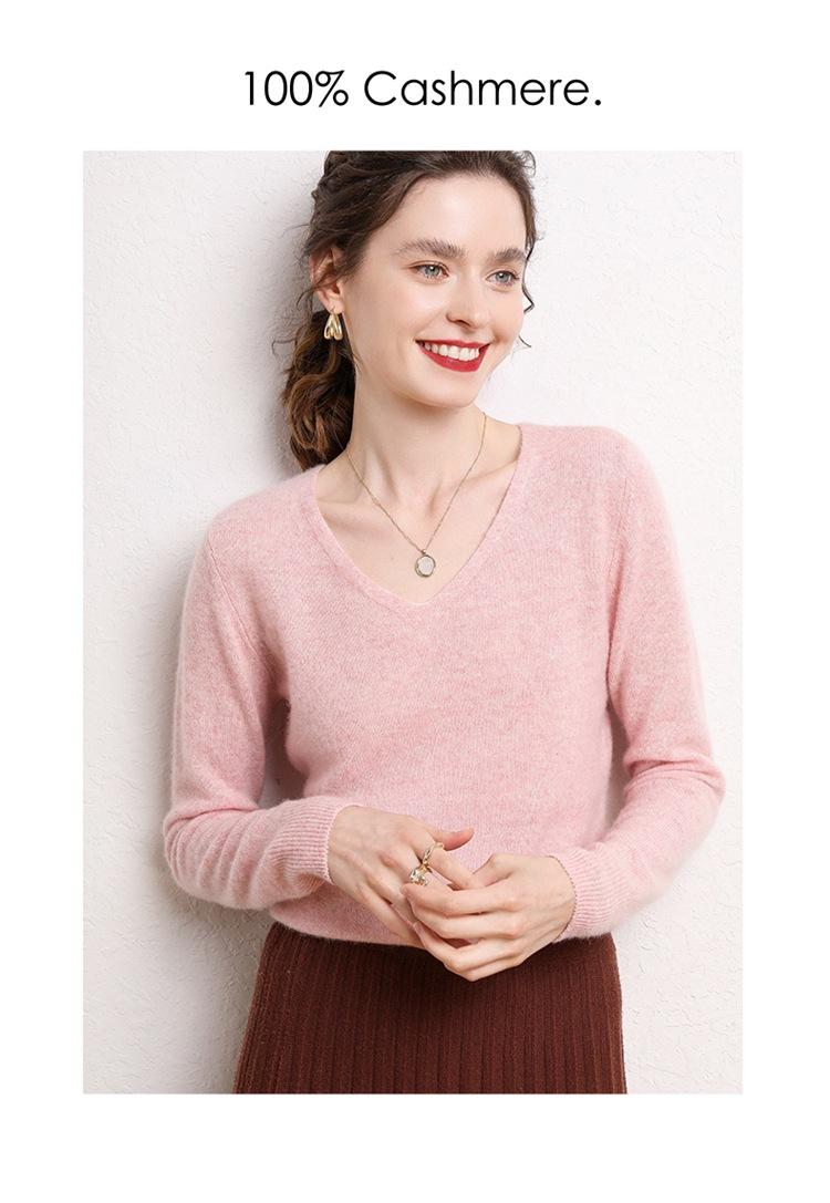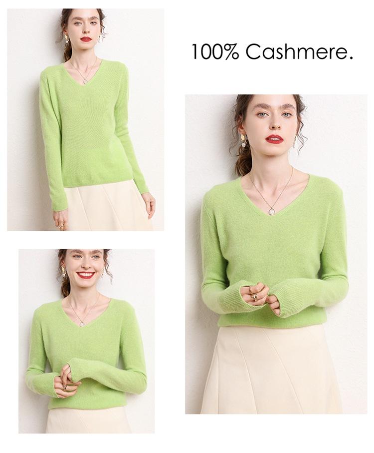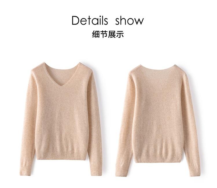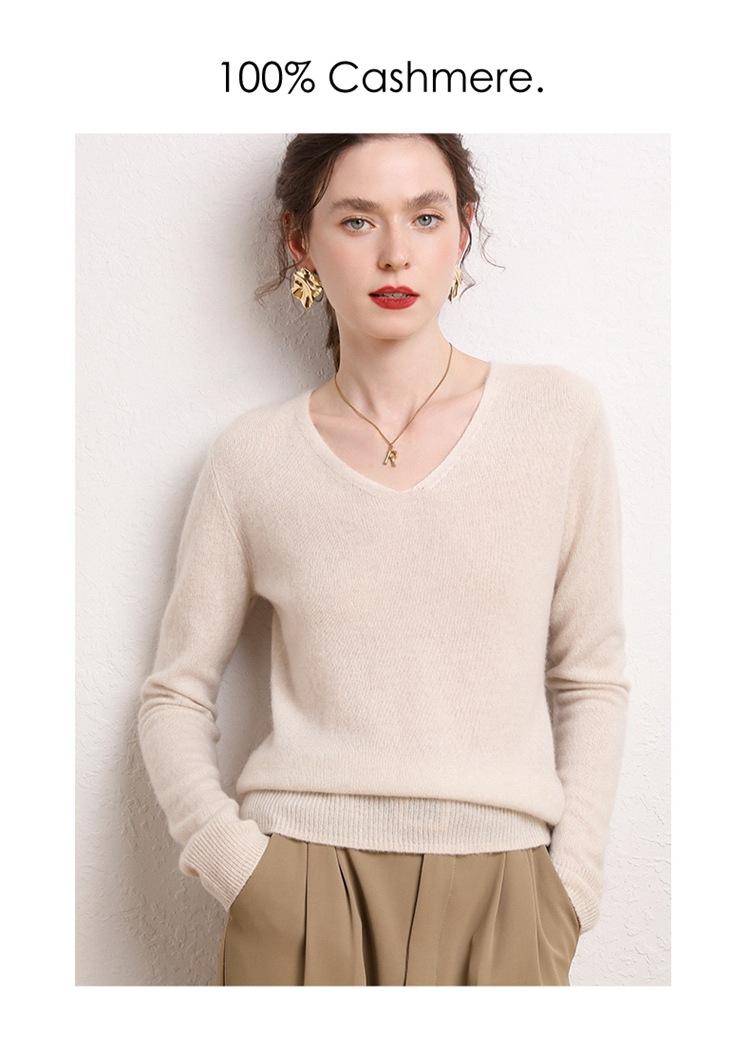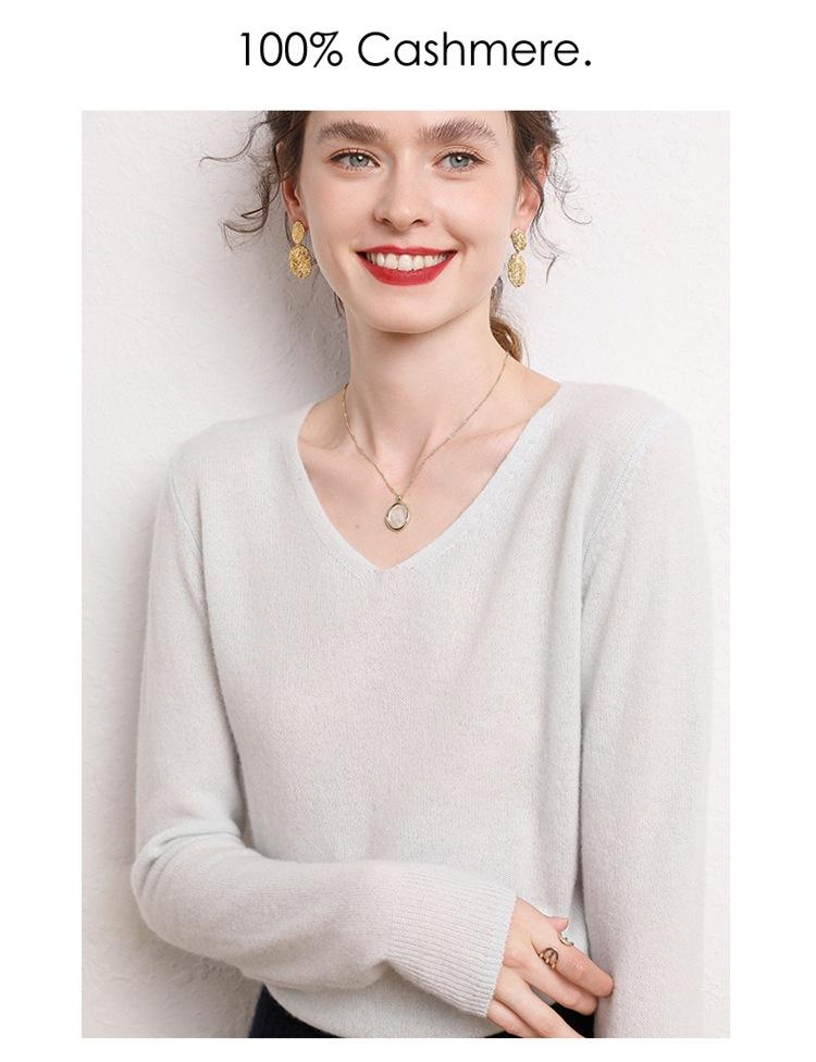 Suéter Clásico de Cachemira con Cuello en V Color Claro Liso Ajustado Todo Cachemira Nuevo Tejido Grueso para Fondo Mangas Largas