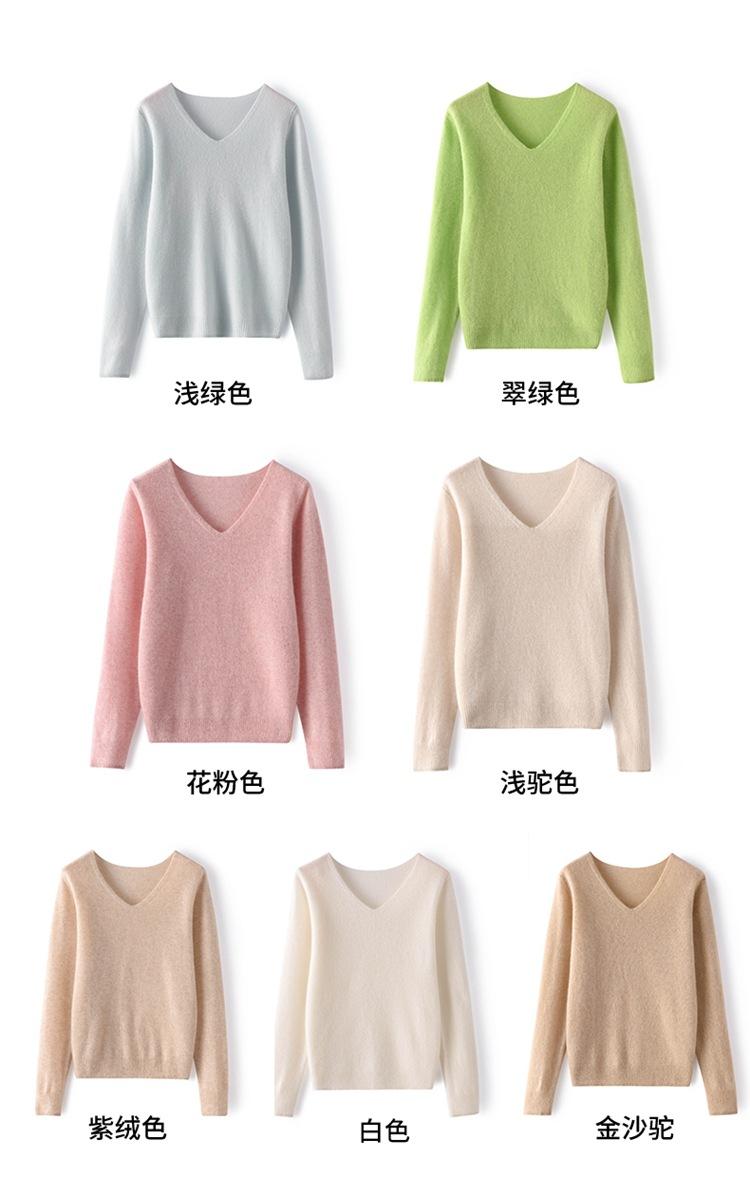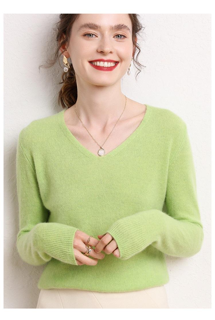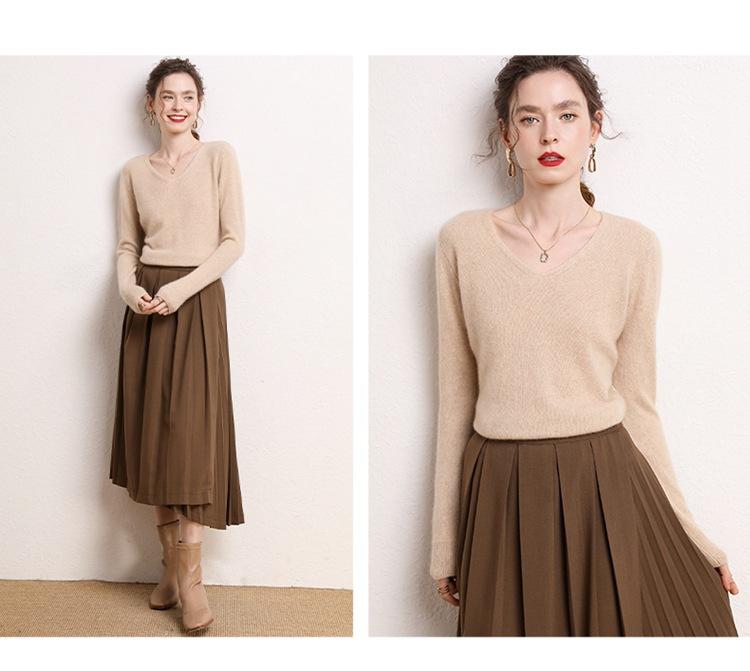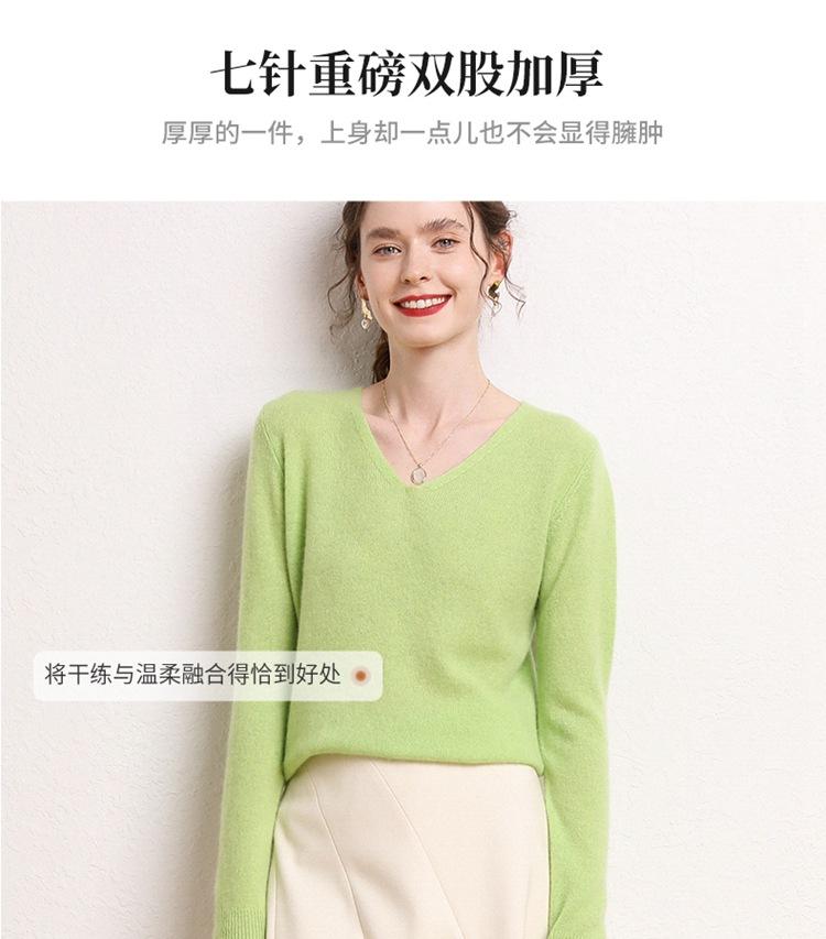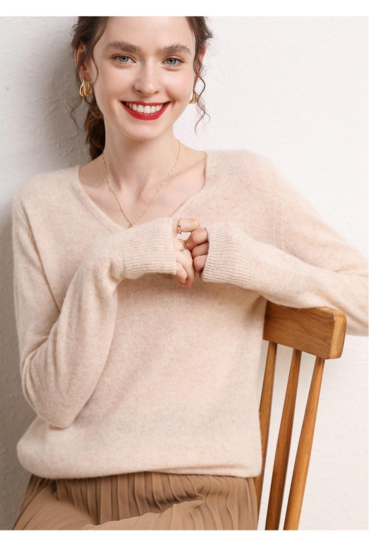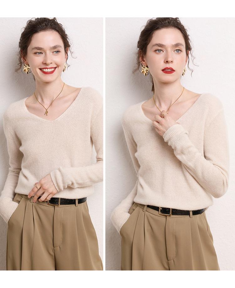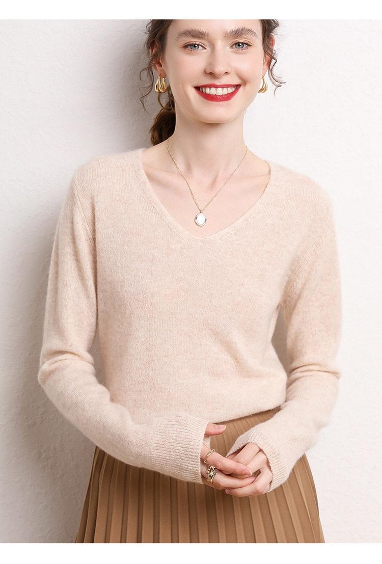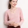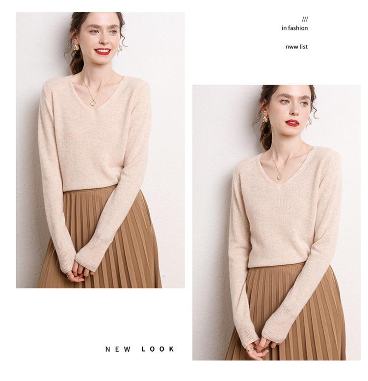 Suéter Clásico de Cachemira con Cuello en V Color Claro Liso Ajustado Todo Cachemira Nuevo Tejido Grueso para Fondo Mangas Largas
