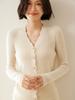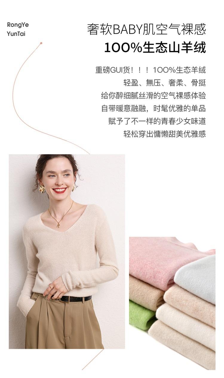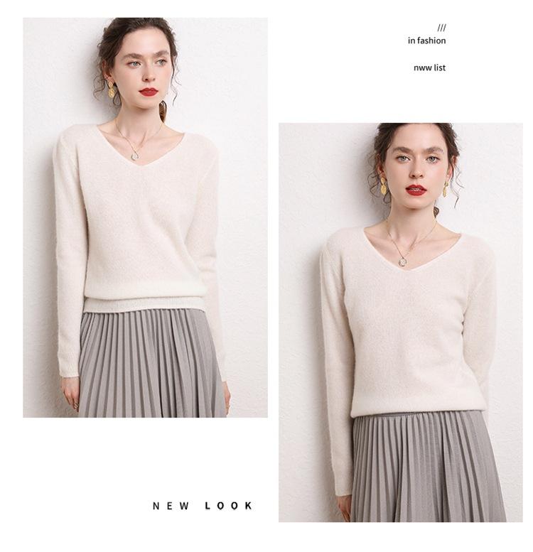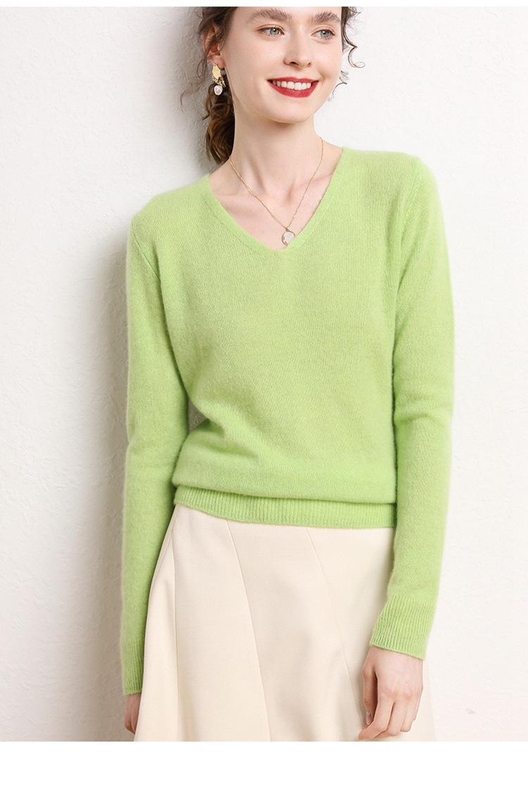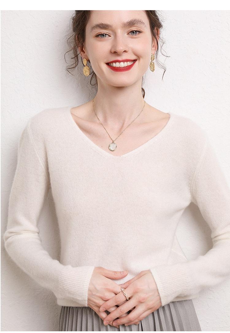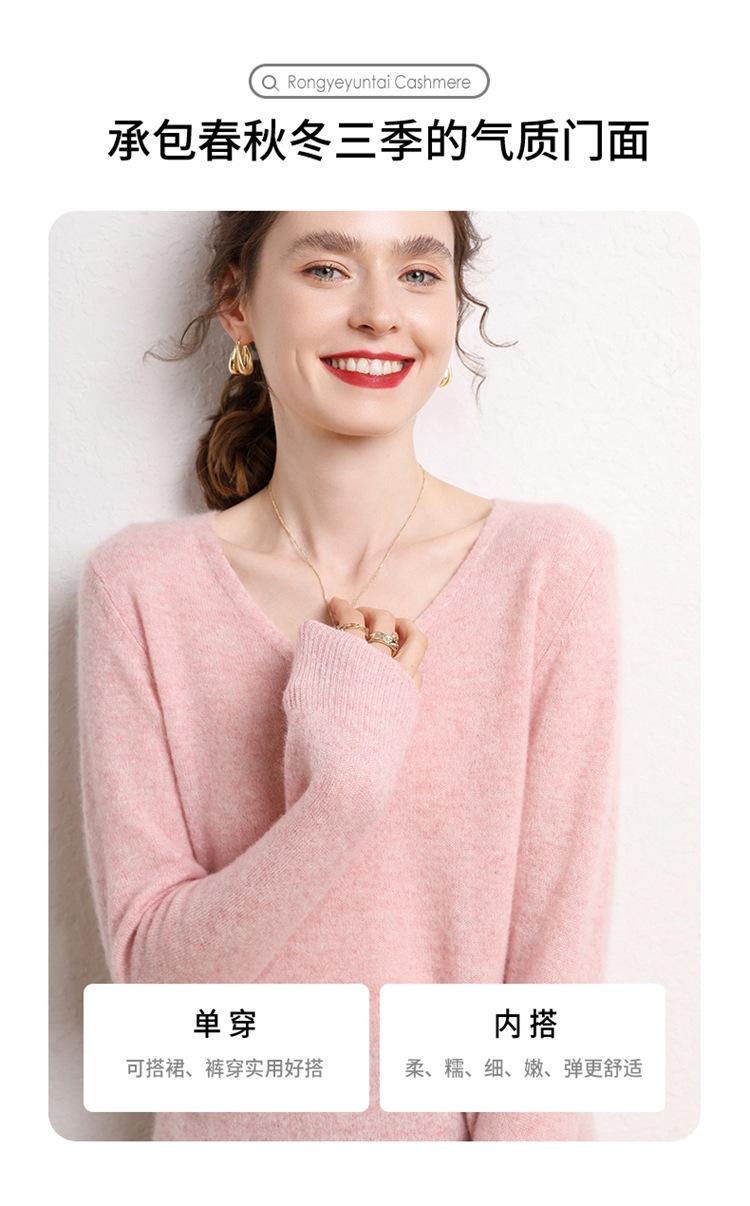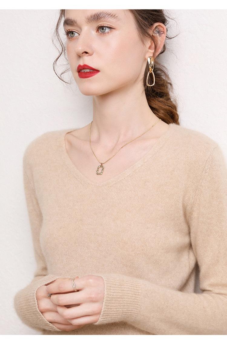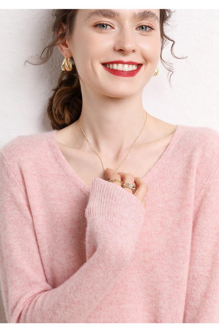 Suéter Clásico de Cachemira con Cuello en V Color Claro Liso Ajustado Todo Cachemira Nuevo Tejido Grueso para Fondo Mangas Largas